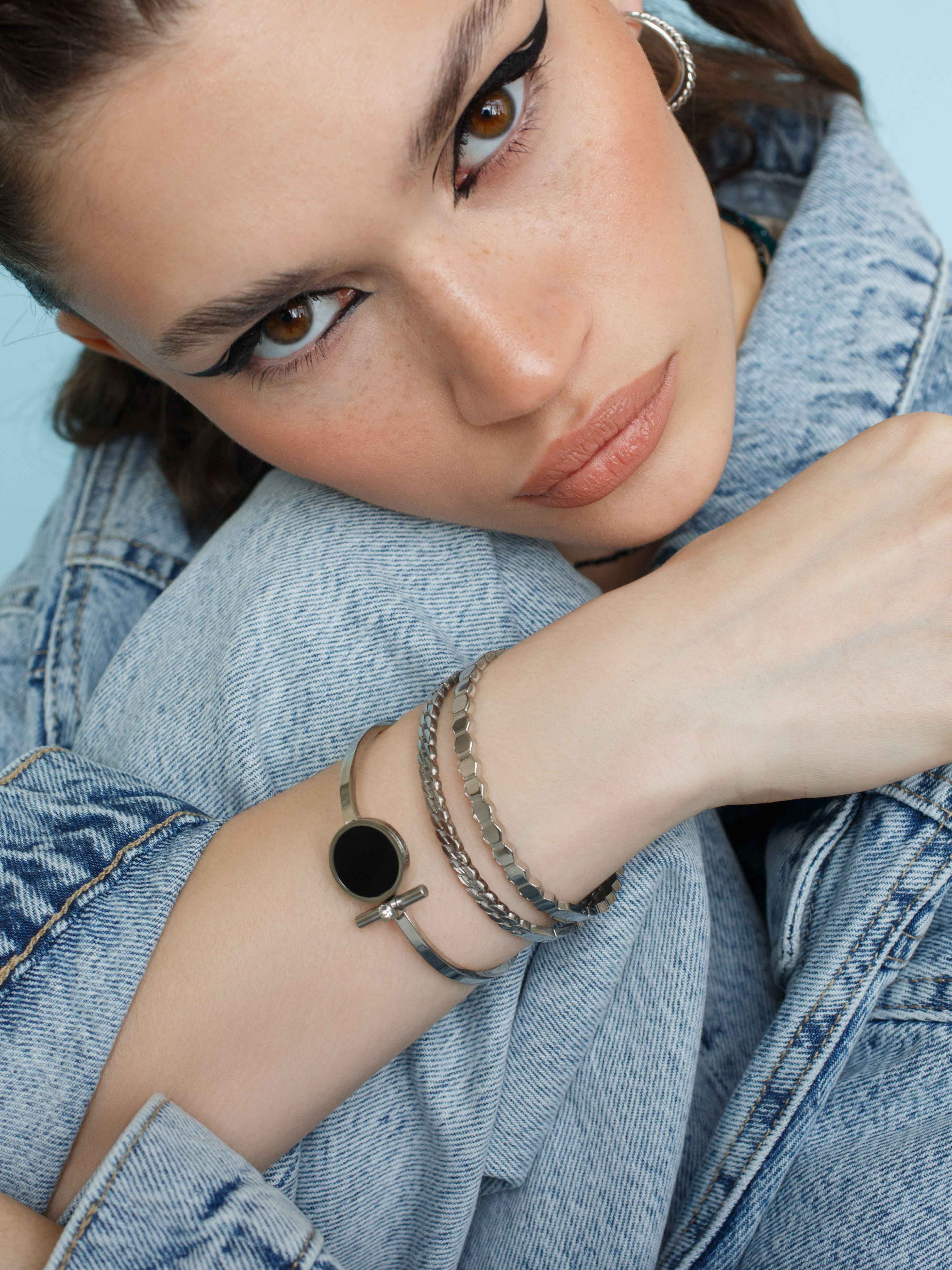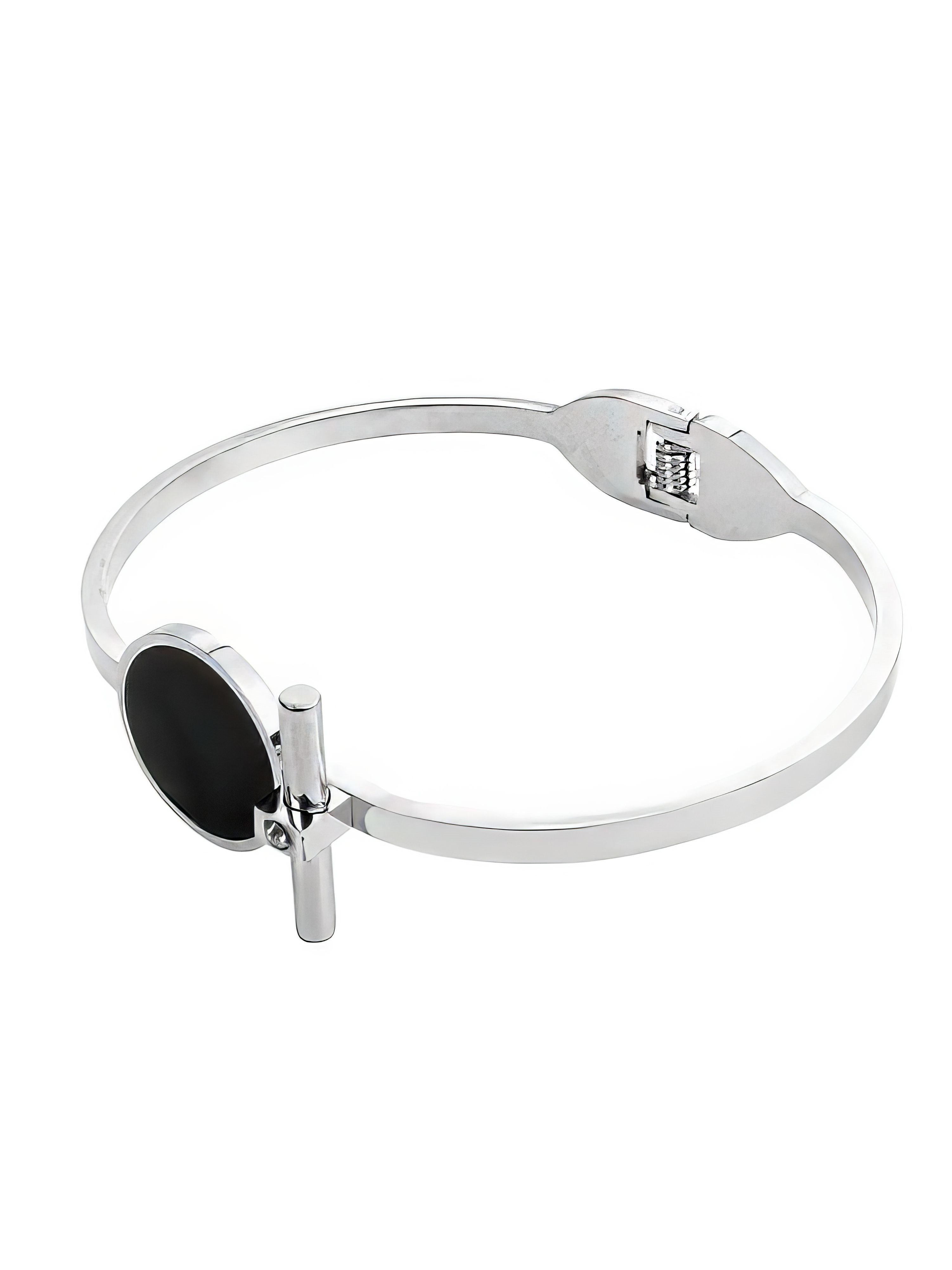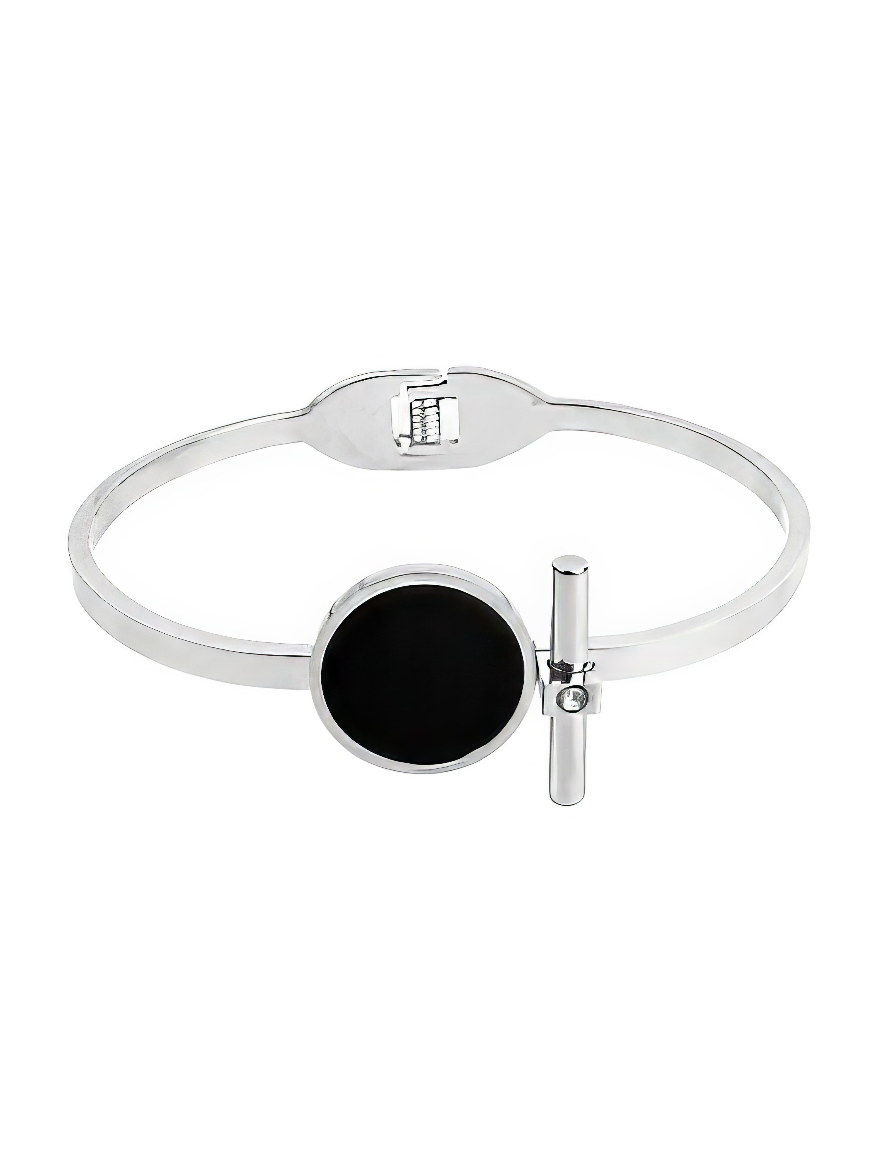 Браслет с черным диском Серебристый Черный Ювелирная сталь, эмаль купить в интернет магазине Kalinka
