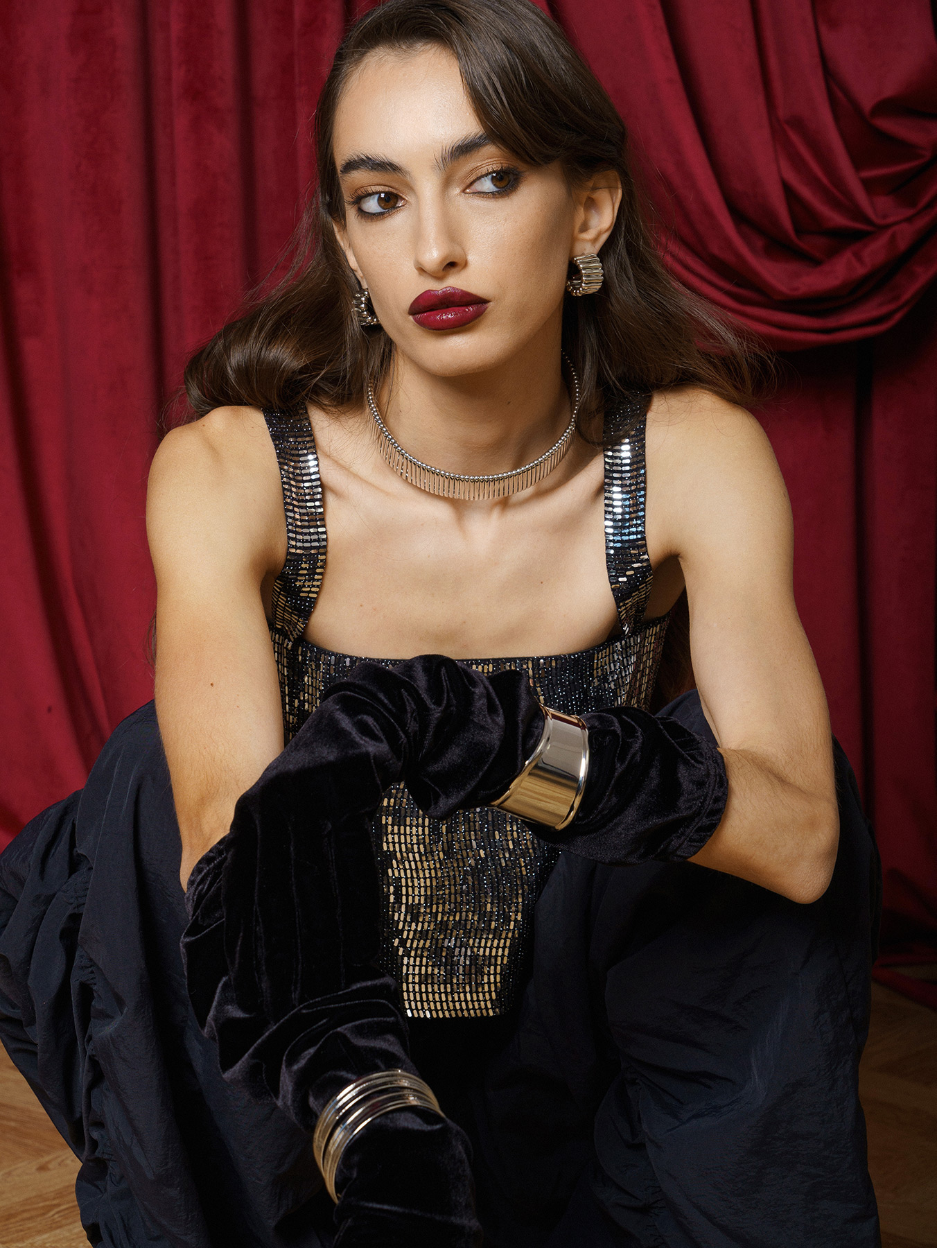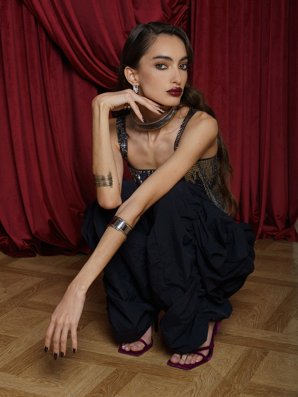 Расслоенный многослойный стэйтмент-браслет незамкнутого формата