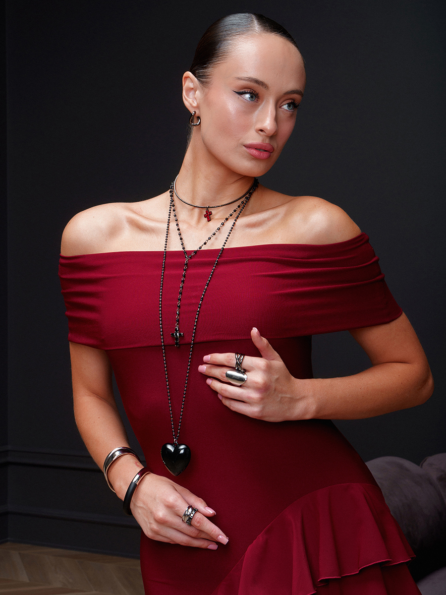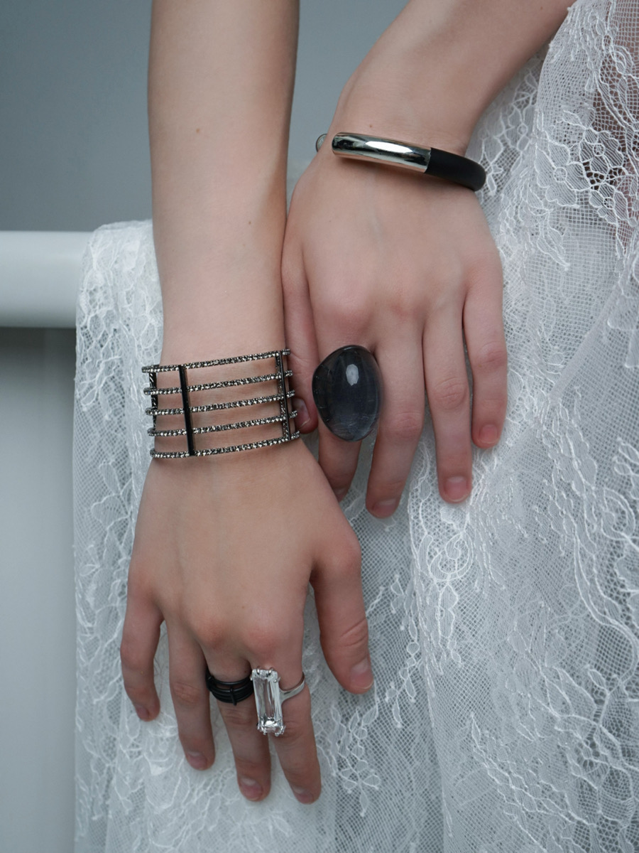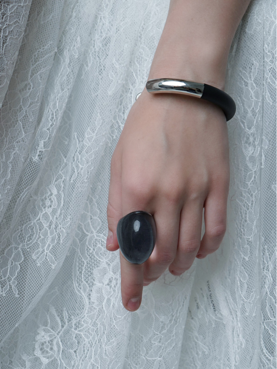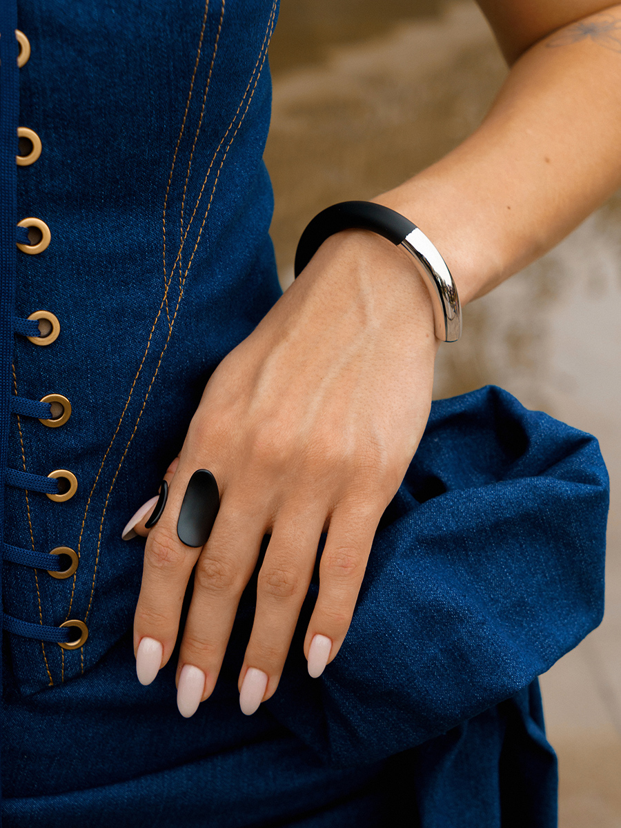 Контрастный браслет-бэнгл Серебристый Черный Ювелирный сплав купить в интернет магазине Kalinka