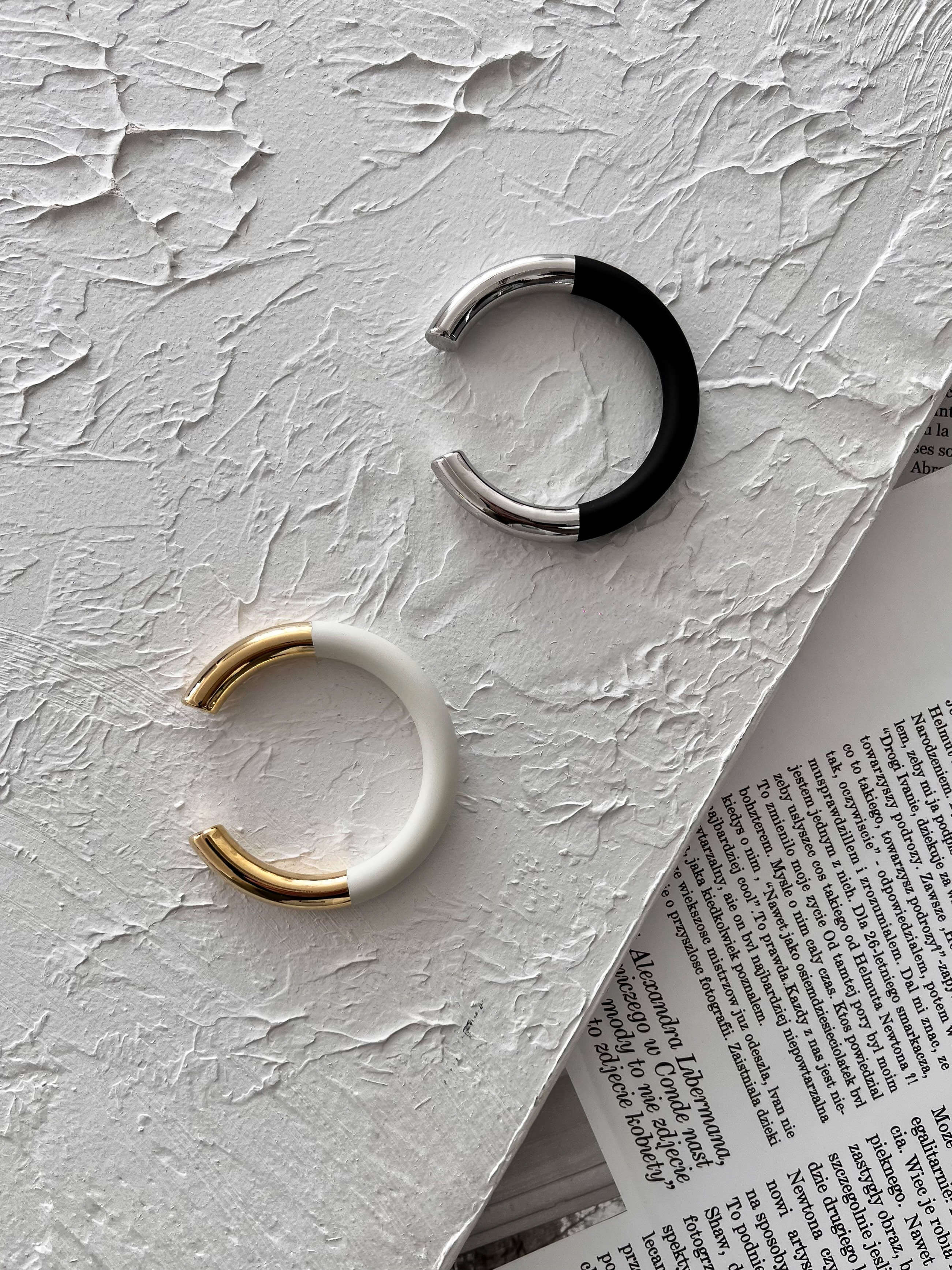 Биколорный жесткий браслет в округлом трехмерном исполнении