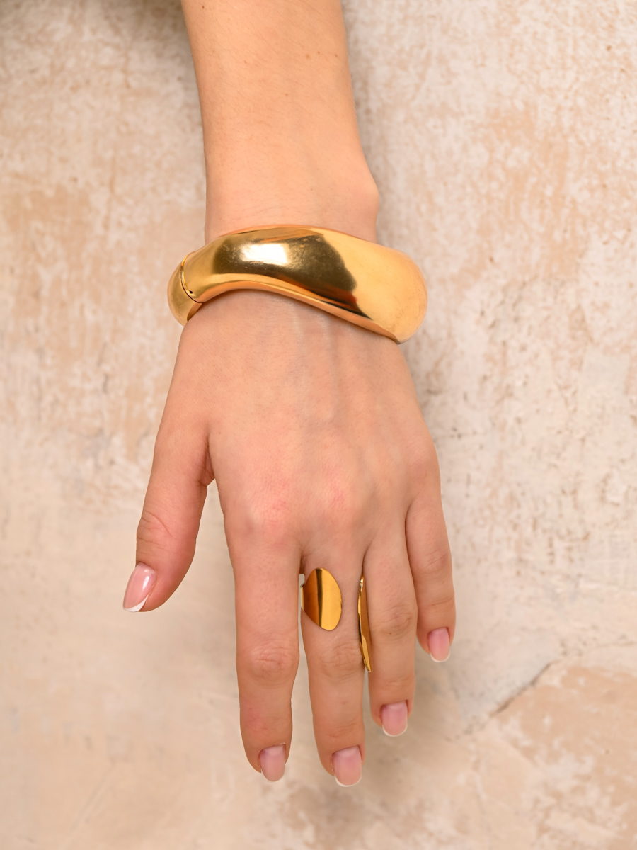 Объемный широкий браслет Золотистый Ювелирный сплав купить в интернет магазине Kalinka