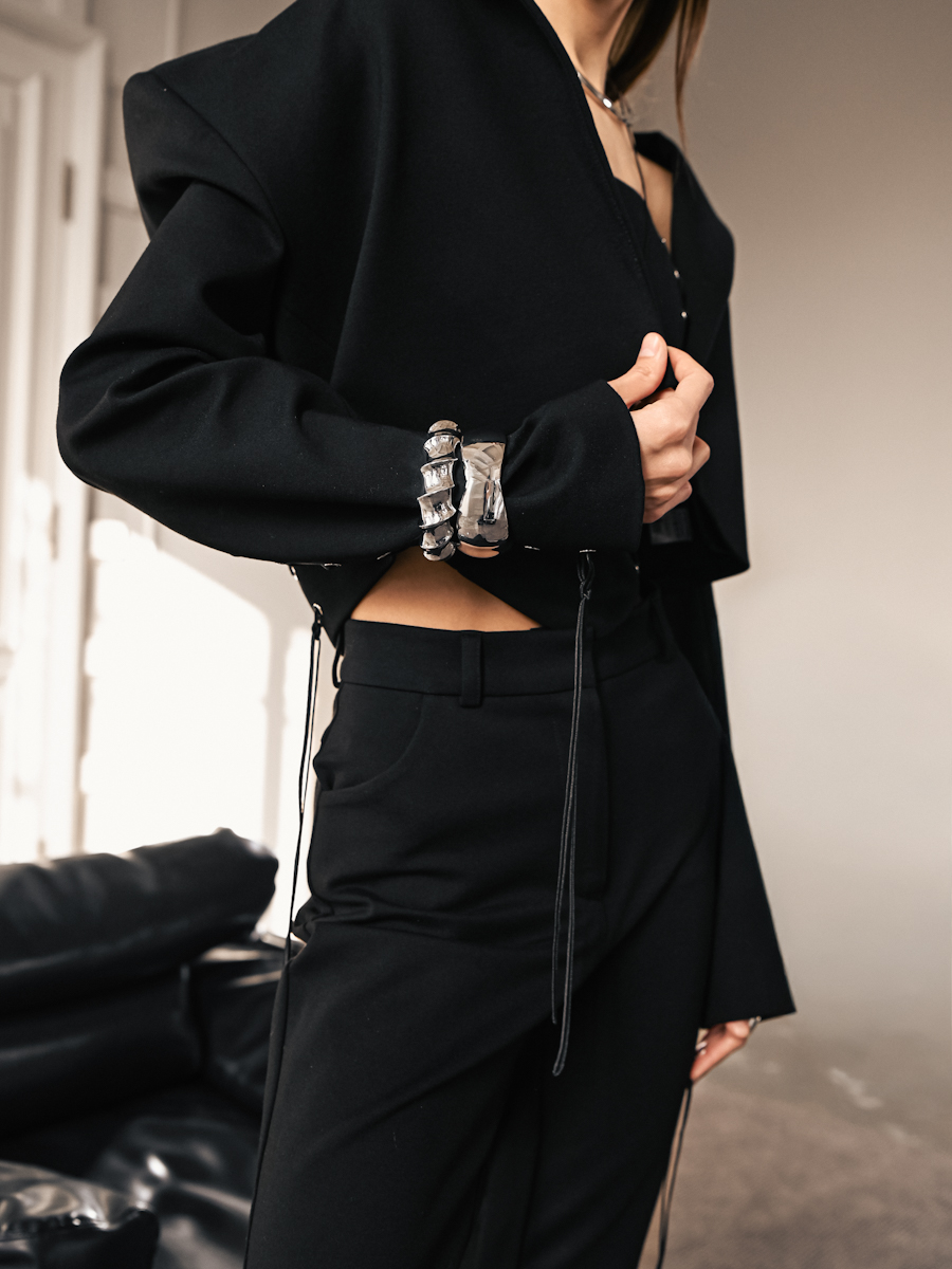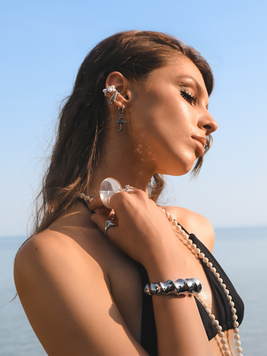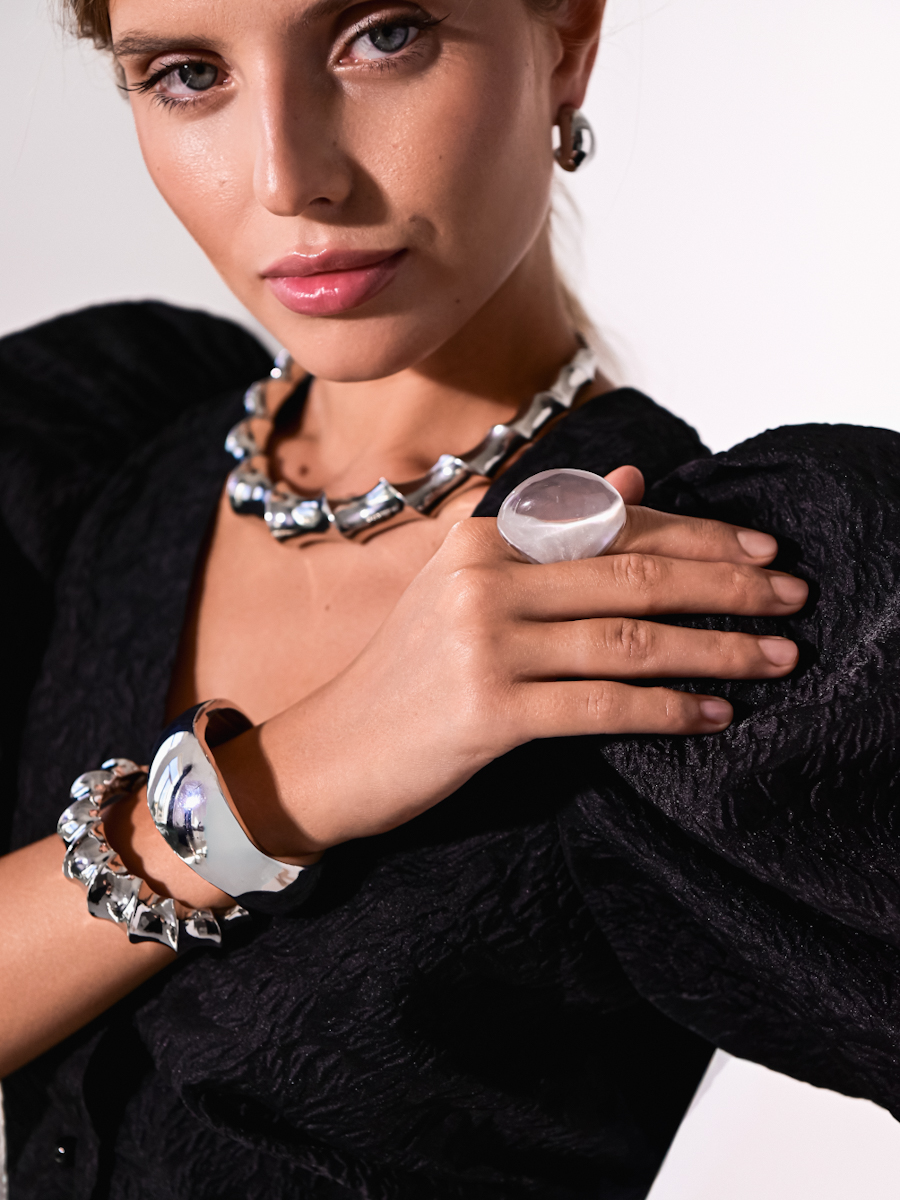 Ребристый браслет-кафф Серебристый Ювелирный сплав купить в интернет магазине Kalinka