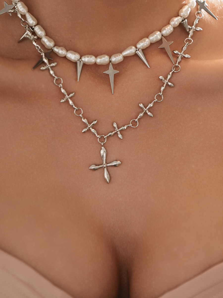 Дерзкий перламутровый чокер Серебристый Ювелирный сплав купить в интернет магазине Kalinka
