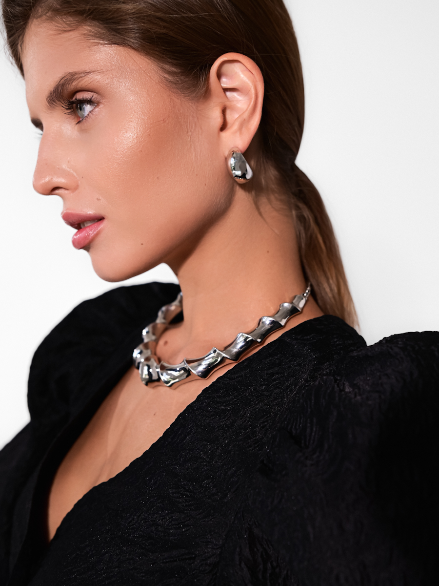Элегантное крученное колье Серебристый Ювелирный сплав купить в интернет магазине Kalinka
