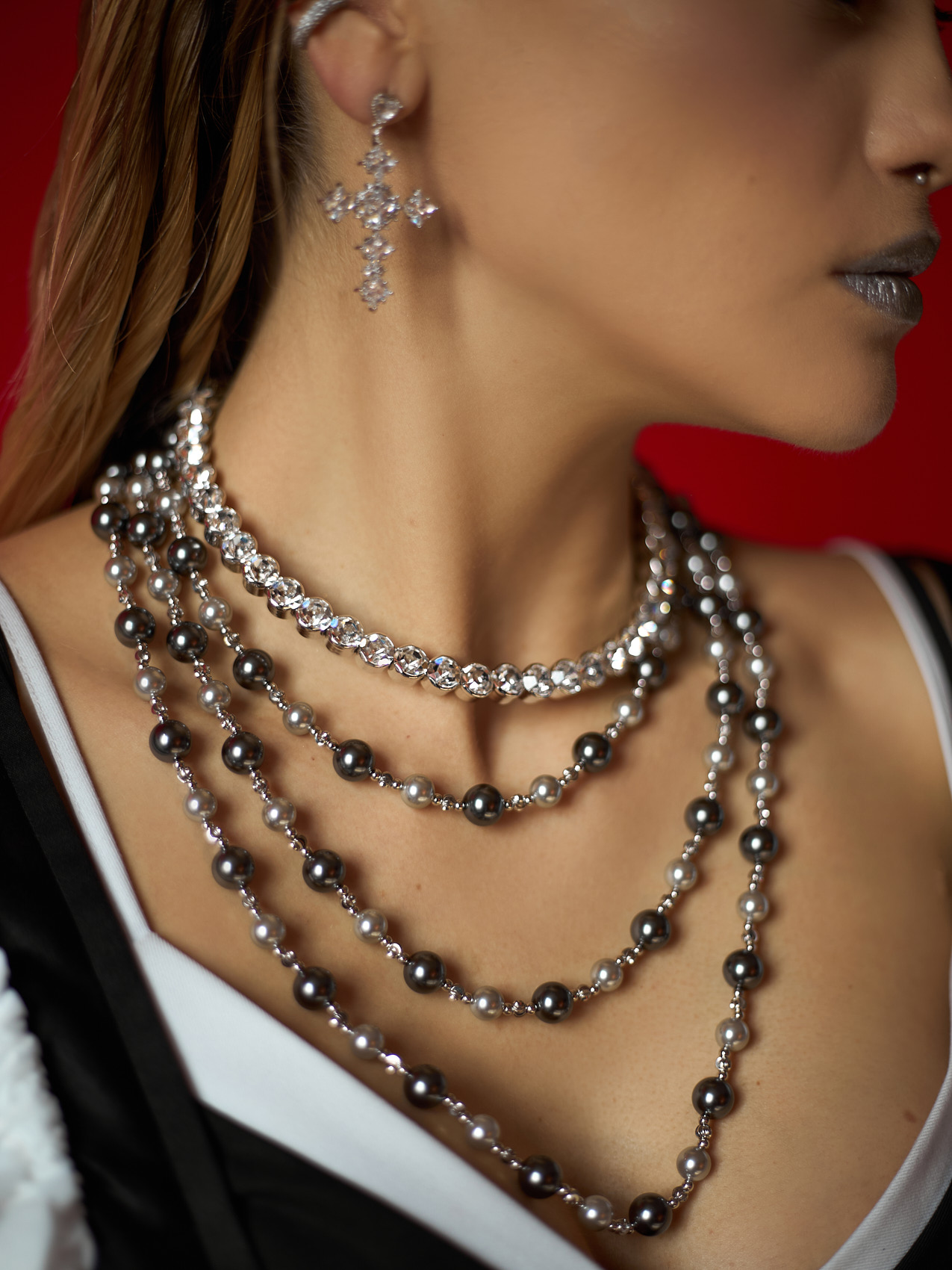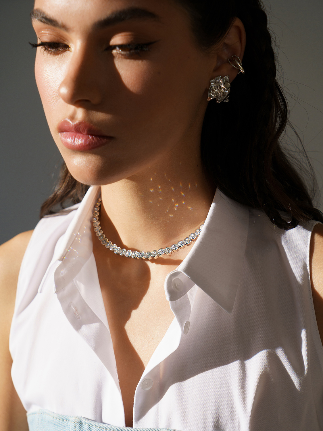 Искристый чокер с кристаллами Серебристый Ювелирный сплав, кристаллы купить в интернет магазине Kalinka