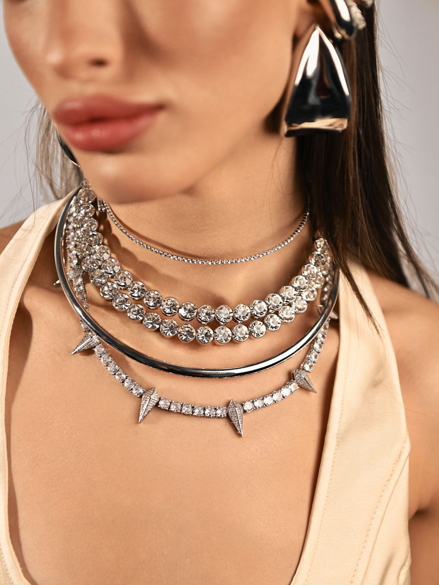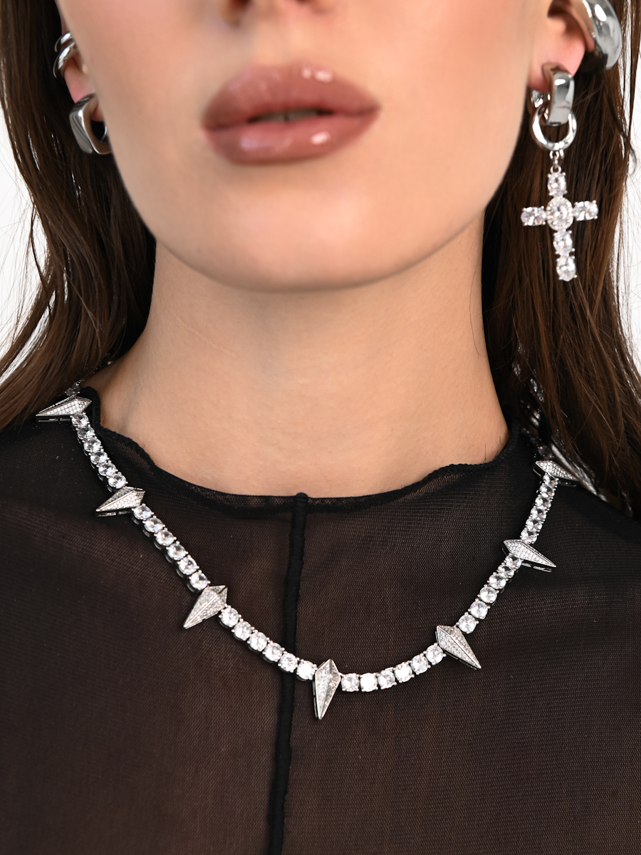 Готичное колье с шипами Серебристый Ювелирный сплав, цирконы купить в интернет магазине Kalinka