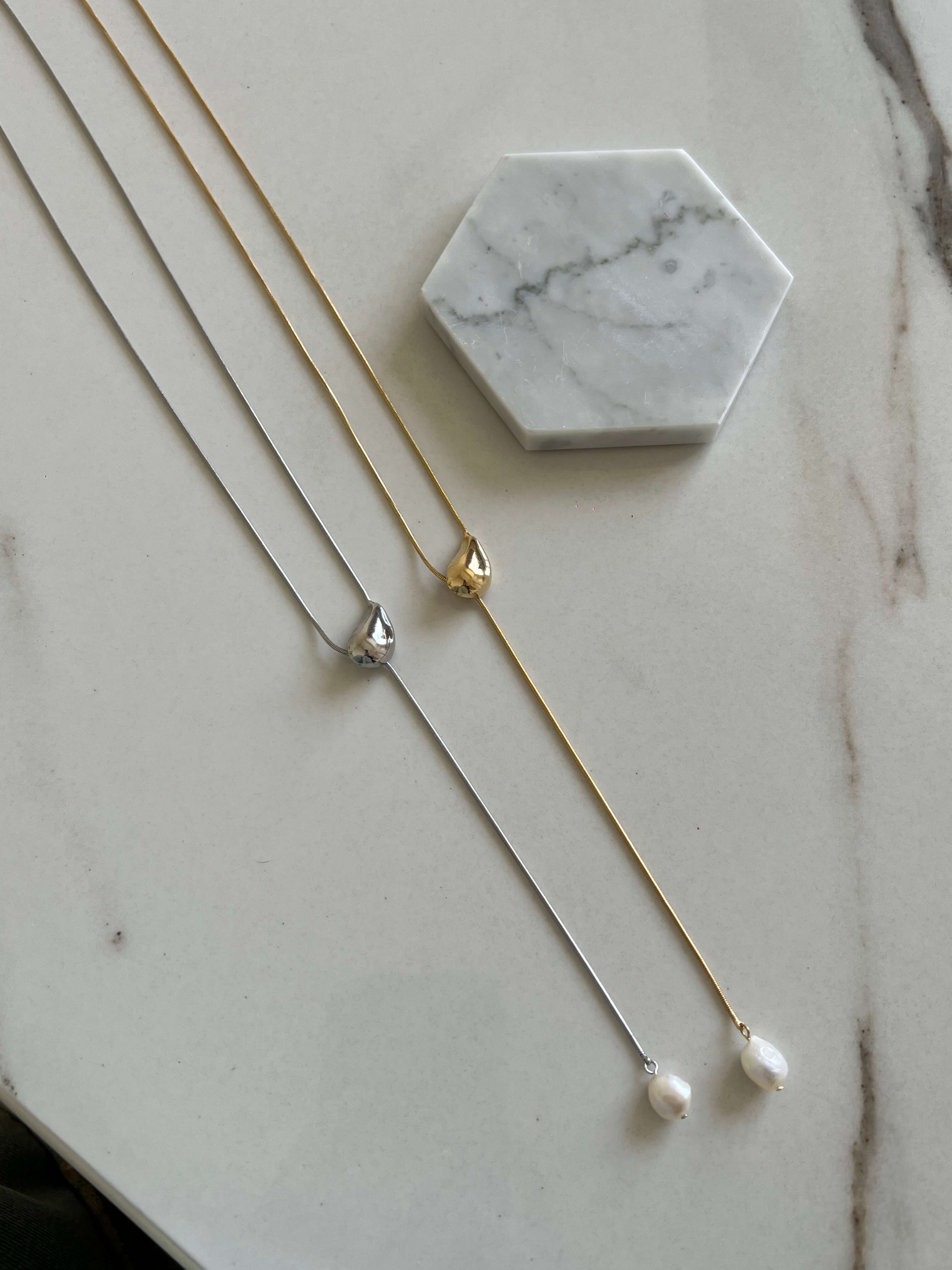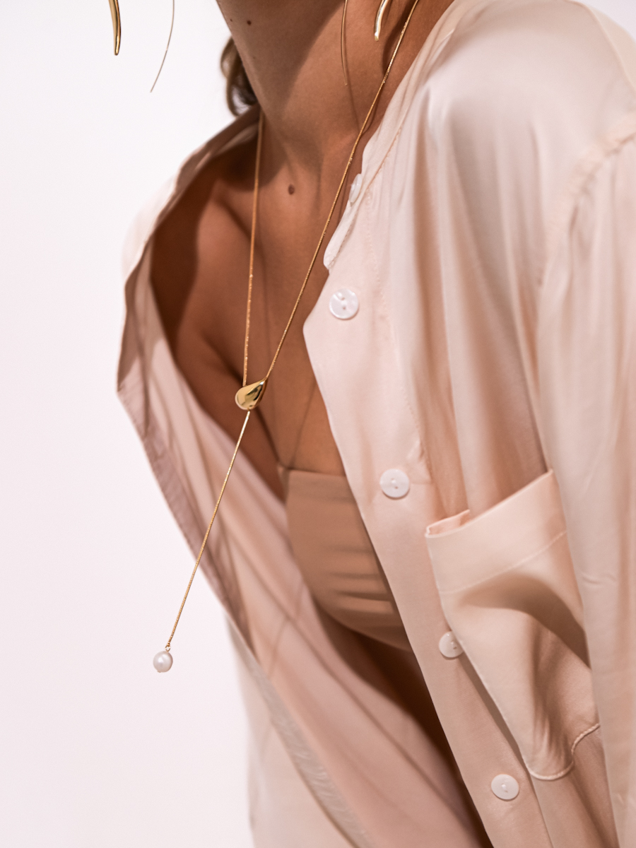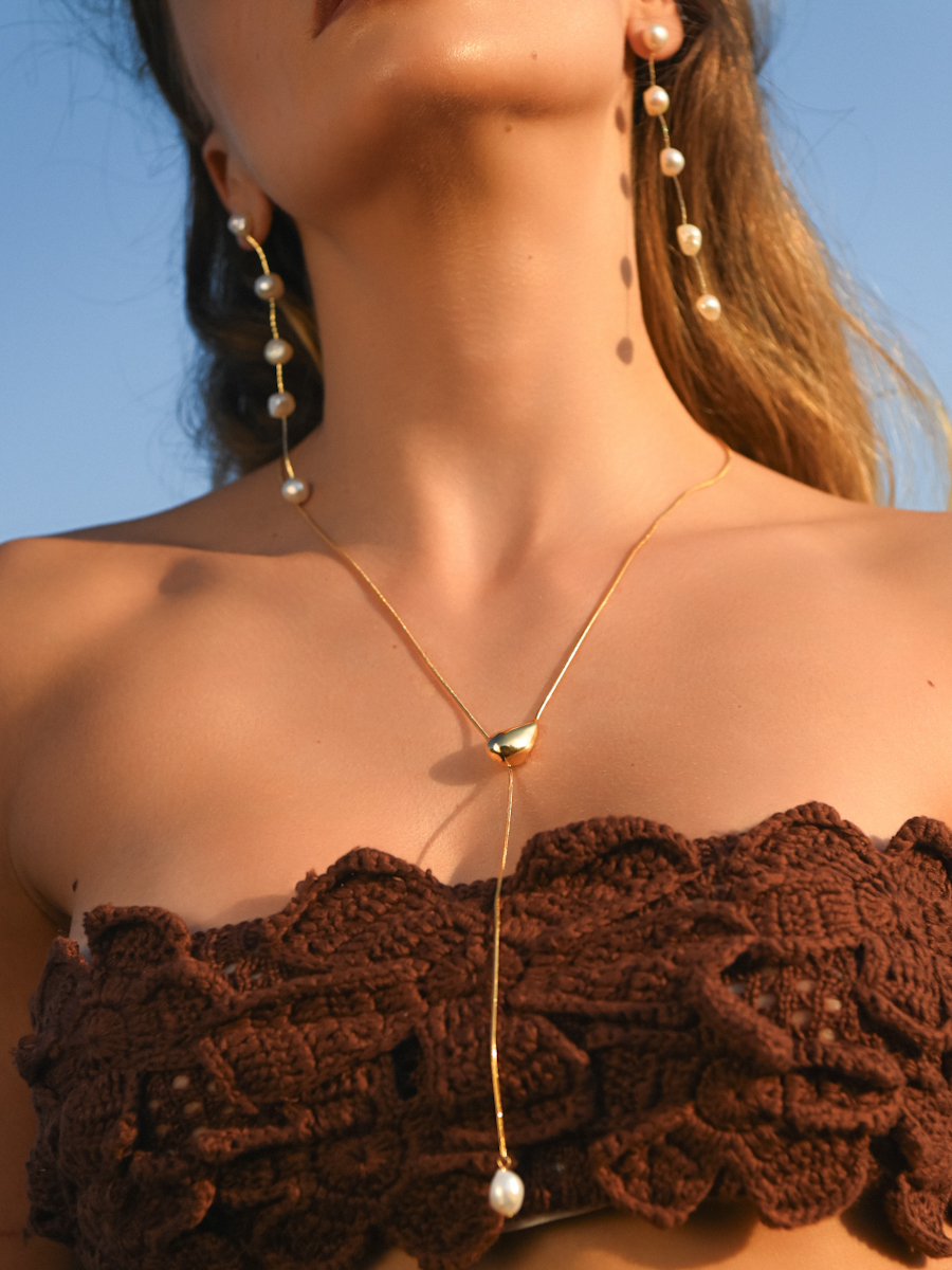Элегантная повеска-роуп из тонкой цепочки с жемчуженой