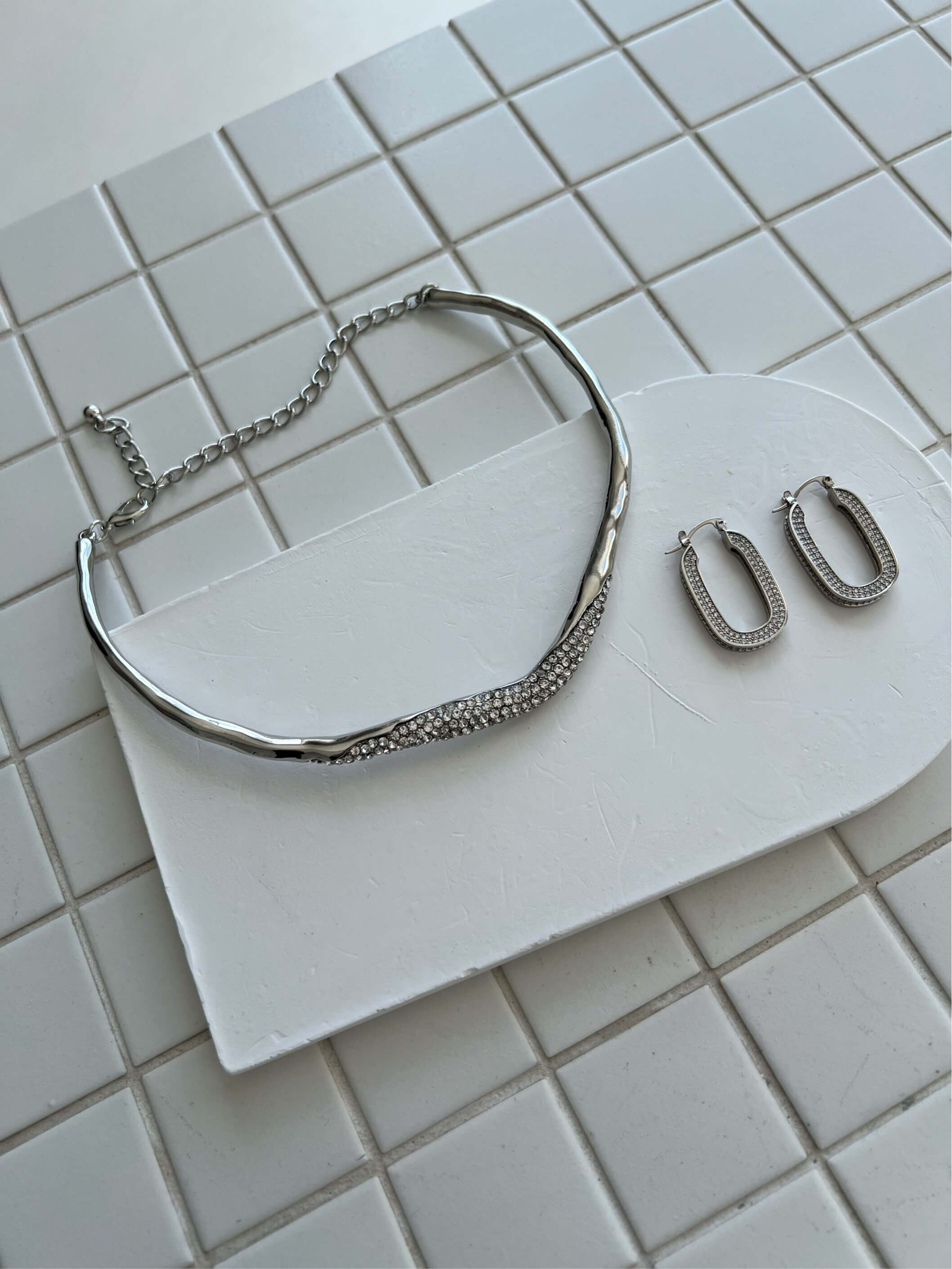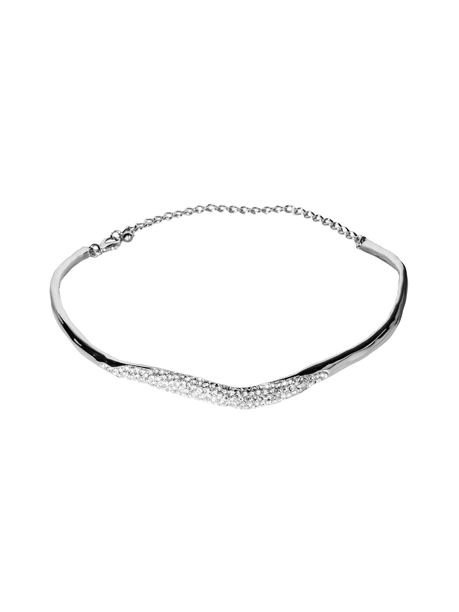 Изогнутое колье с кристаллами Серебристый Ювелирный сплав купить в интернет магазине Kalinka
