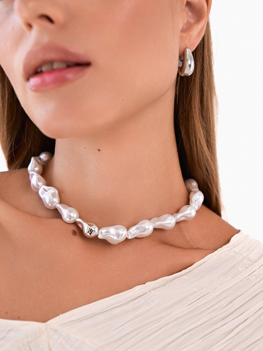 Элегантное колье с перламутром и серебристой бусиной неправильной формы