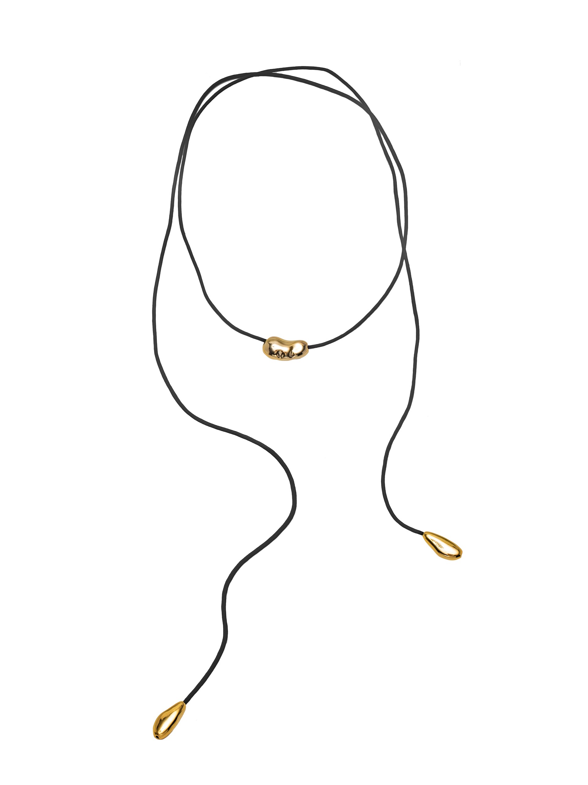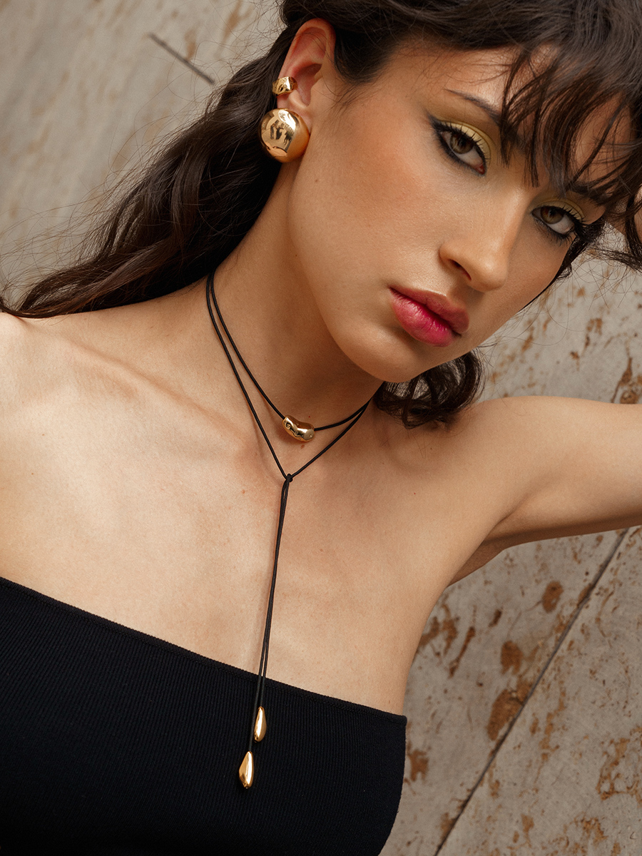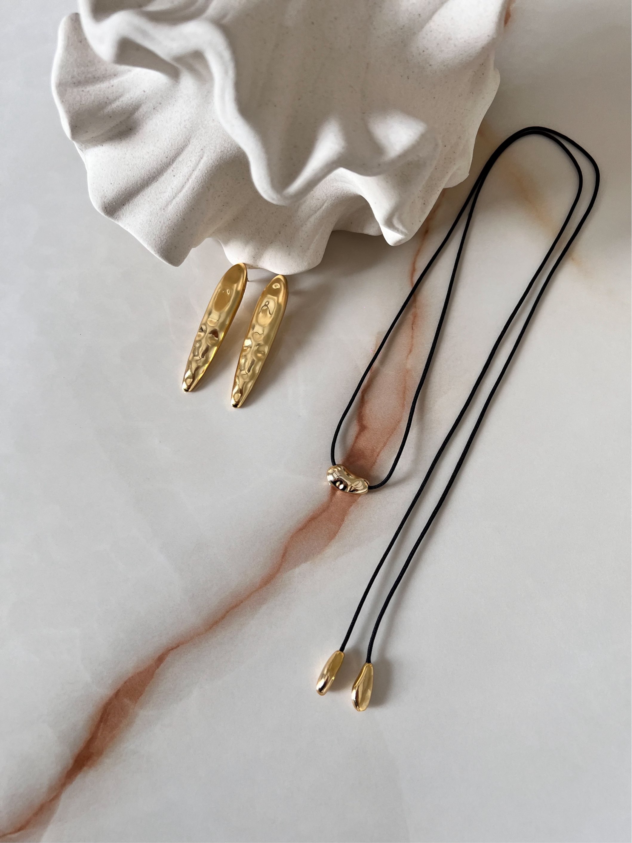 Экстрамодное колье с фактурными подвесами-слитками на тонком шнурке