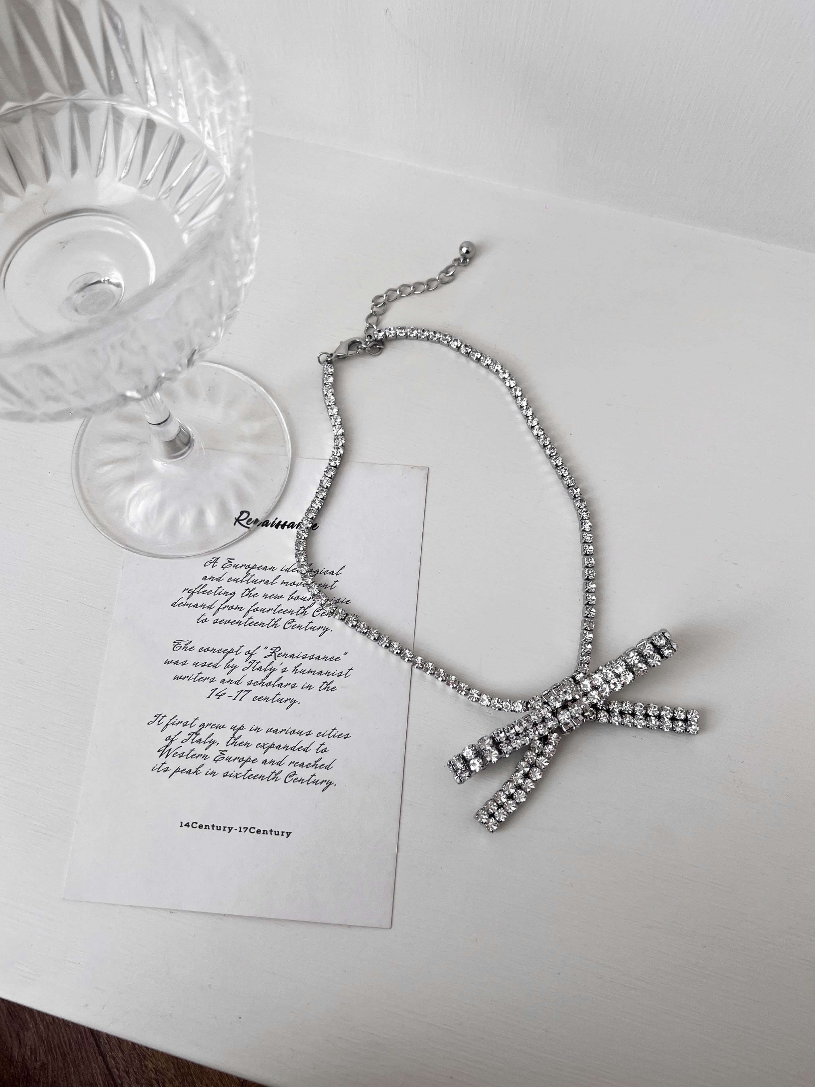 Кокетливое укороченное колье с фигурным бантом из кристаллов