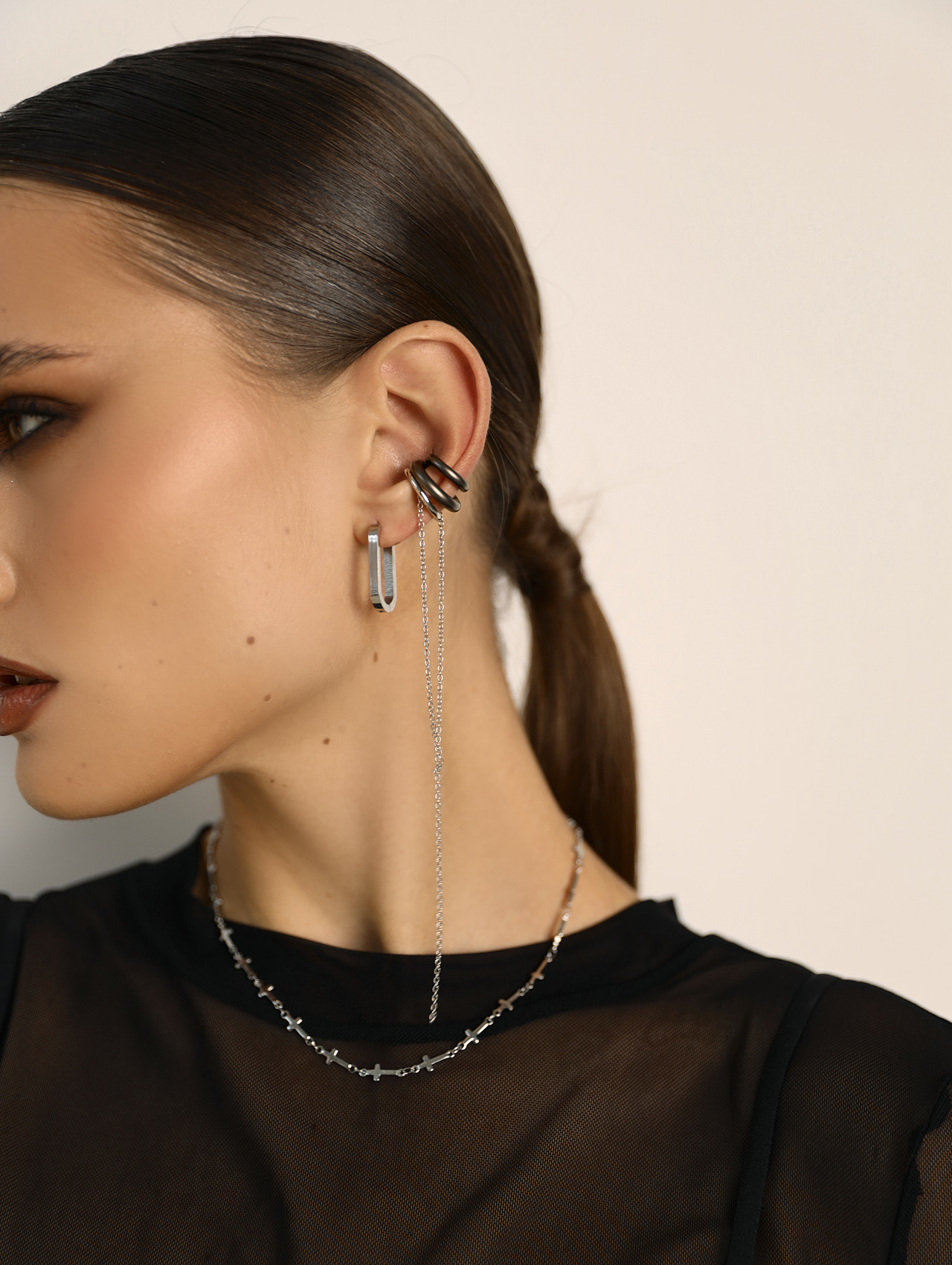 Стильный кафф с двумя разноуровневыми цепями для эффектных образов
