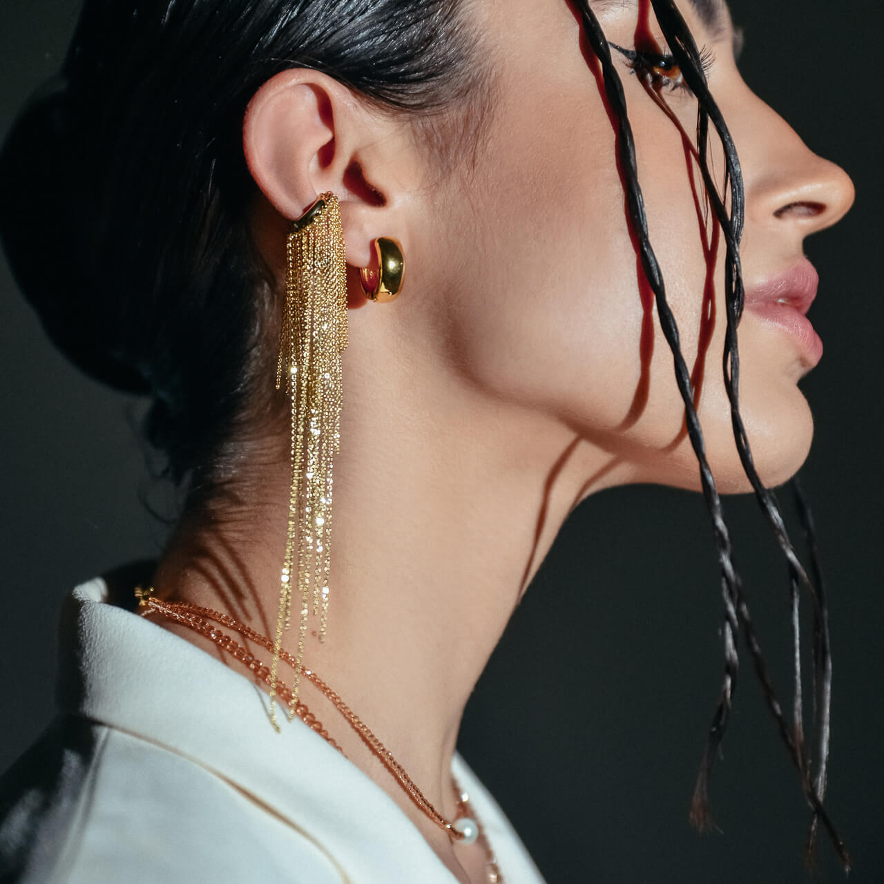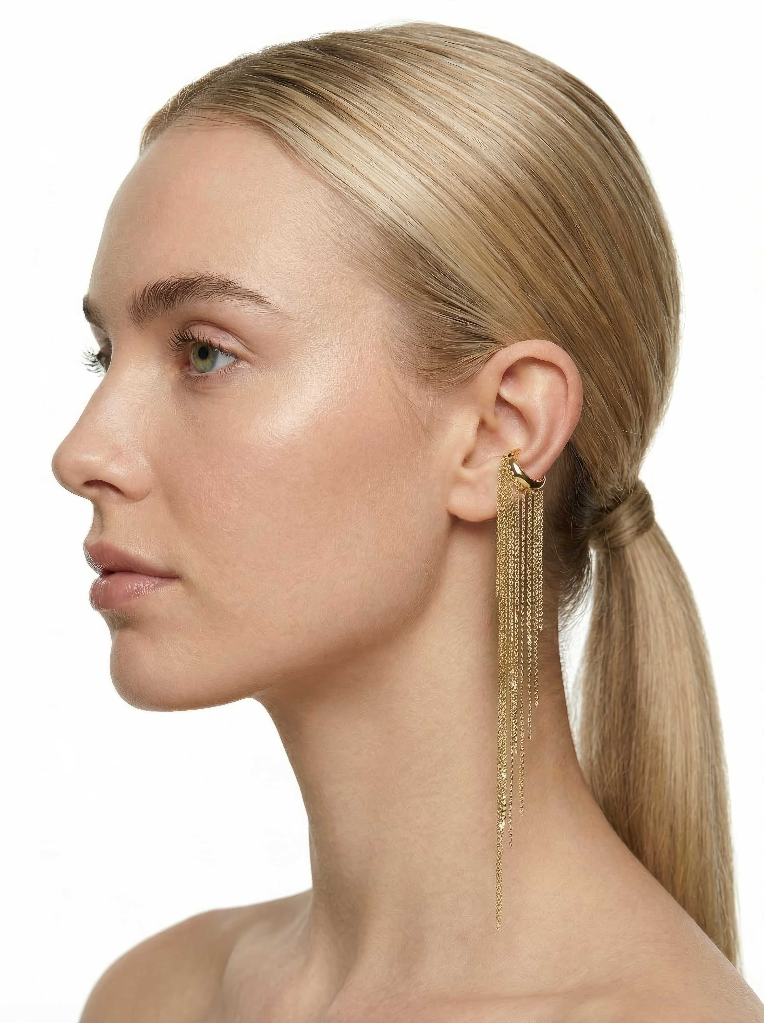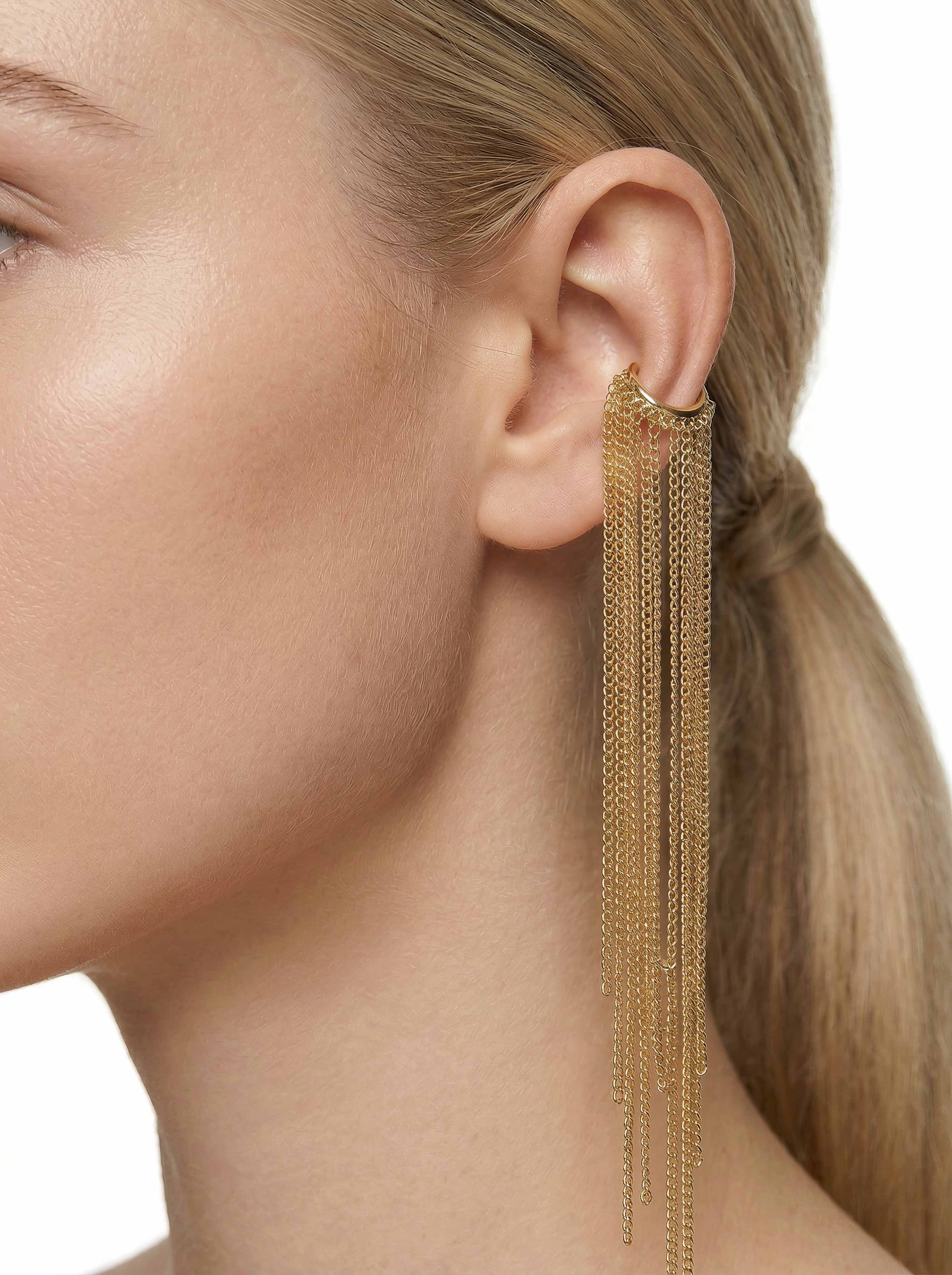 Искрящийся кафф с цепями Золотистый Ювелирный сплав купить в интернет магазине Kalinka