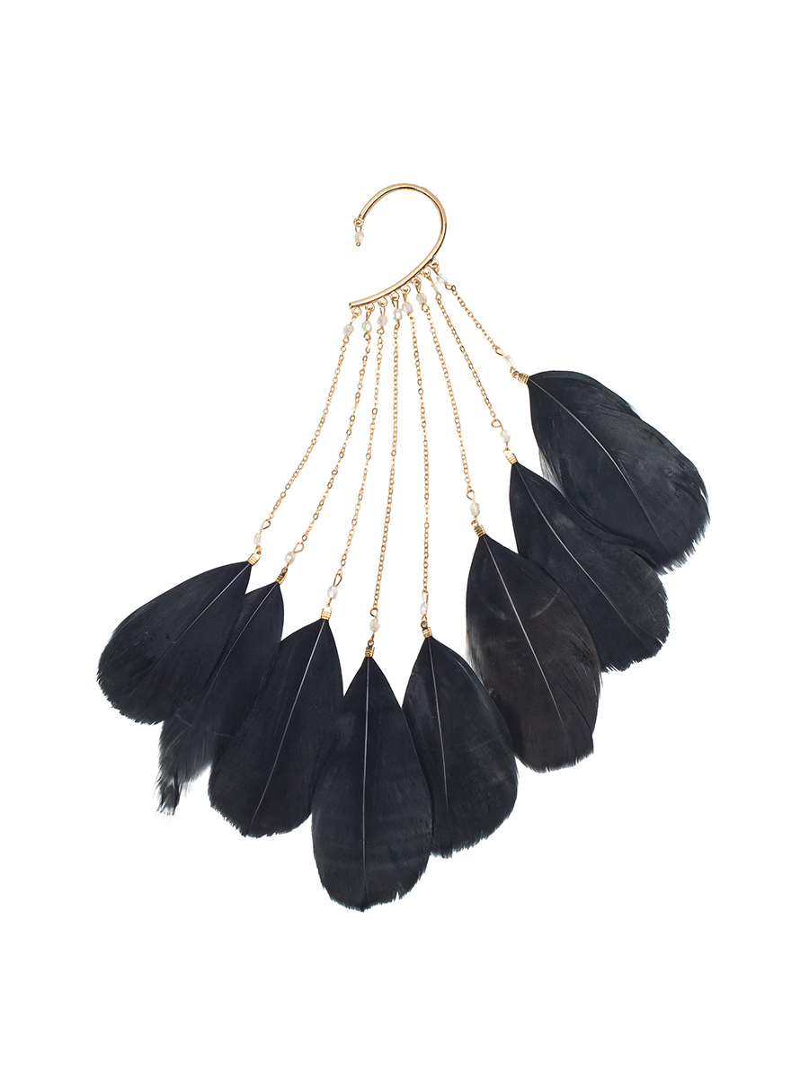 Кафф в бохо стиле с перьями Черный Золотистый Ювелирный сплав купить в интернет магазине Kalinka