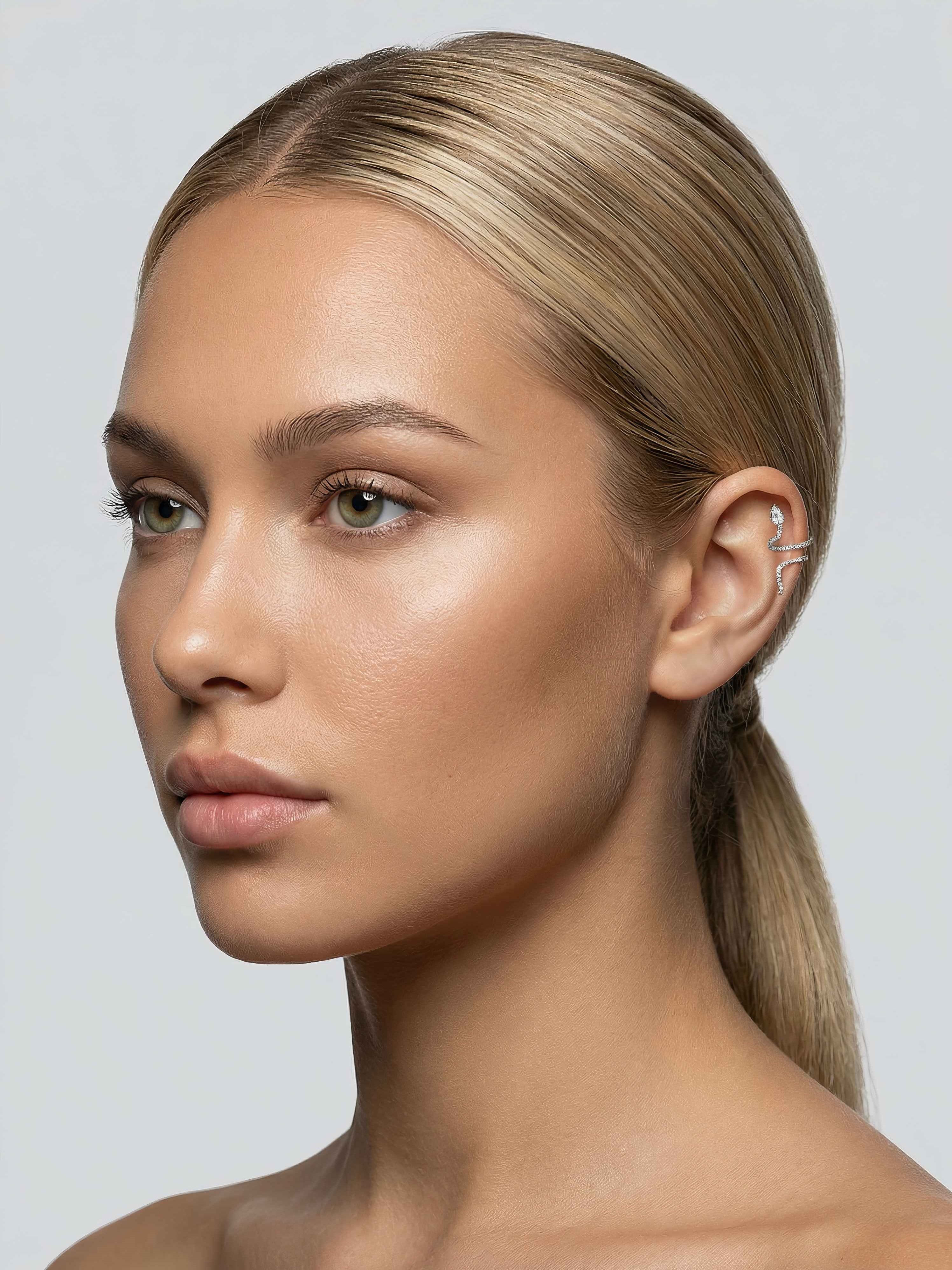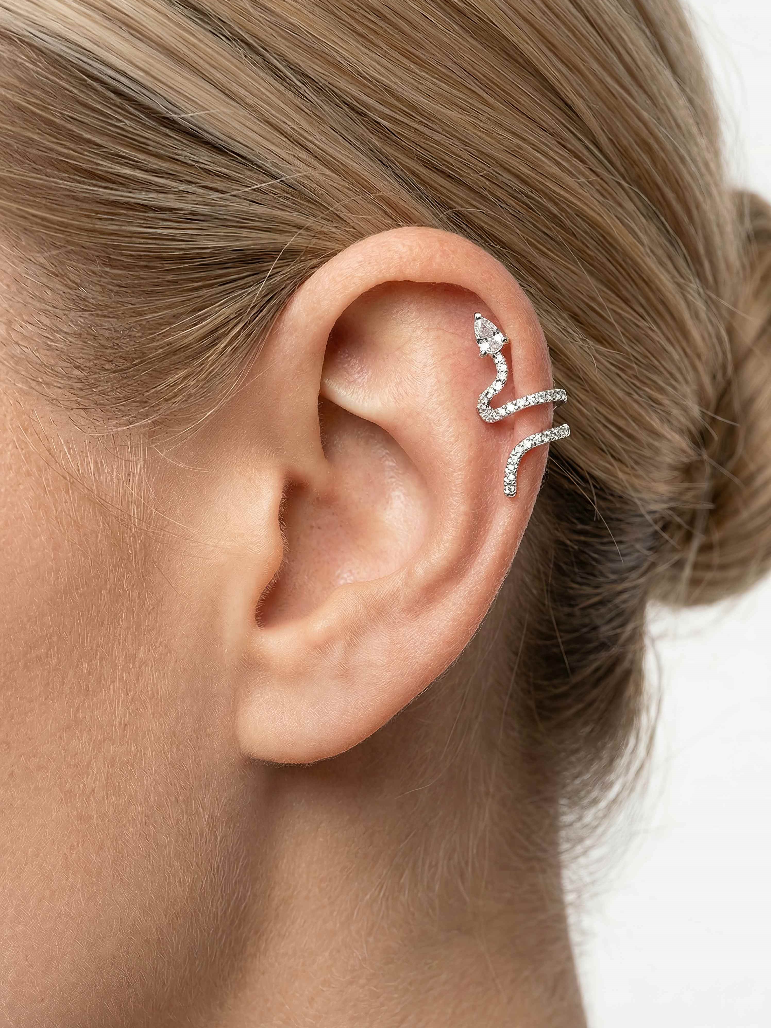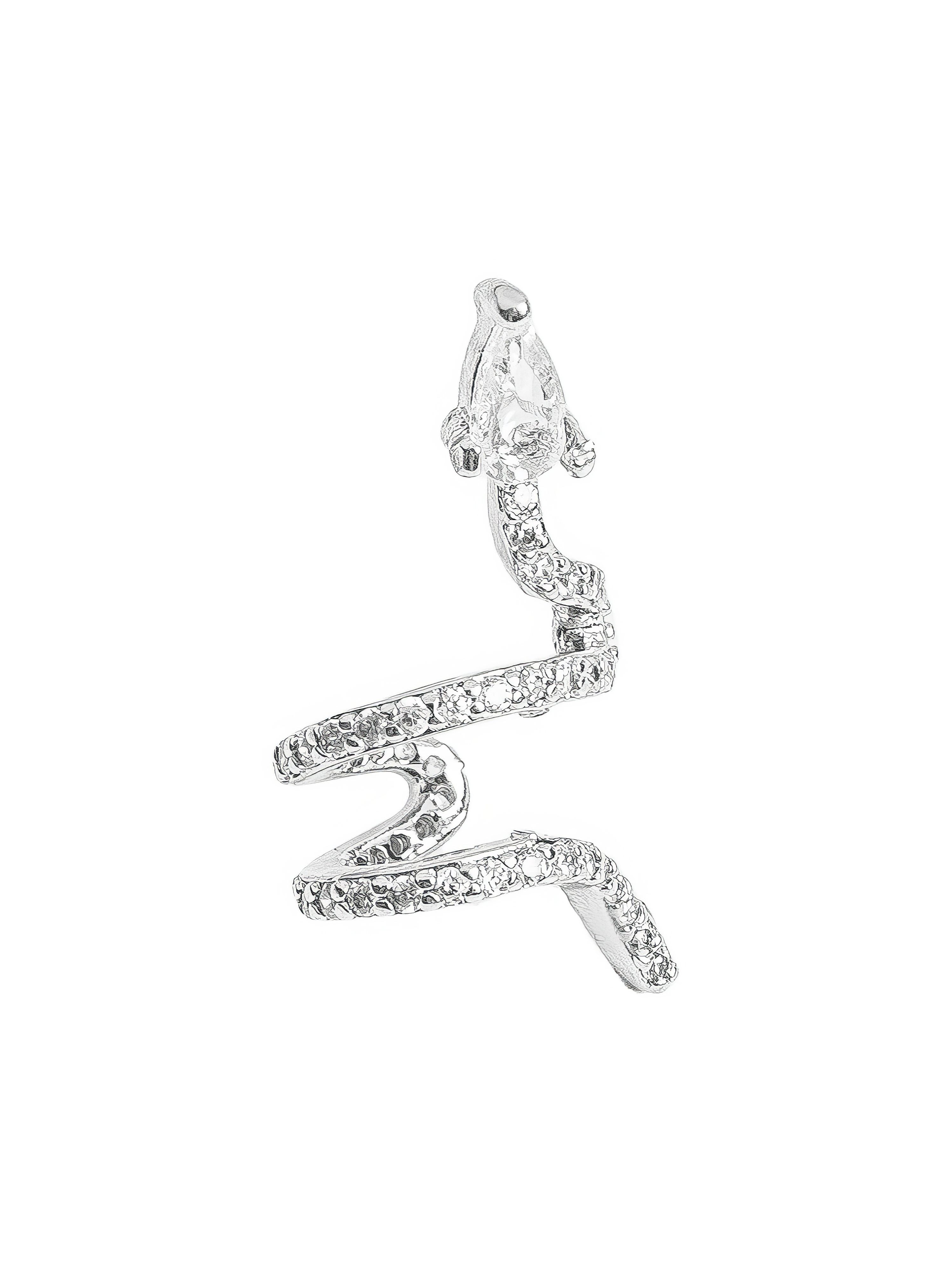 Невероятный кафф имитирующий змеиные изгибы с инкрустацией цирконами