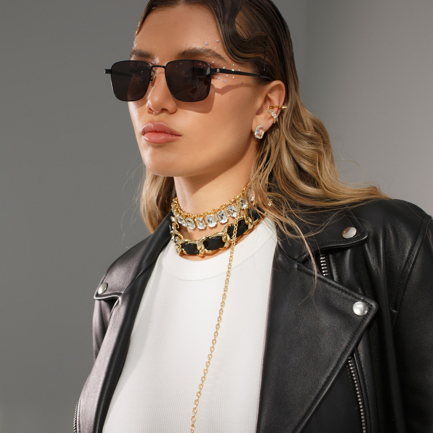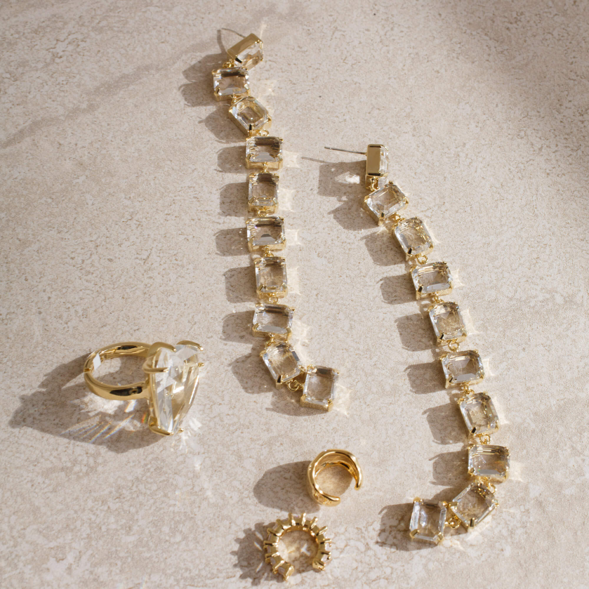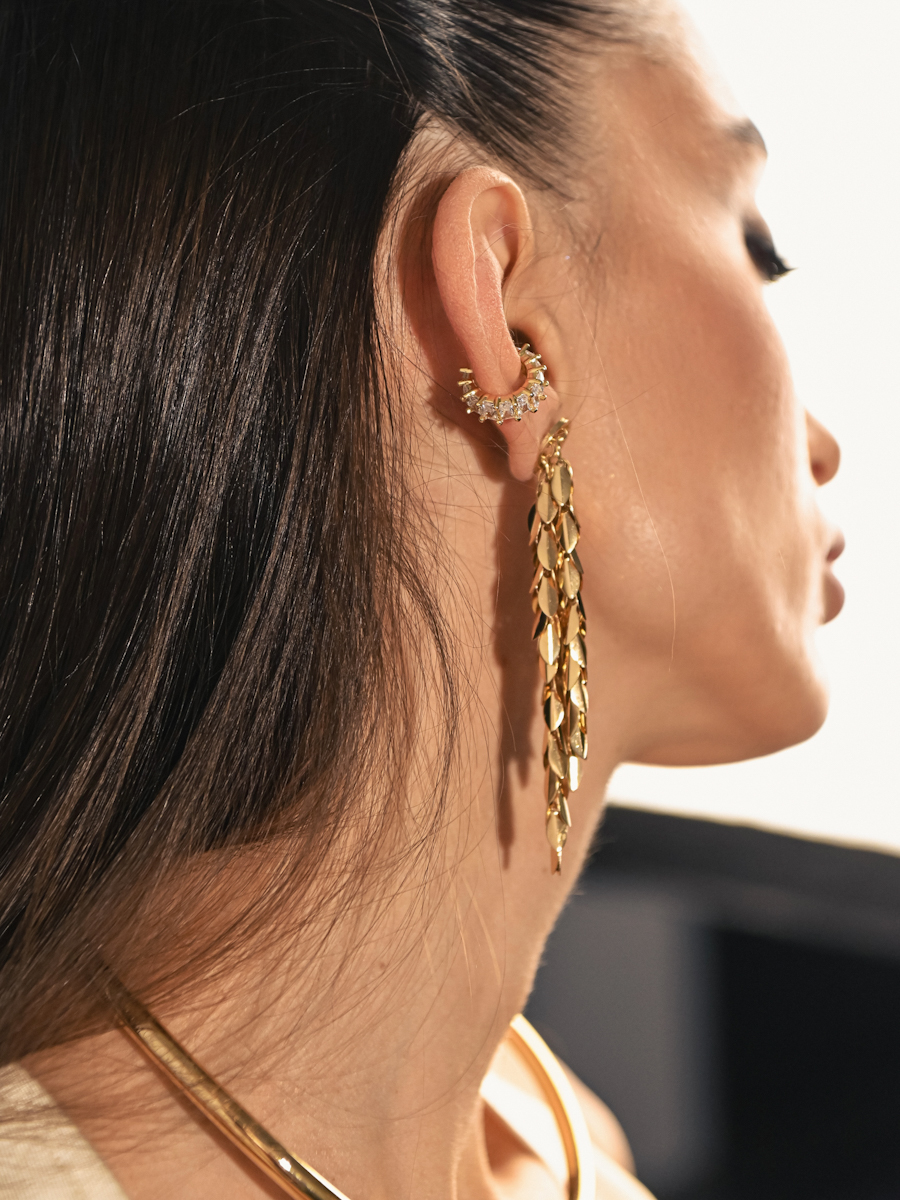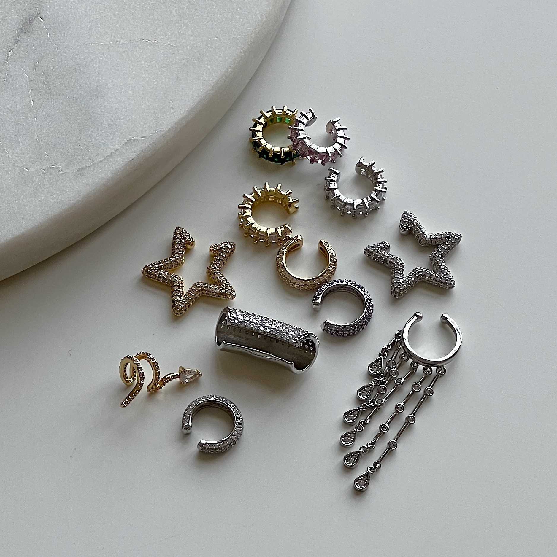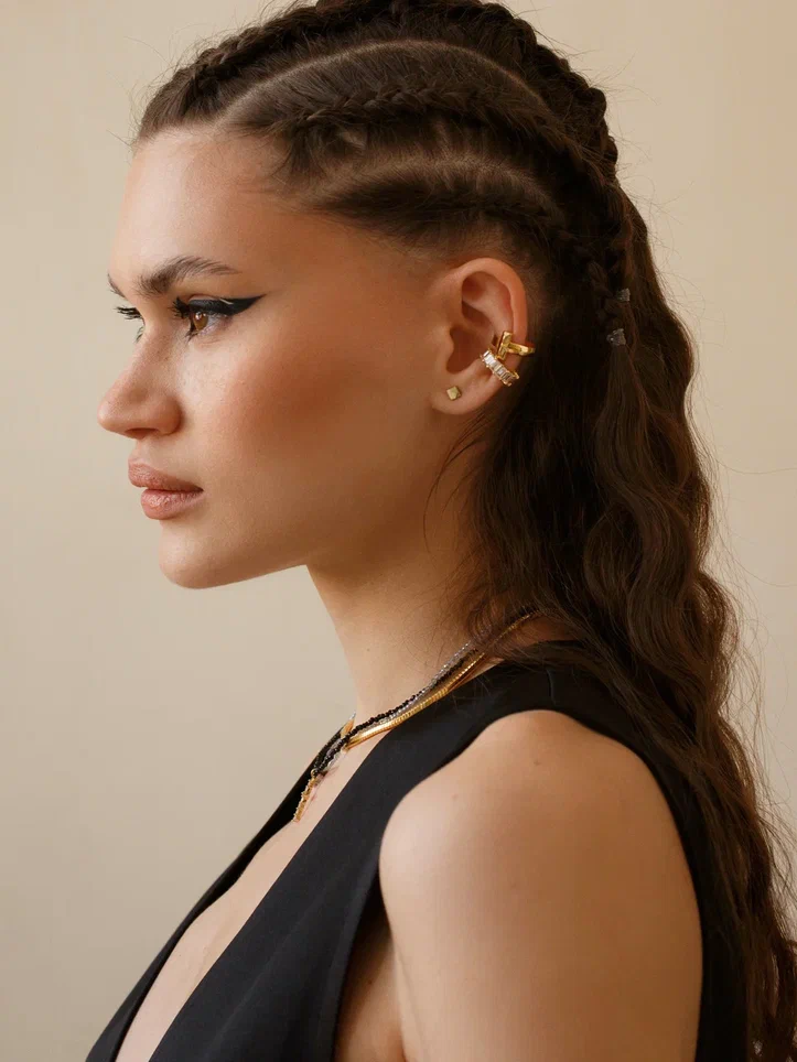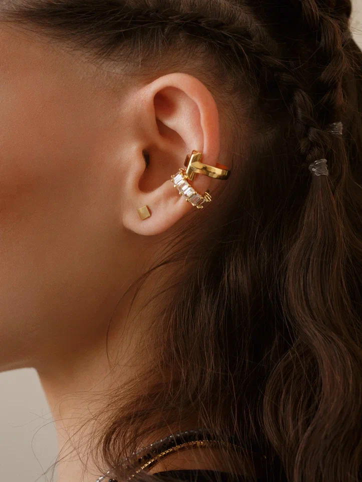 Архитектурный объемный кафф из цирконов трендовой геометричной формы