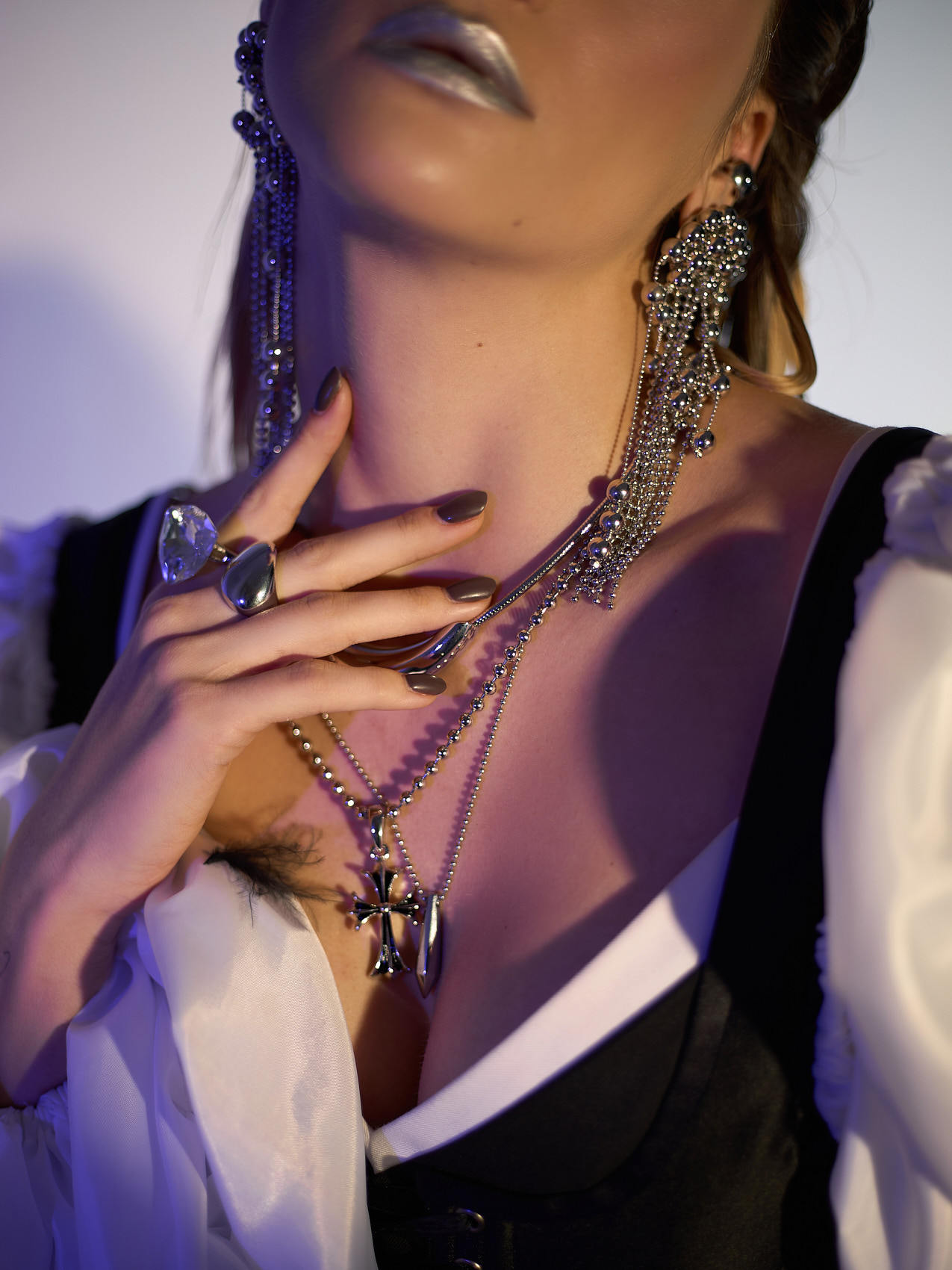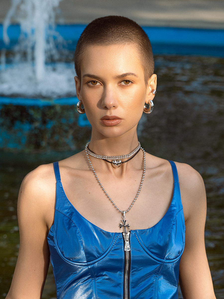 Удлиненная цепь с акцентным подвесом-крестом в стиле androgyne gothic