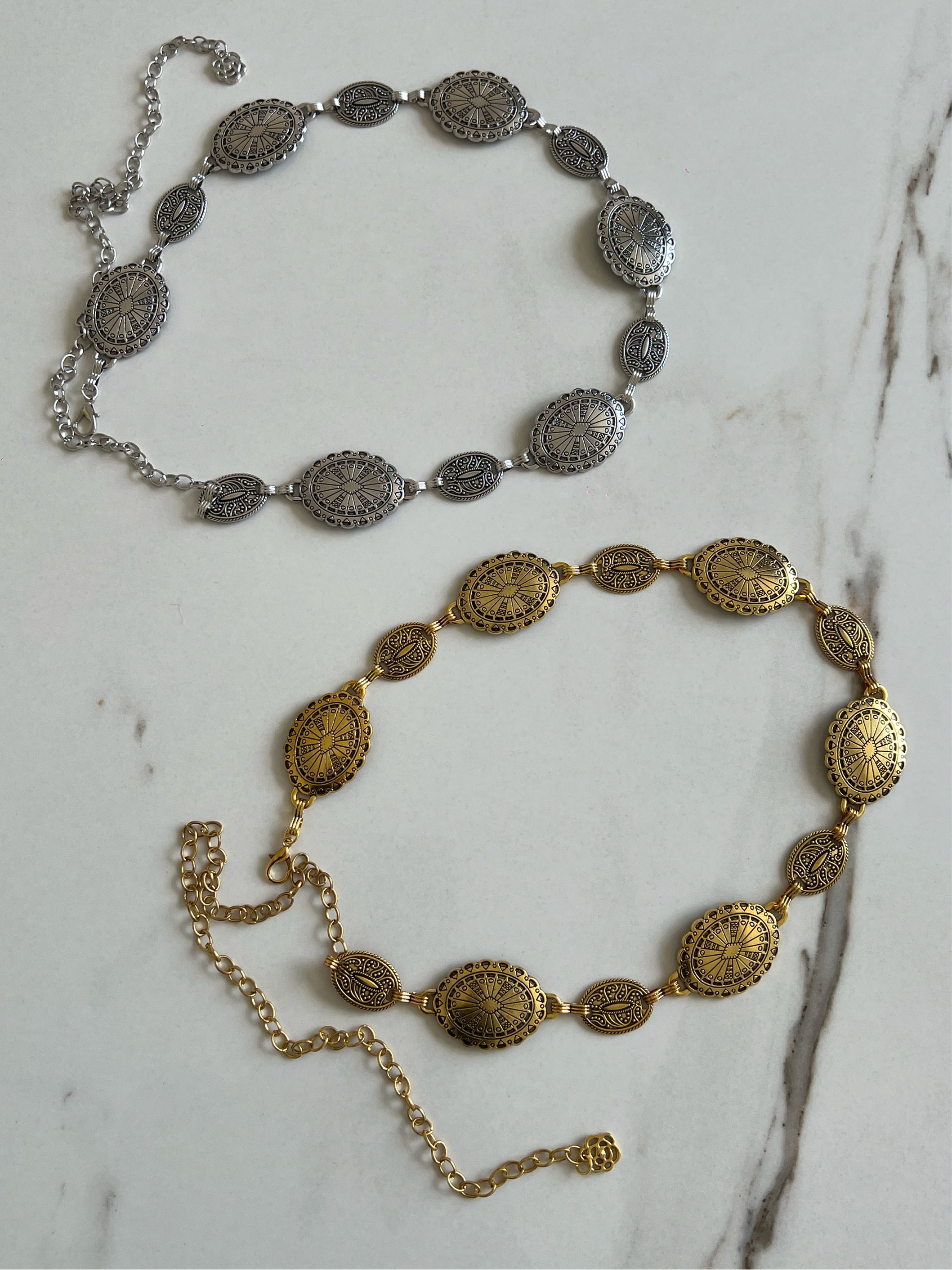 Винтажный бодичейн в облагороженном серебристом оттенке