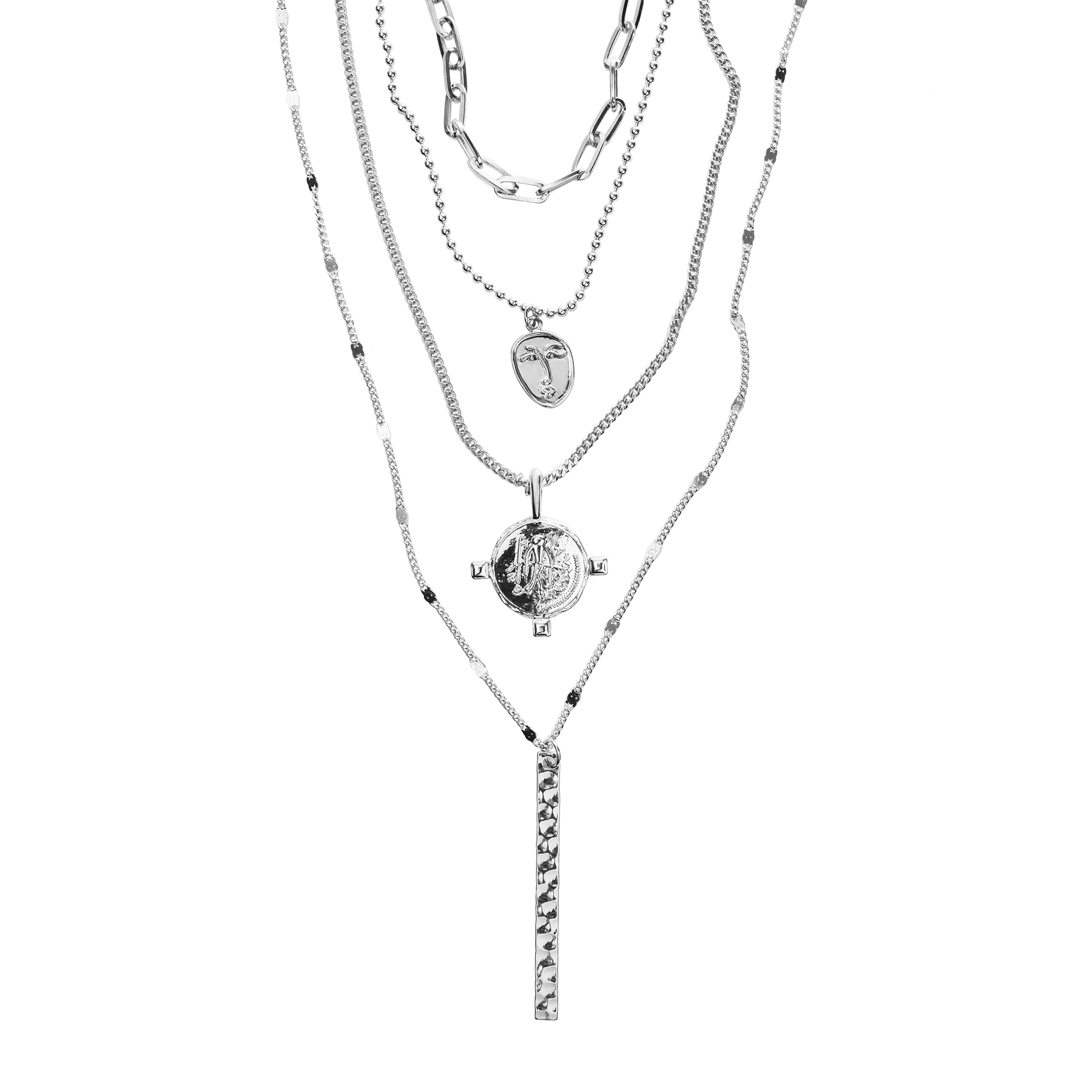Четырехъярусная подвеска с деталями Серебристый Ювелирный сплав купить в интернет магазине Kalinka