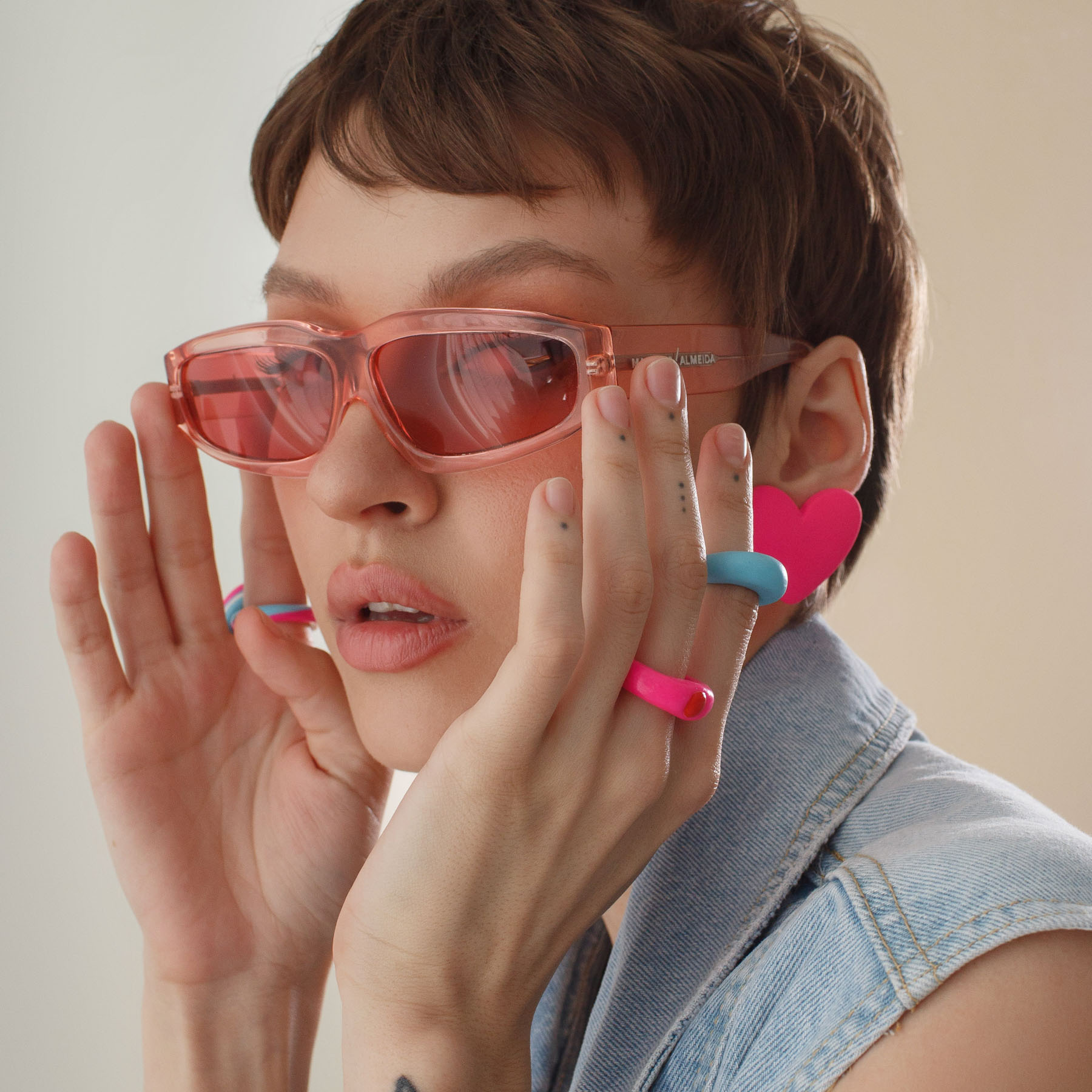 Матовые пусеты-сердца Серебристый Розовый Полимер, серебро купить в интернет магазине Kalinka