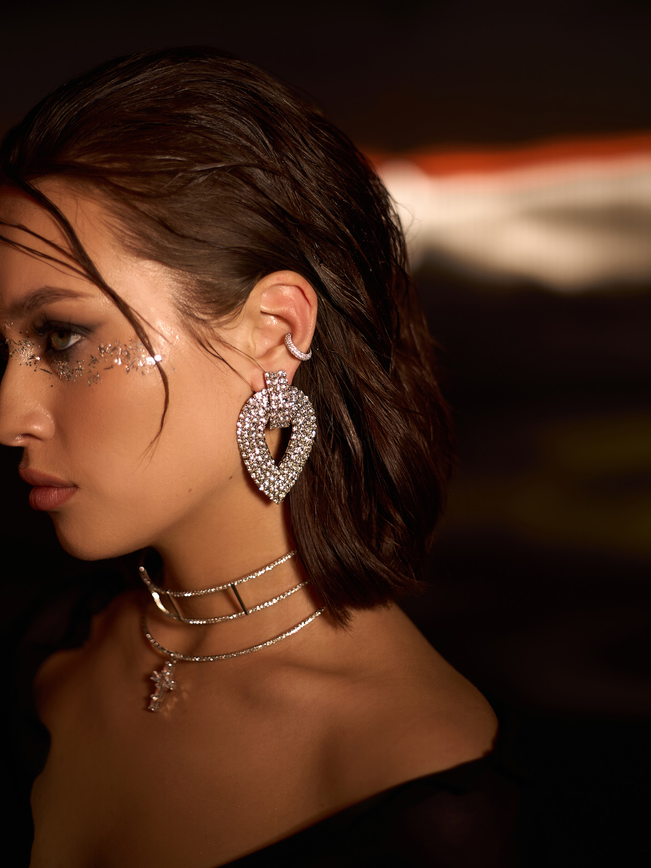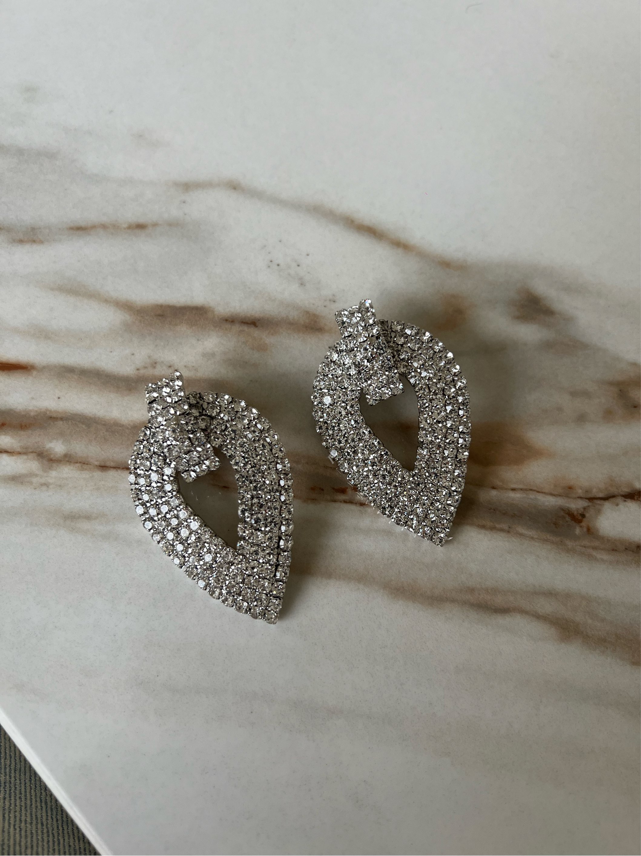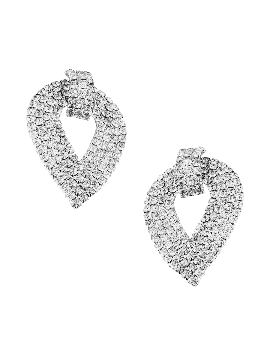 Ромбовидные серьги-пусеты Серебристый Ювелирный сплав, кристаллы купить в интернет магазине Kalinka