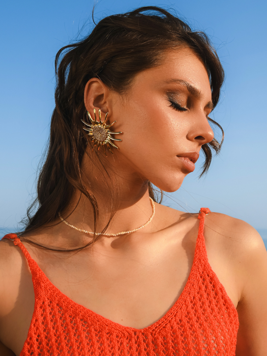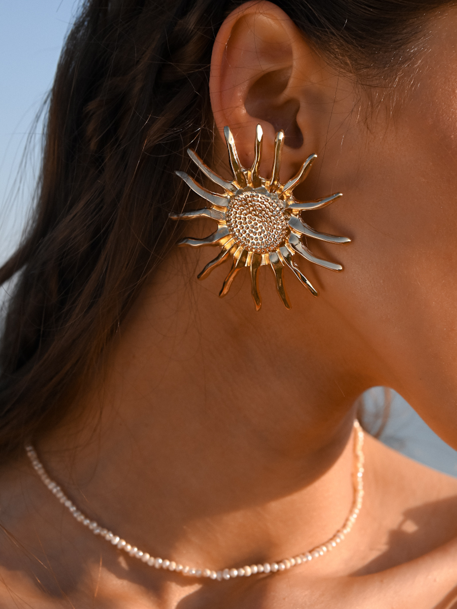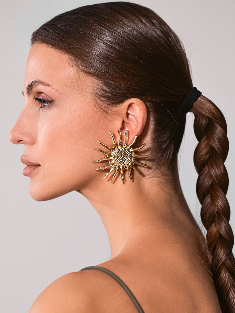 Запоминающиеся серьги-пусеты в виде подсолнухов