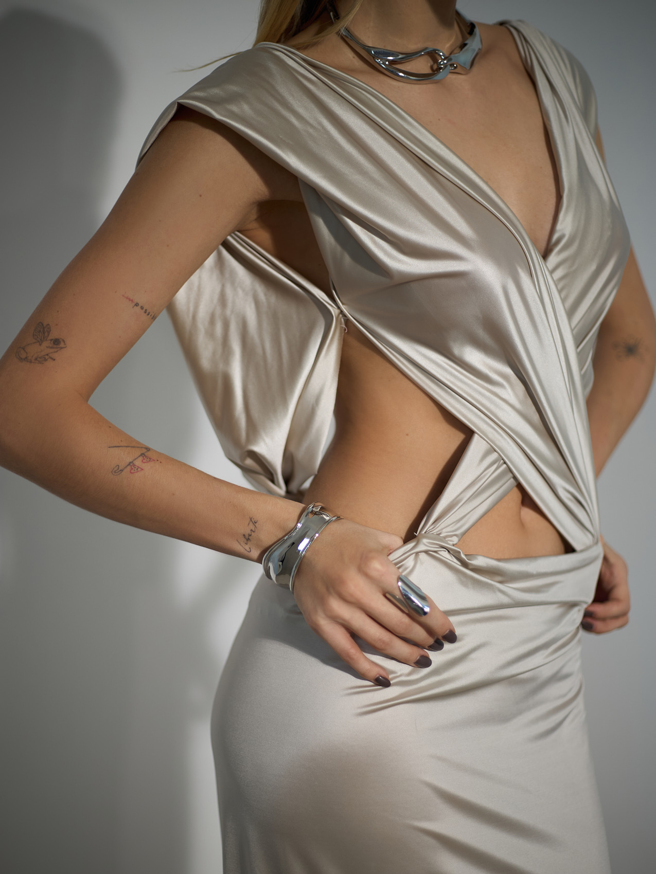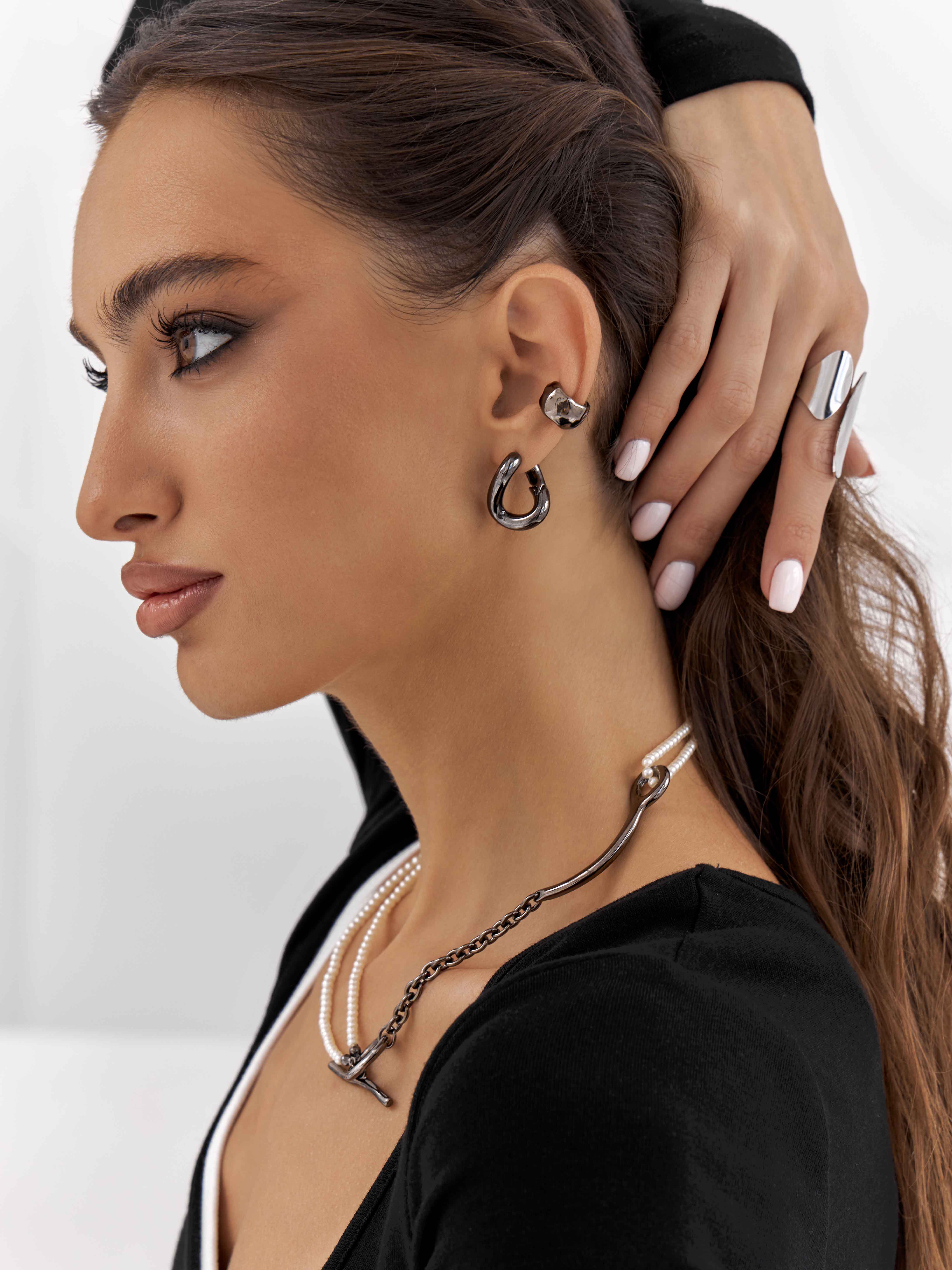 Акцентное массивное кольцо незамкнутого формата в индустриальном стиле