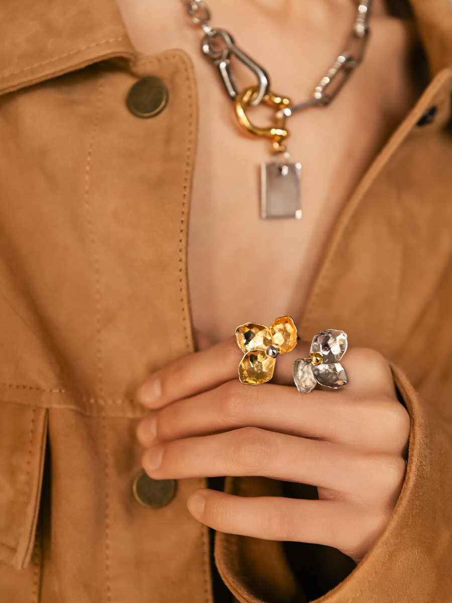 Биколорное кольцо с цветами