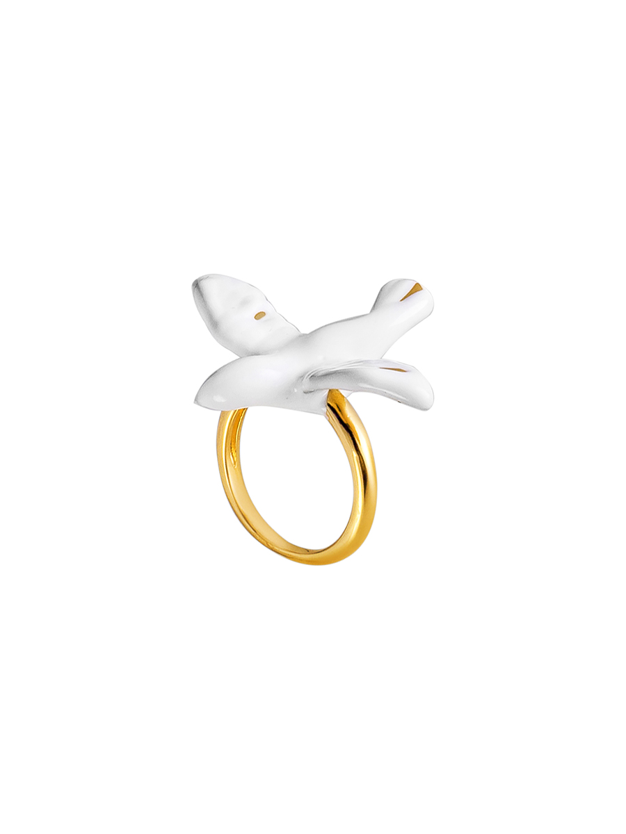 Кольцо в стиле ретро с голубем Золотистый Белый Ювелирный сплав, эмаль купить в интернет магазине Kalinka