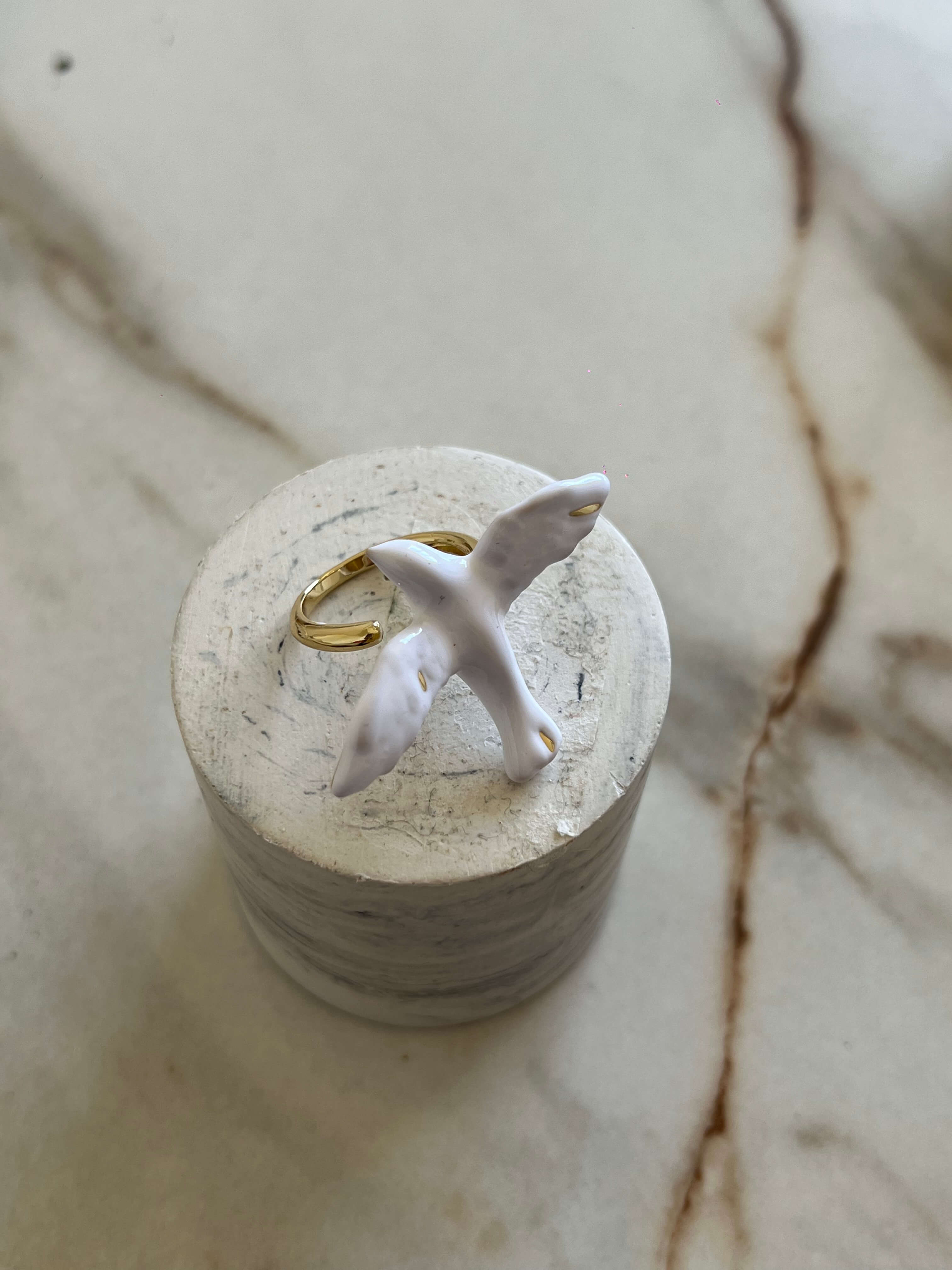 Уникальное кольцо с голубкой в трендовом сочетании золота и эмали