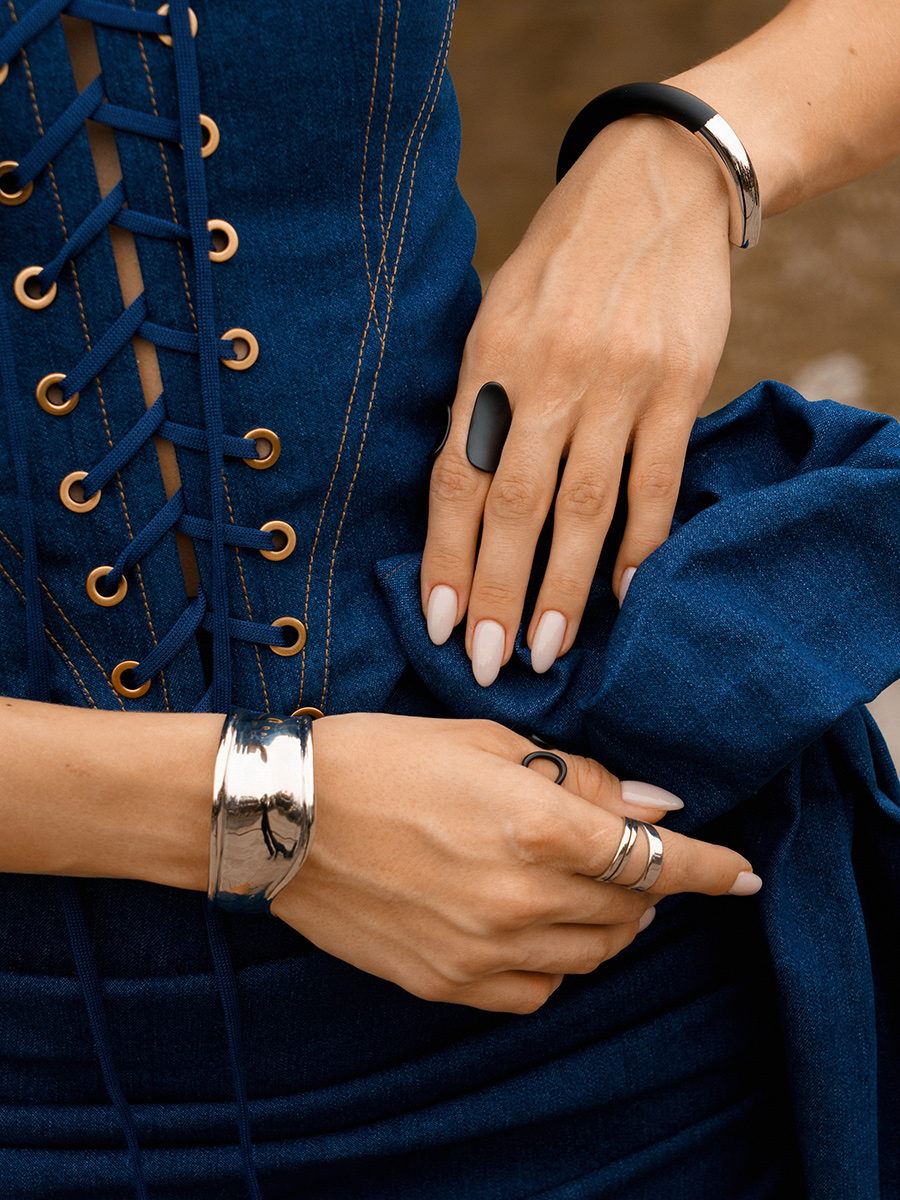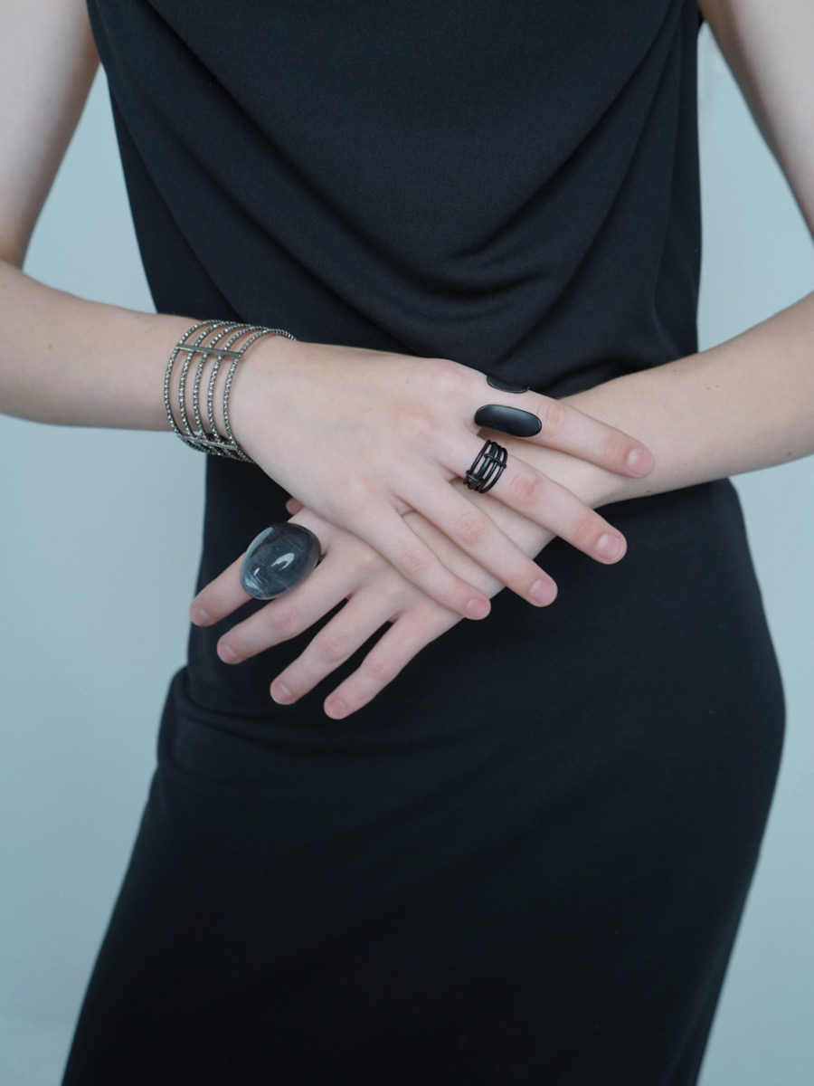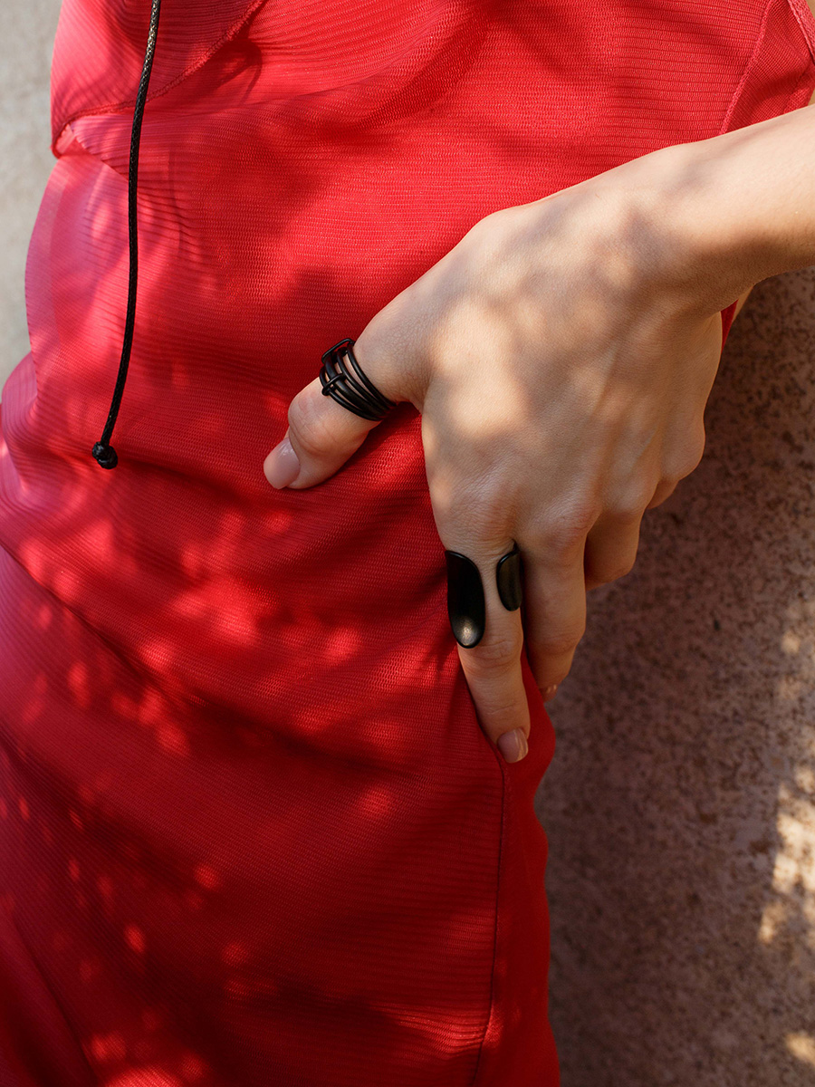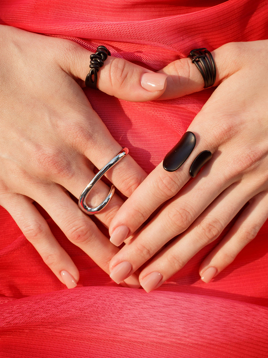 Матовое кольцо с асимметричными деталями в стиле деконструктивизм