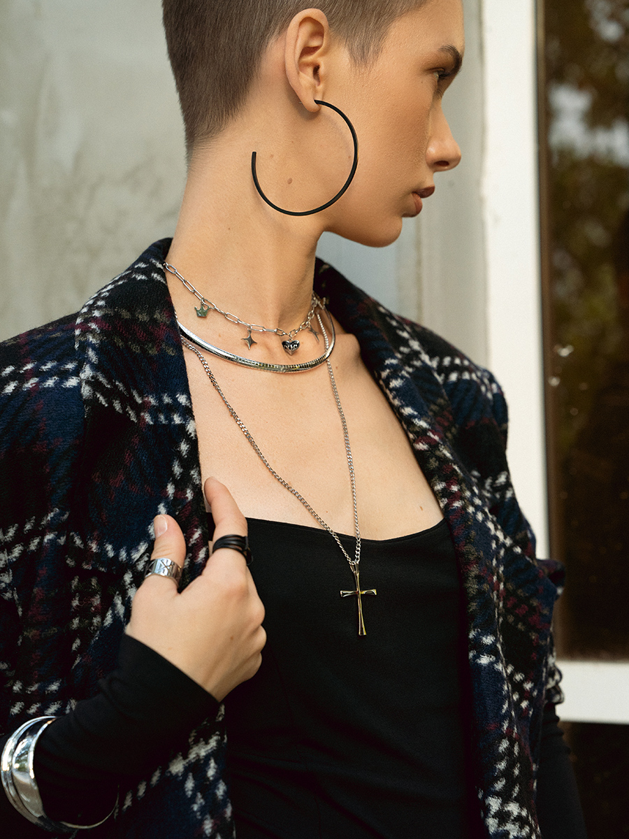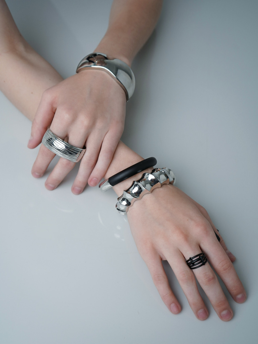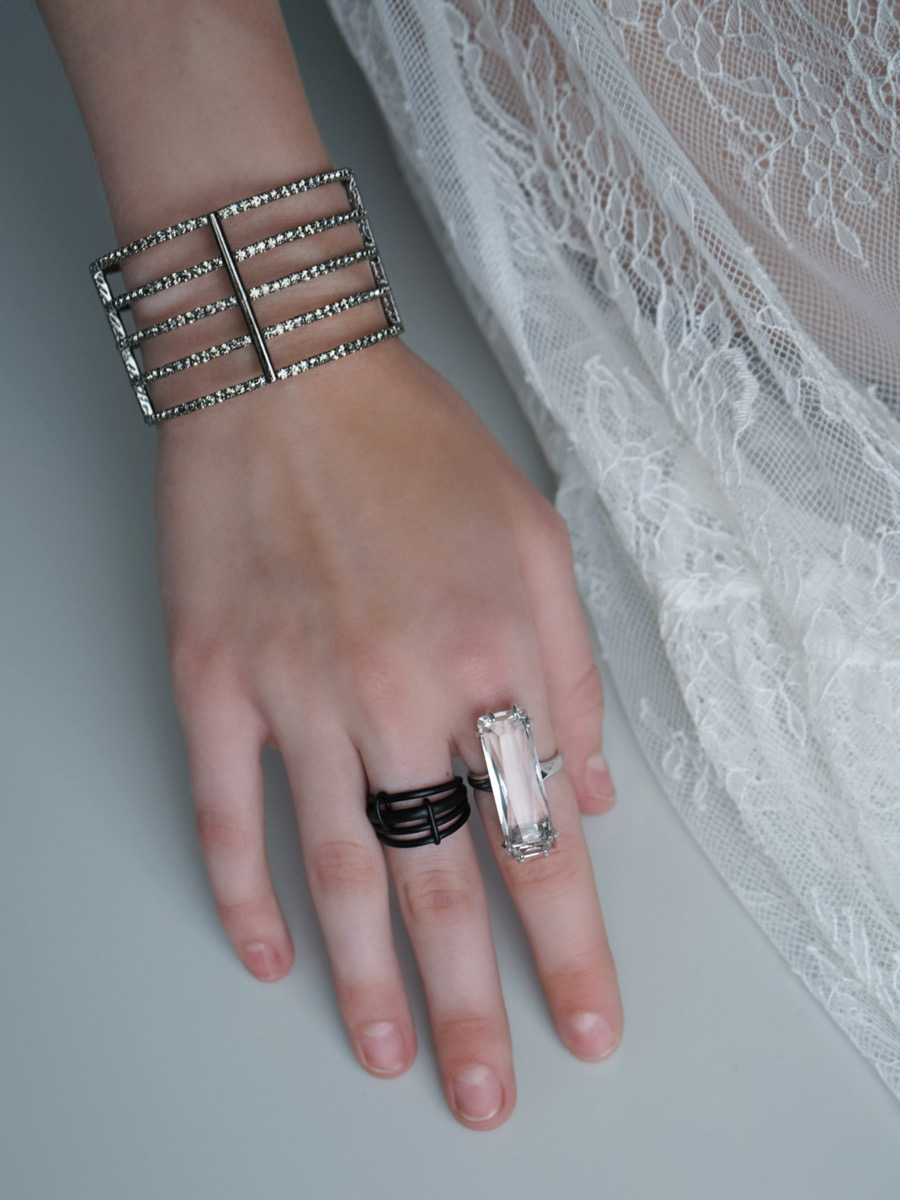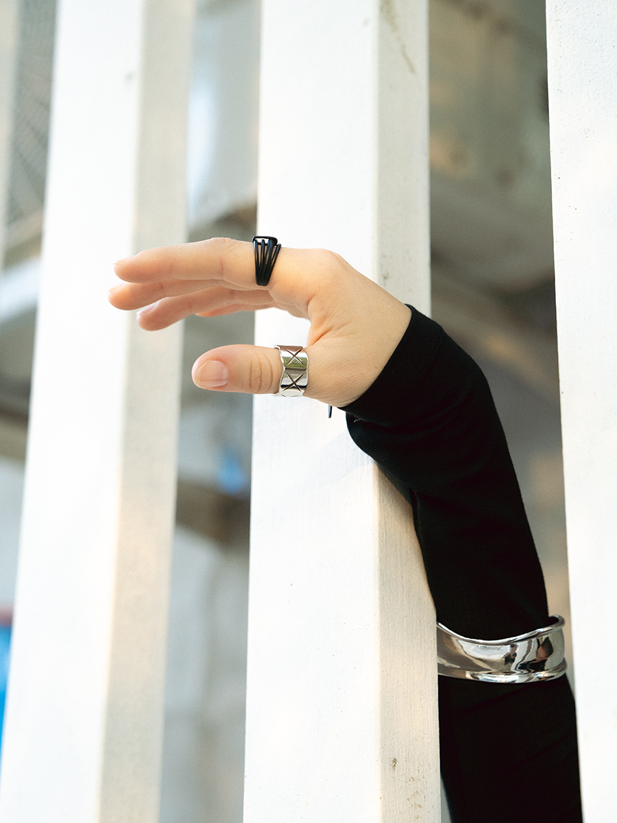 Многоярусное тонкое неглянцевое кольцо с вертикальными элементами