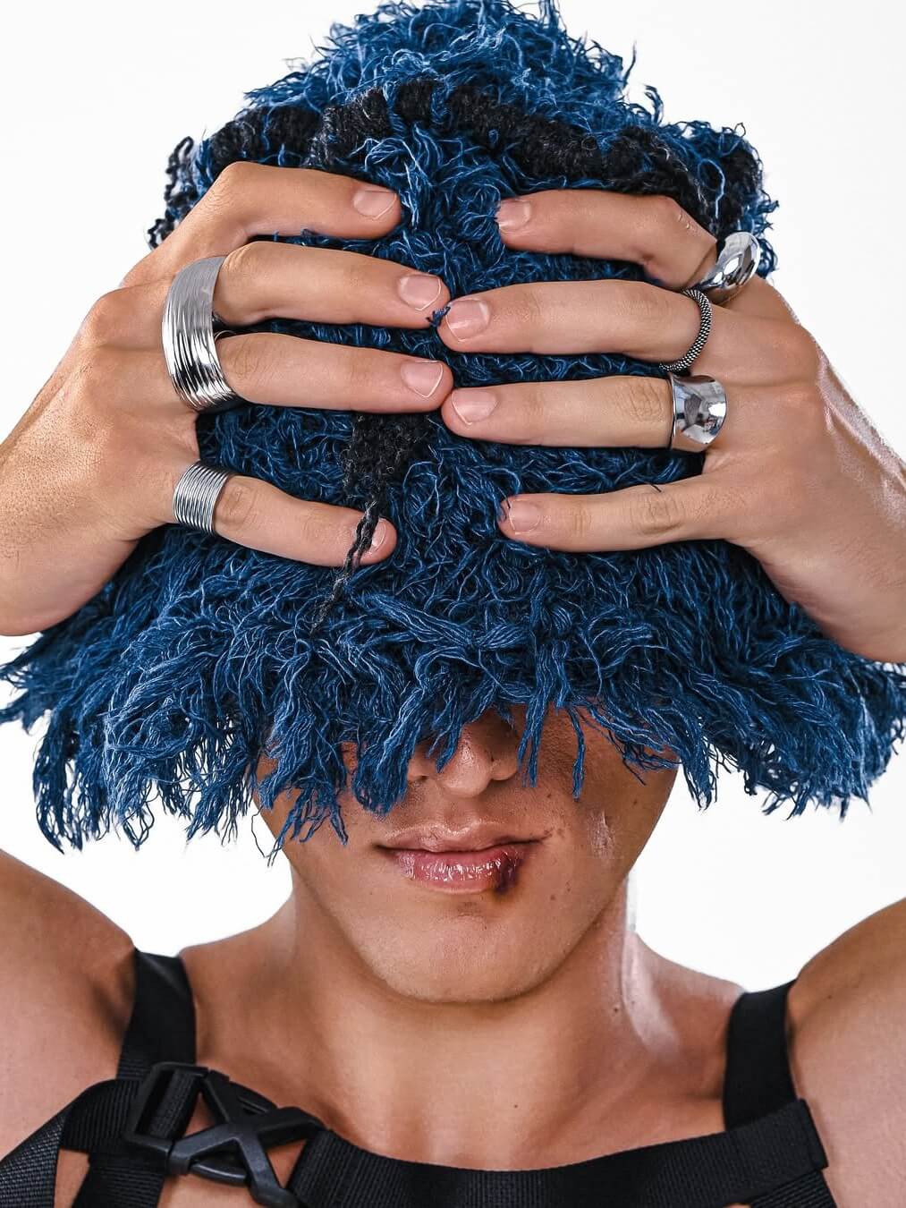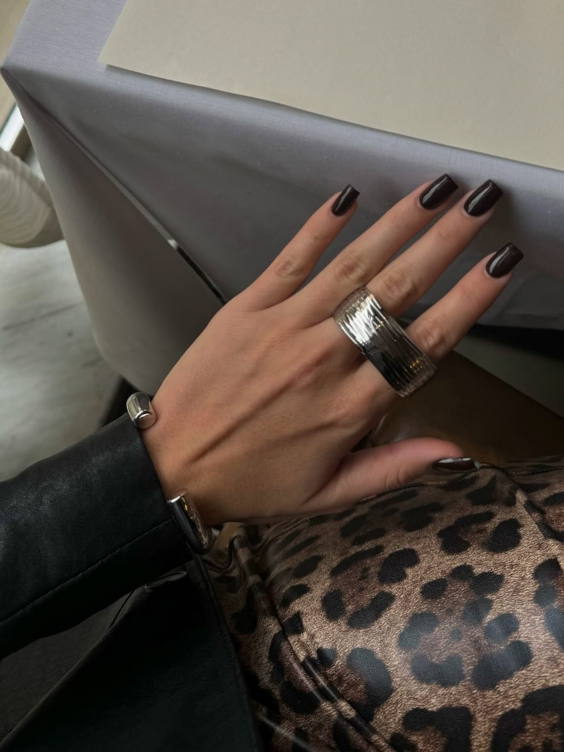 Броское кольцо на два пальца с нетривиальной слегка ребристой фактурой