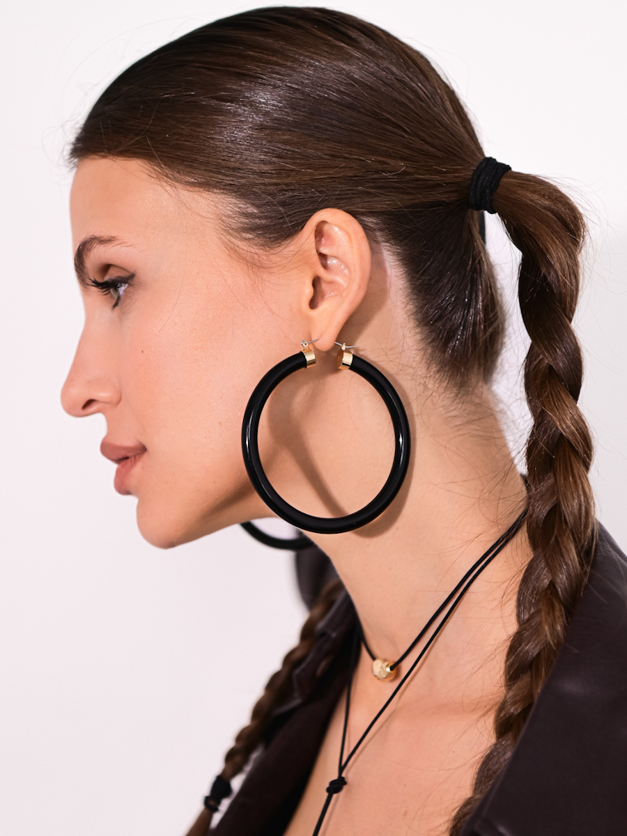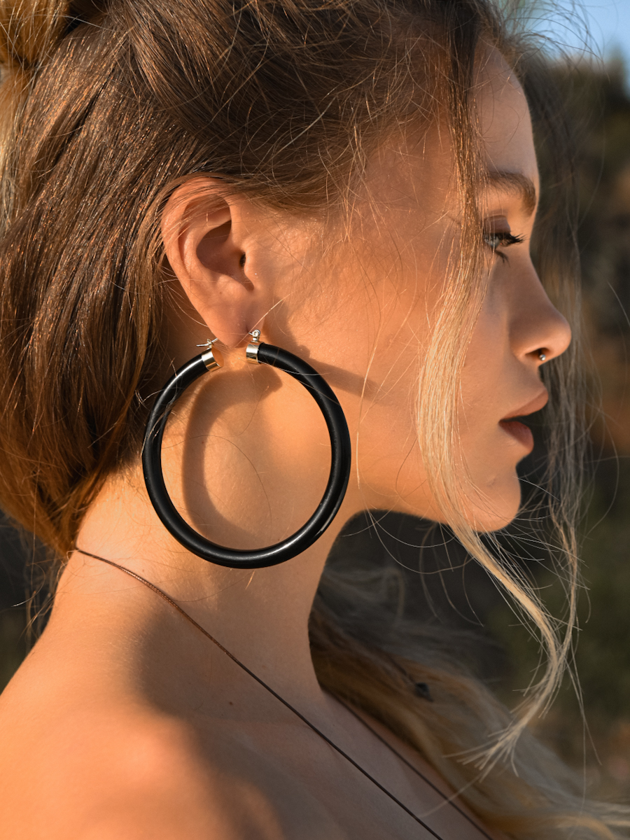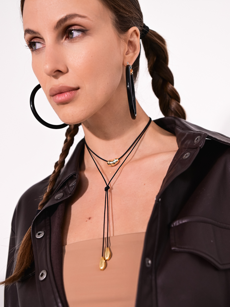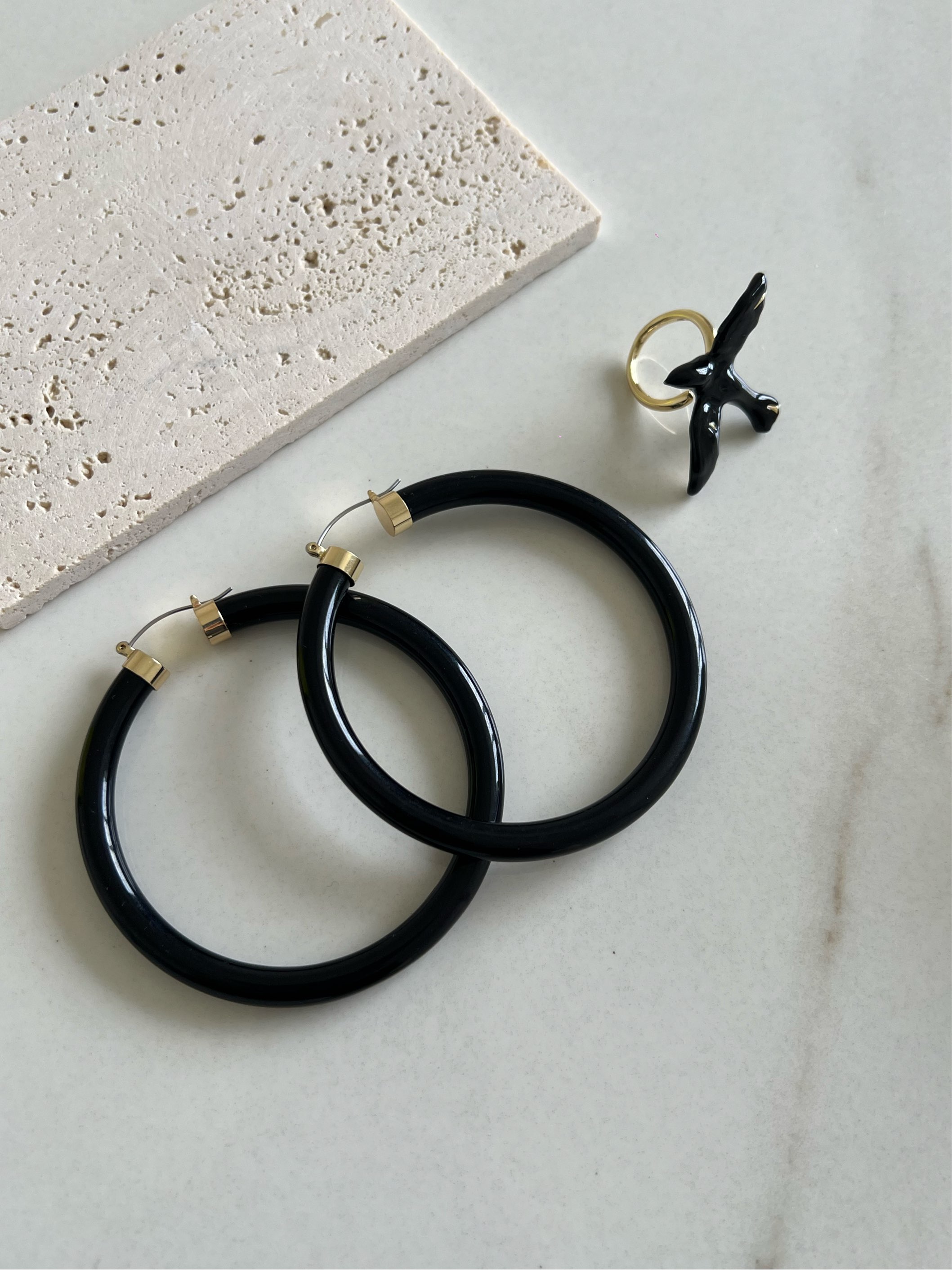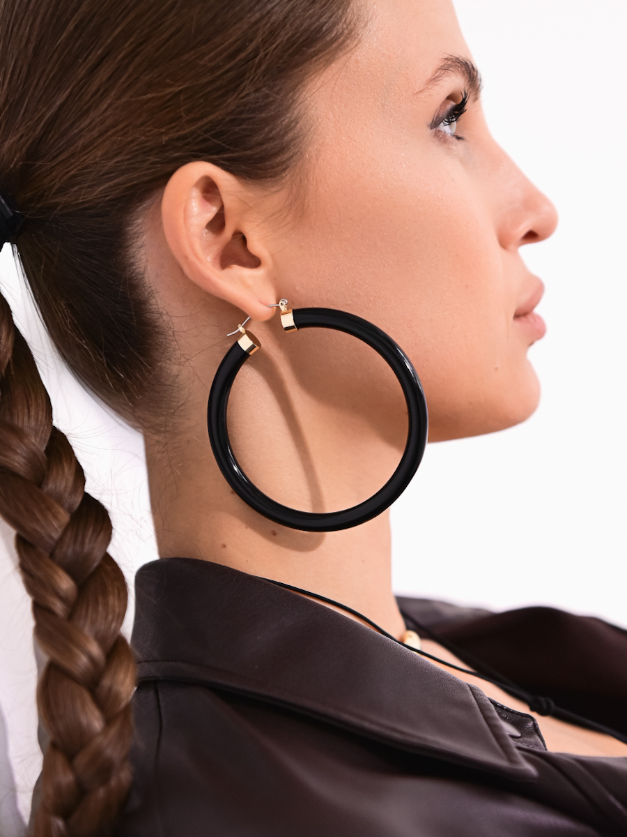 Базовые серьги-конго Золотистый Черный Ювелирный сплав, полимеры купить в интернет магазине Kalinka