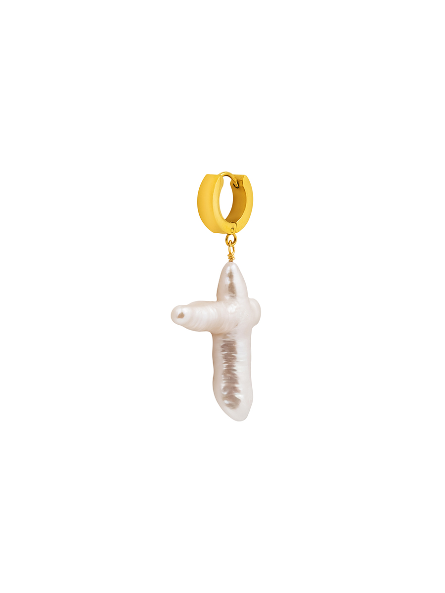 Необычная, многофункциональная моно-серьга с жемчуженной необычной формы