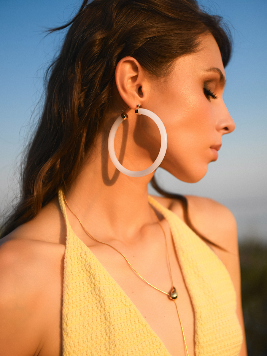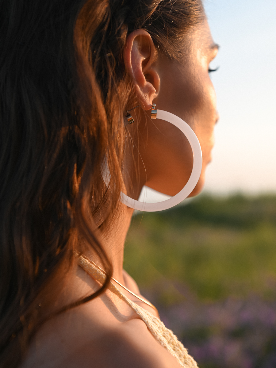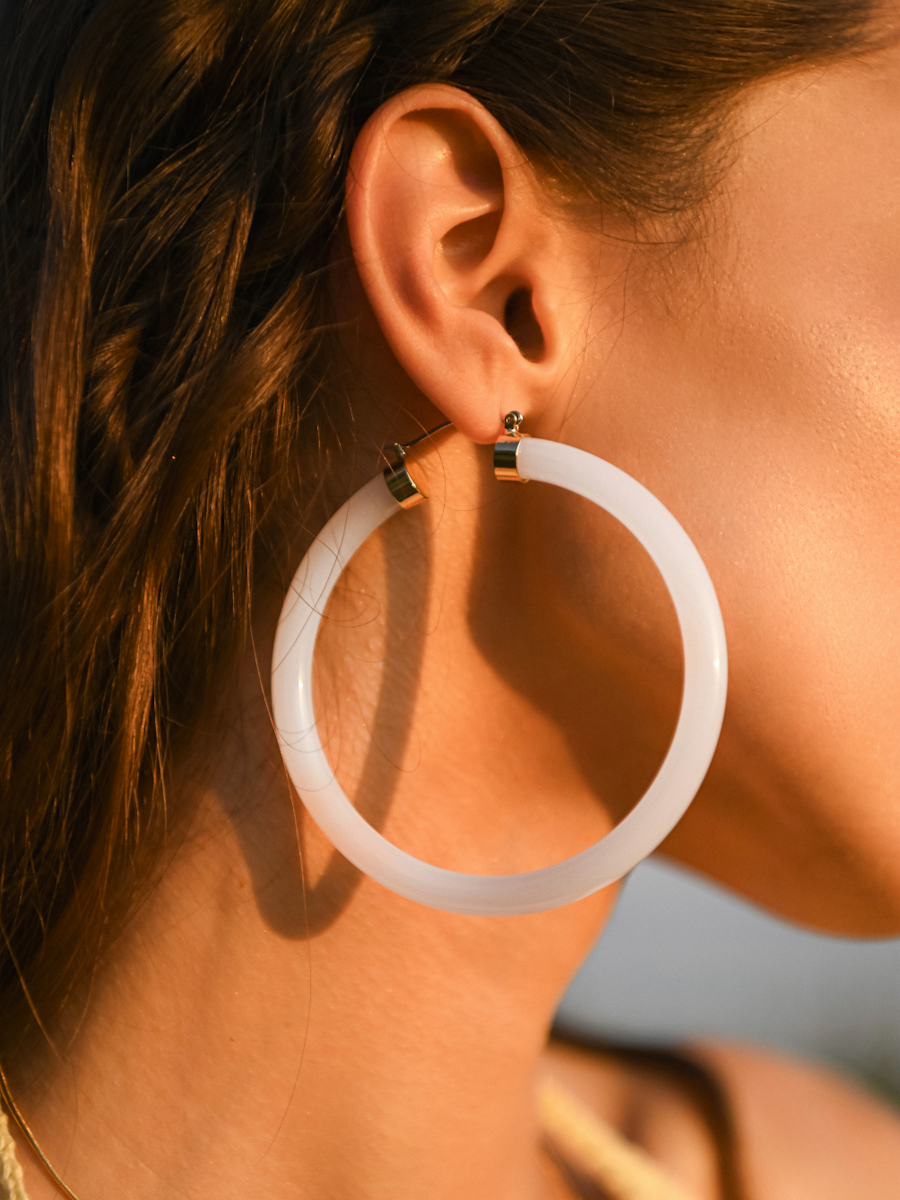 Нежные серьги-кольца Золотистый Белый Ювелирный сплав, полимеры купить в интернет магазине Kalinka