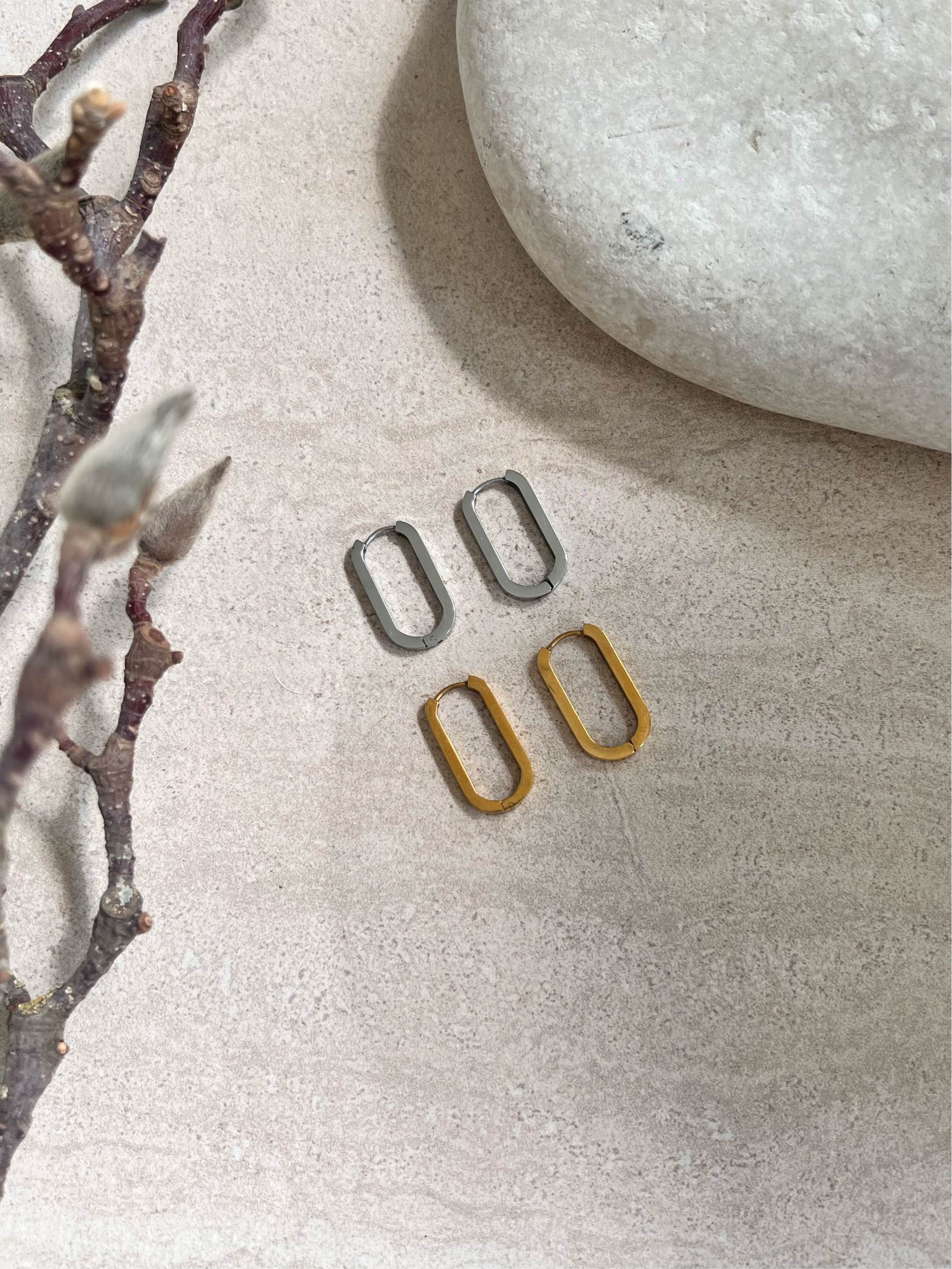 Утонченные серьги-овалы Золотистый Ювелирная сталь купить в интернет магазине Kalinka