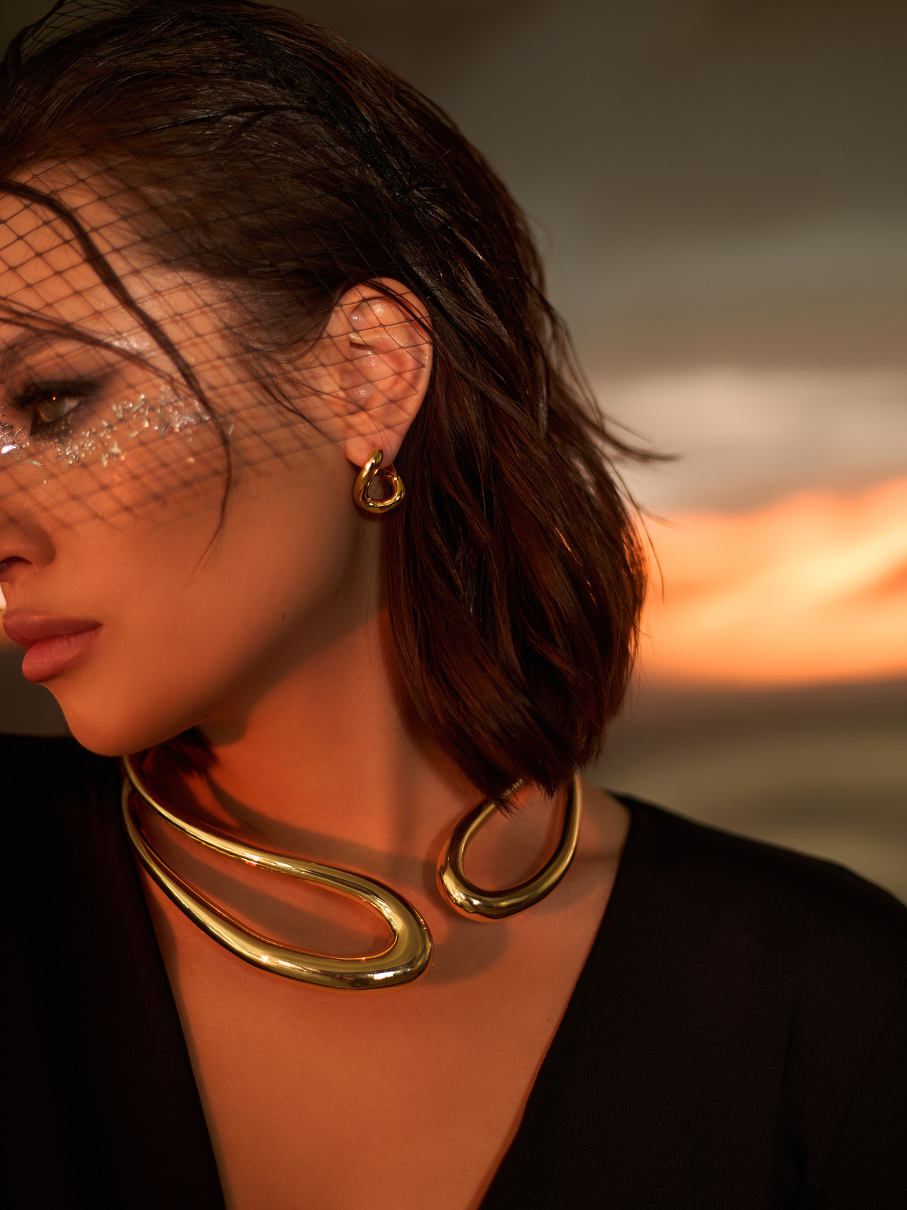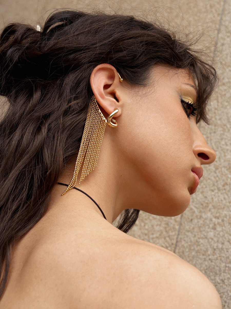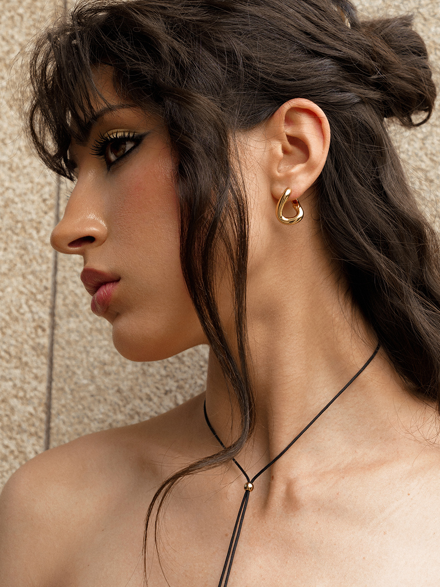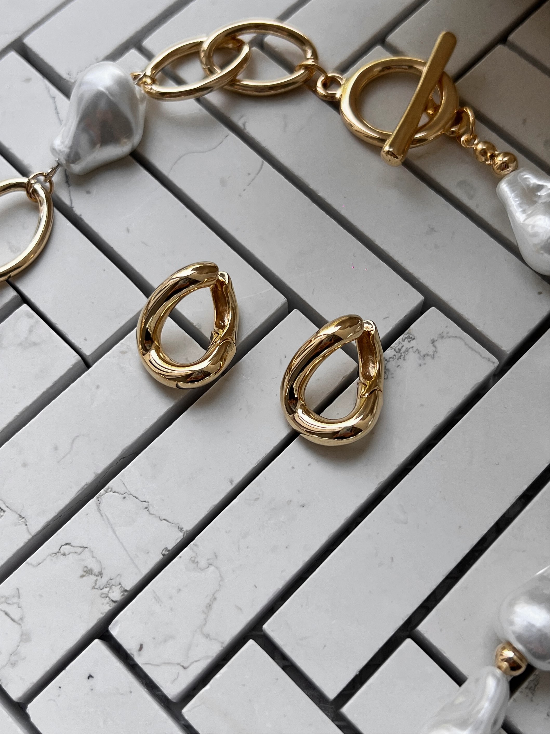 Изогнутые серьги-кольца Золотистый Ювелирный сплав купить в интернет магазине Kalinka