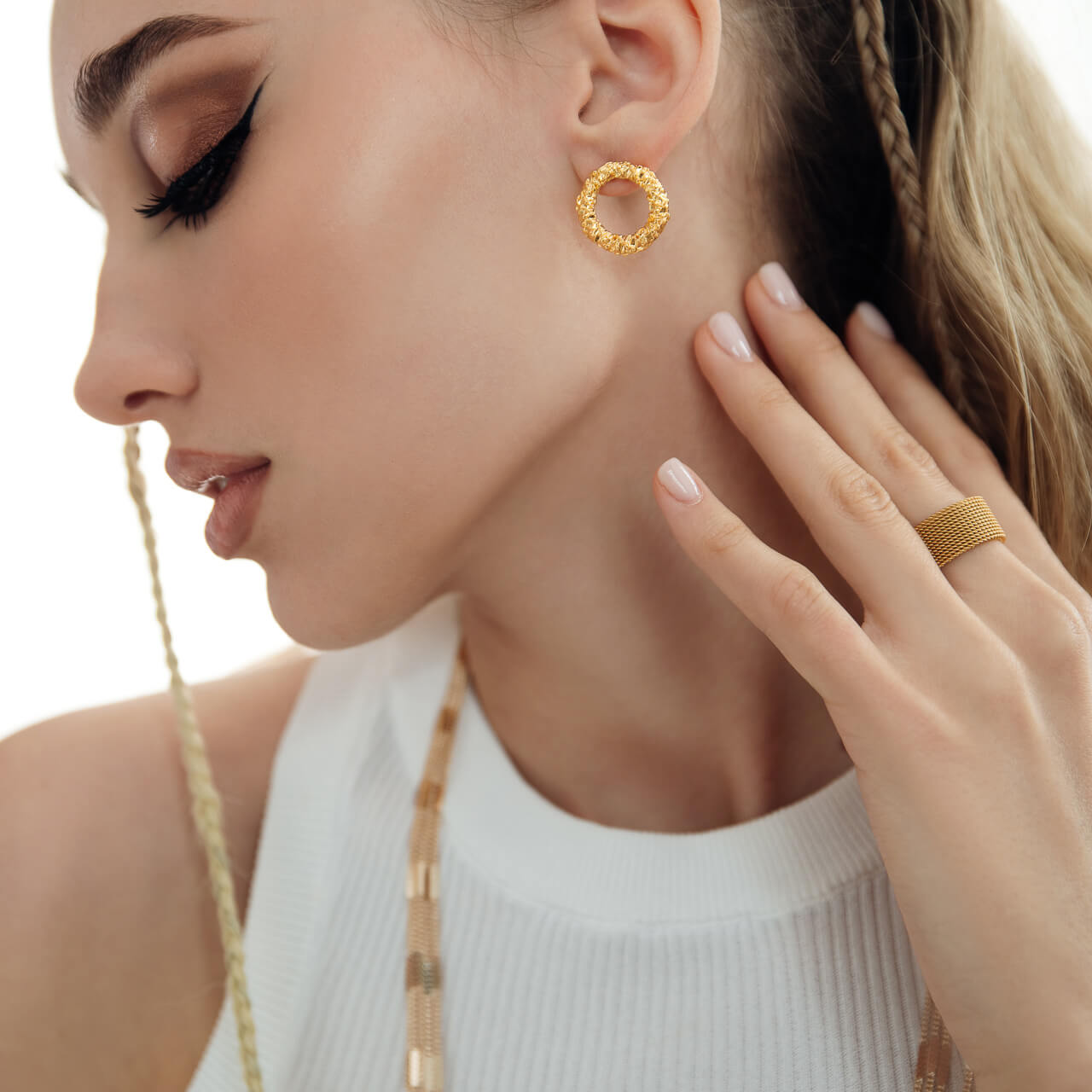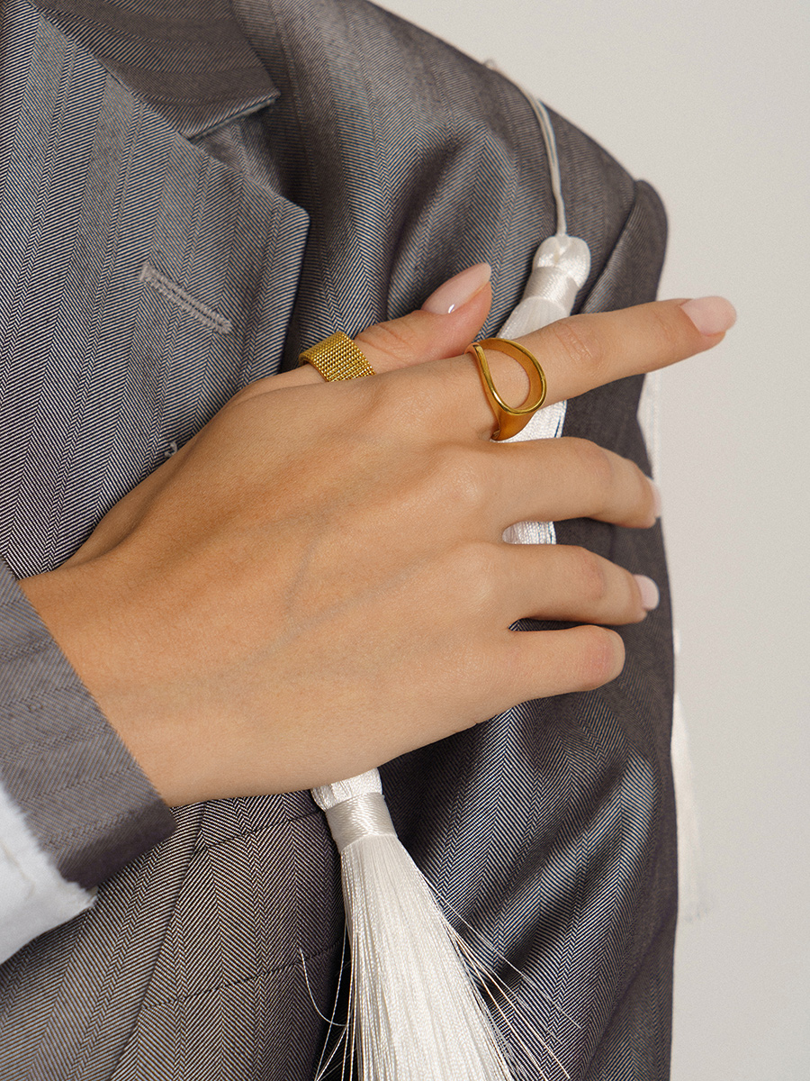 Ультрамодное неглянцевое кольцо из текстурных элементов как кольчуга