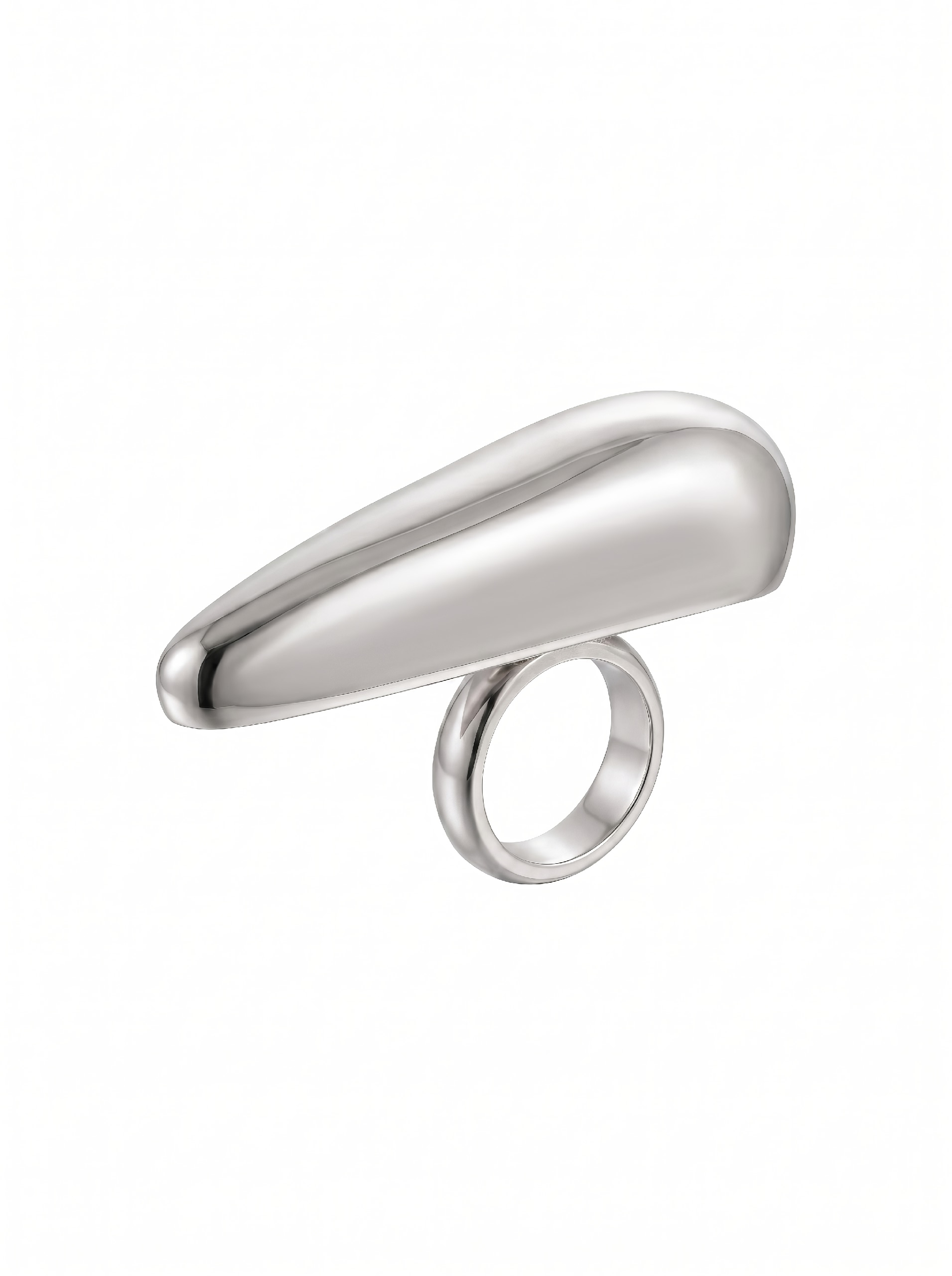 Современное кольцо каплеобразной формы в серебристом оттенке