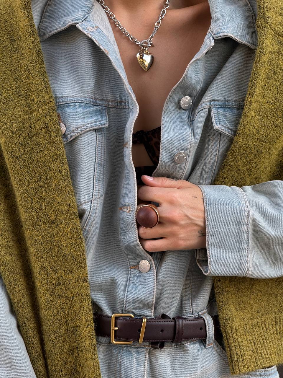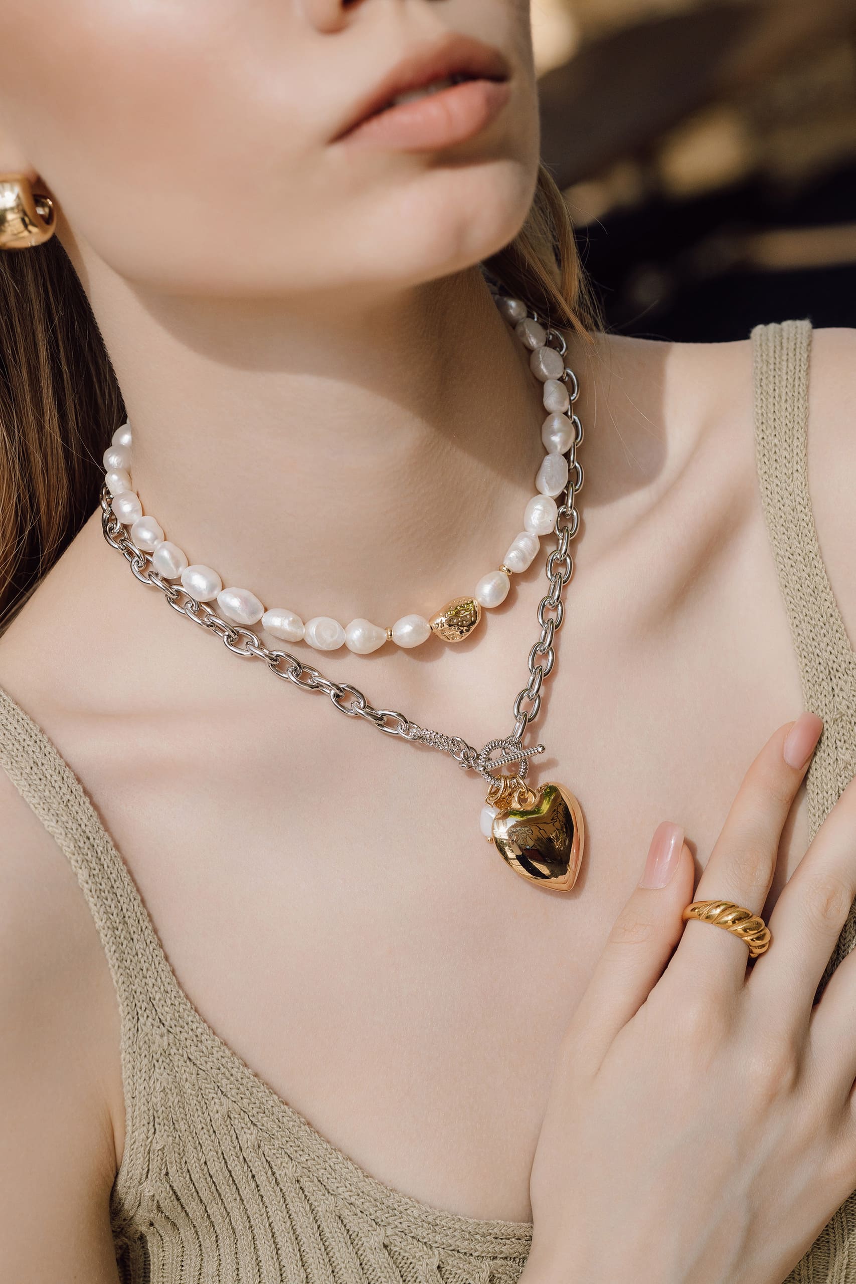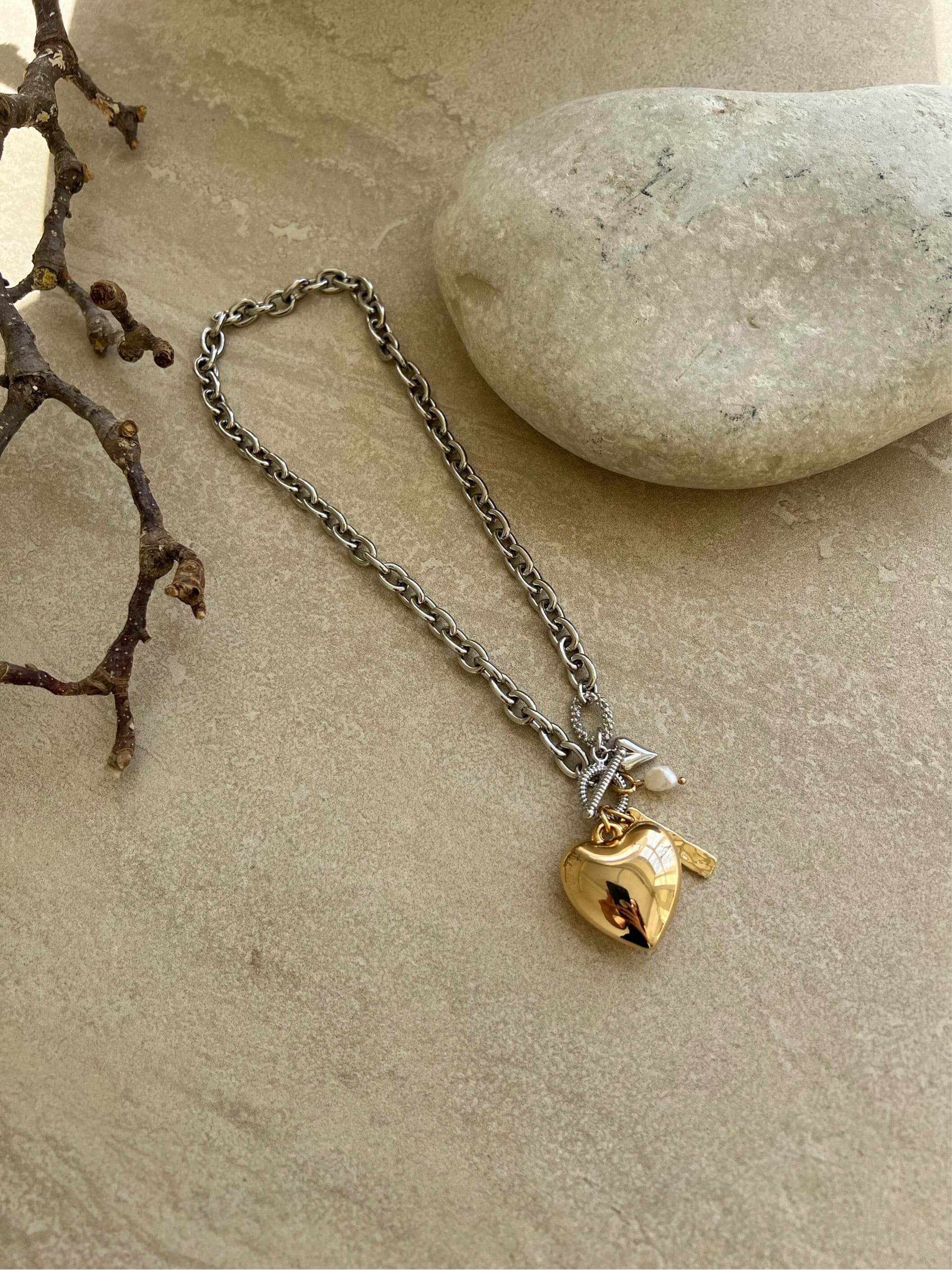 Примечательная цепь на трендовой застежке тогл с акцентными подвесами