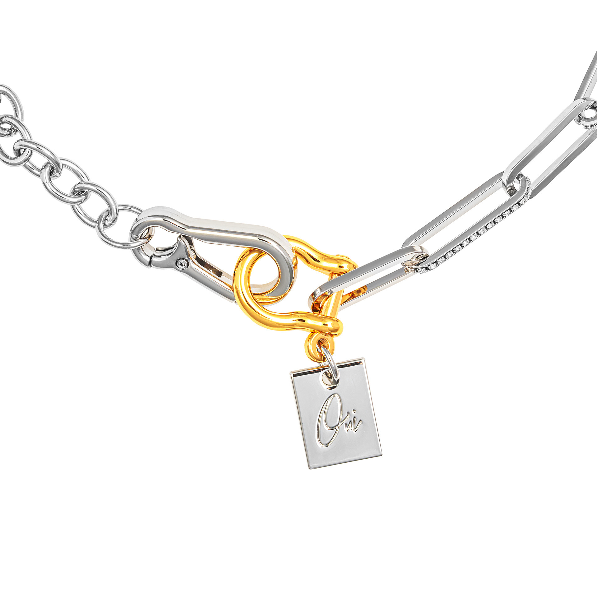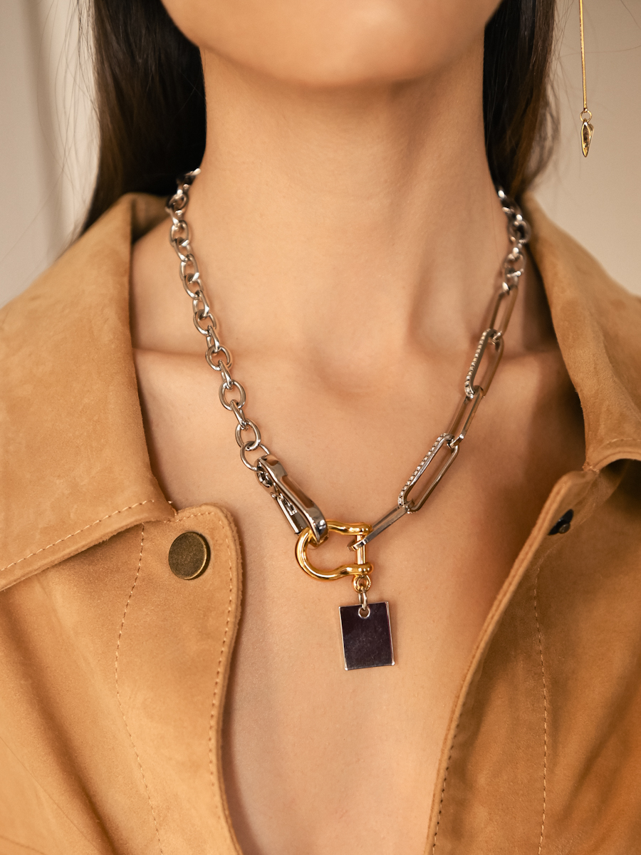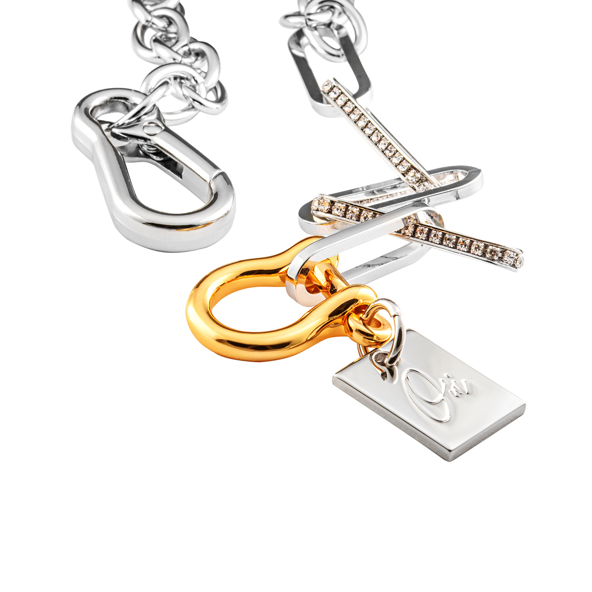 Комбинированная цепь с массивным карабином и декорацией кристаллами
