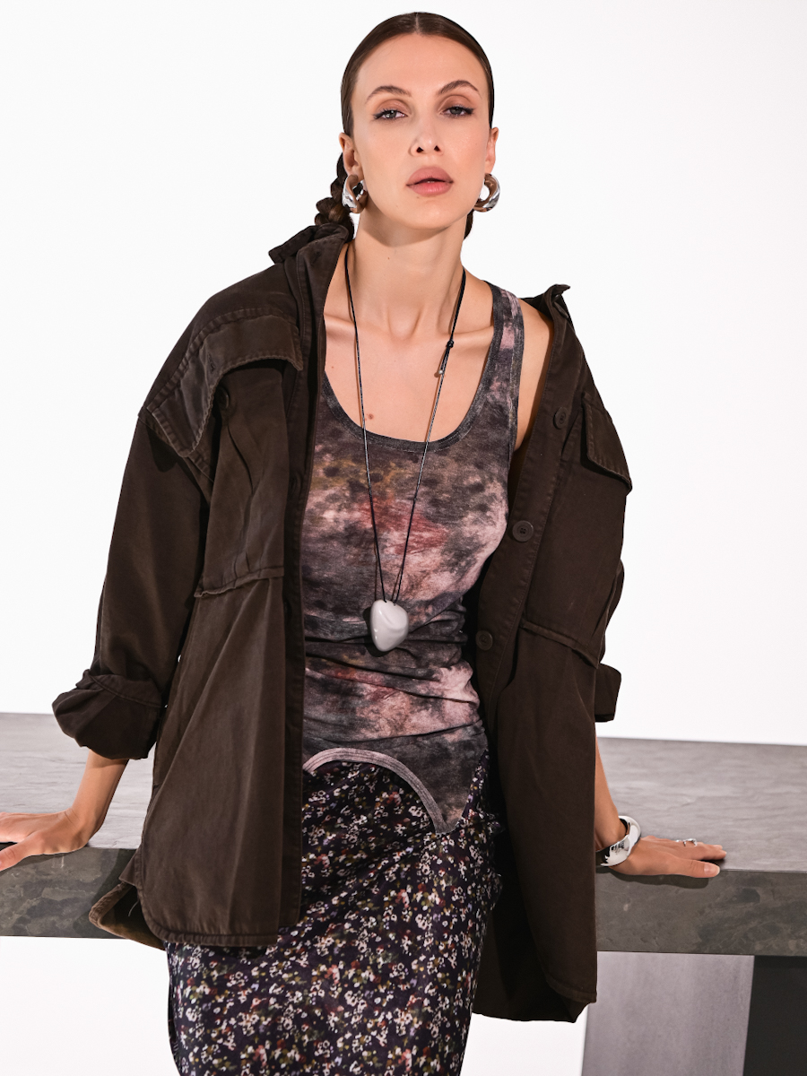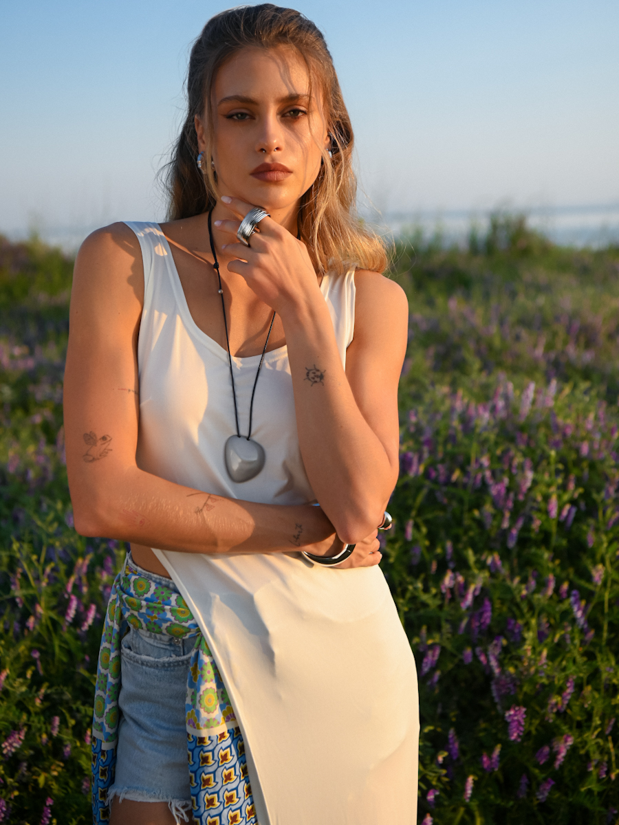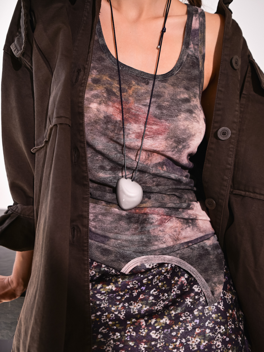 Подвижное ожерелье на шнурке Серый Ювелирный сплав, экокожа купить в интернет магазине Kalinka