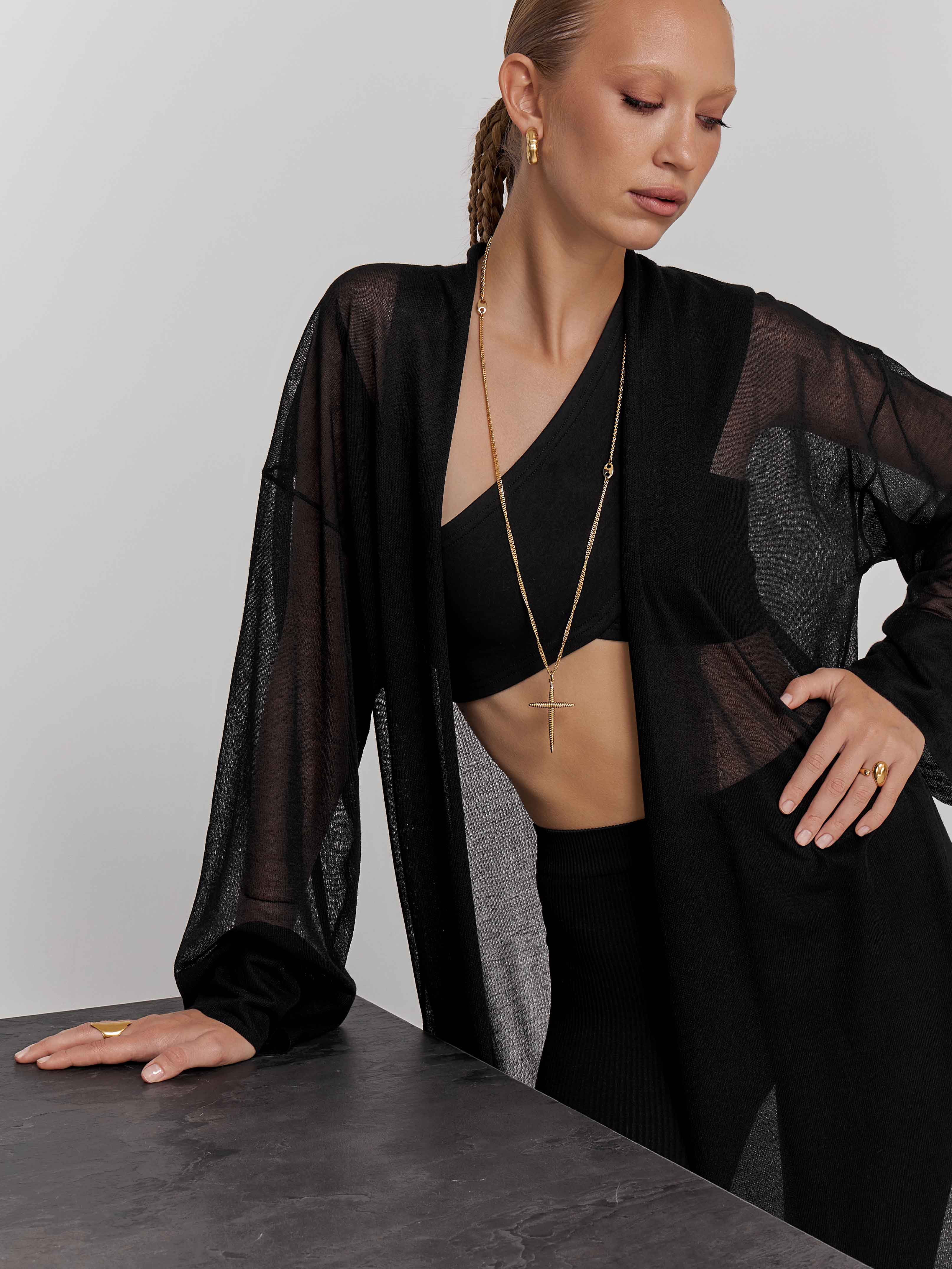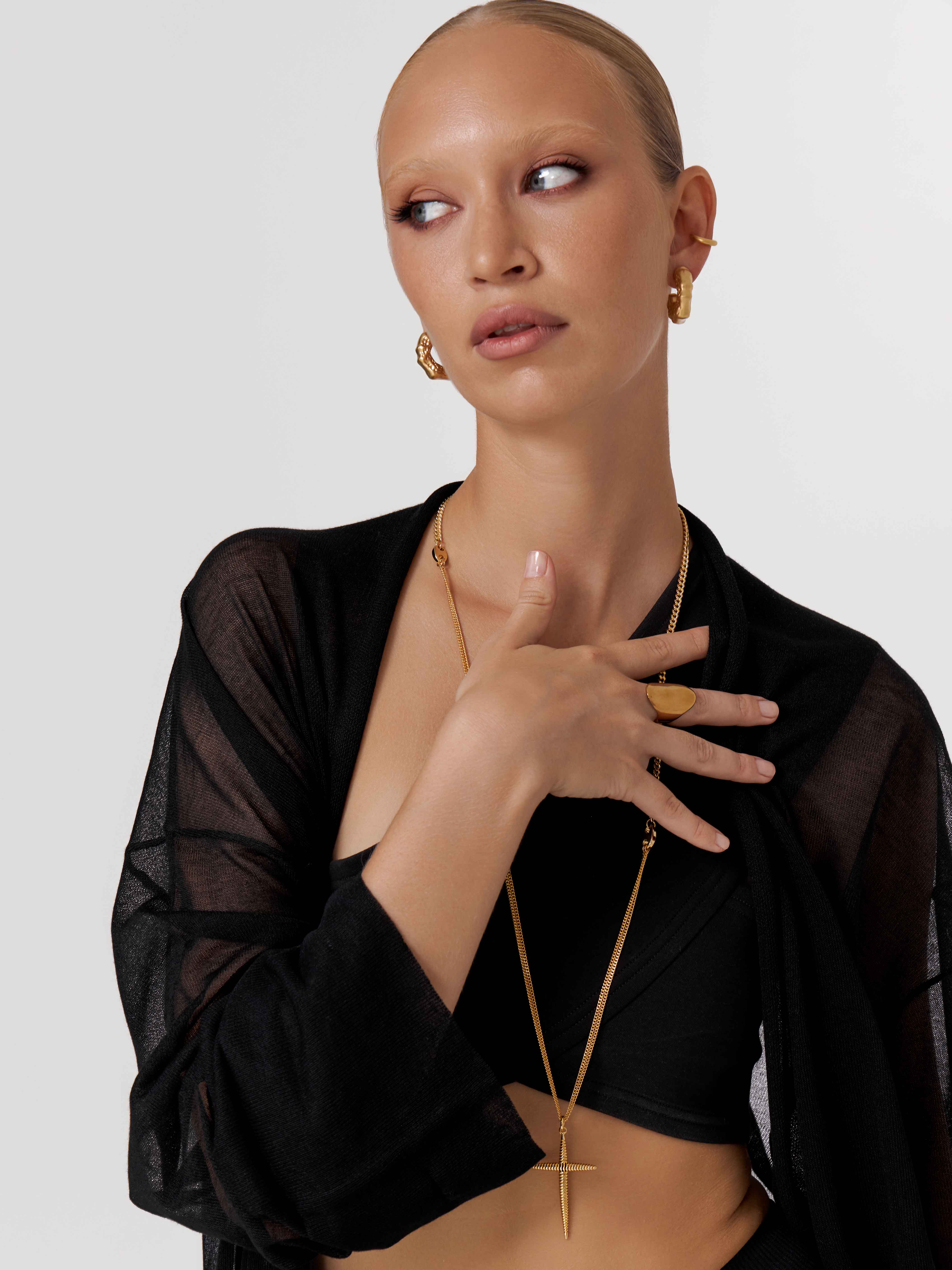 Удлиненная цепь с крестом Золотистый Ювелирный сплав купить в интернет магазине Kalinka