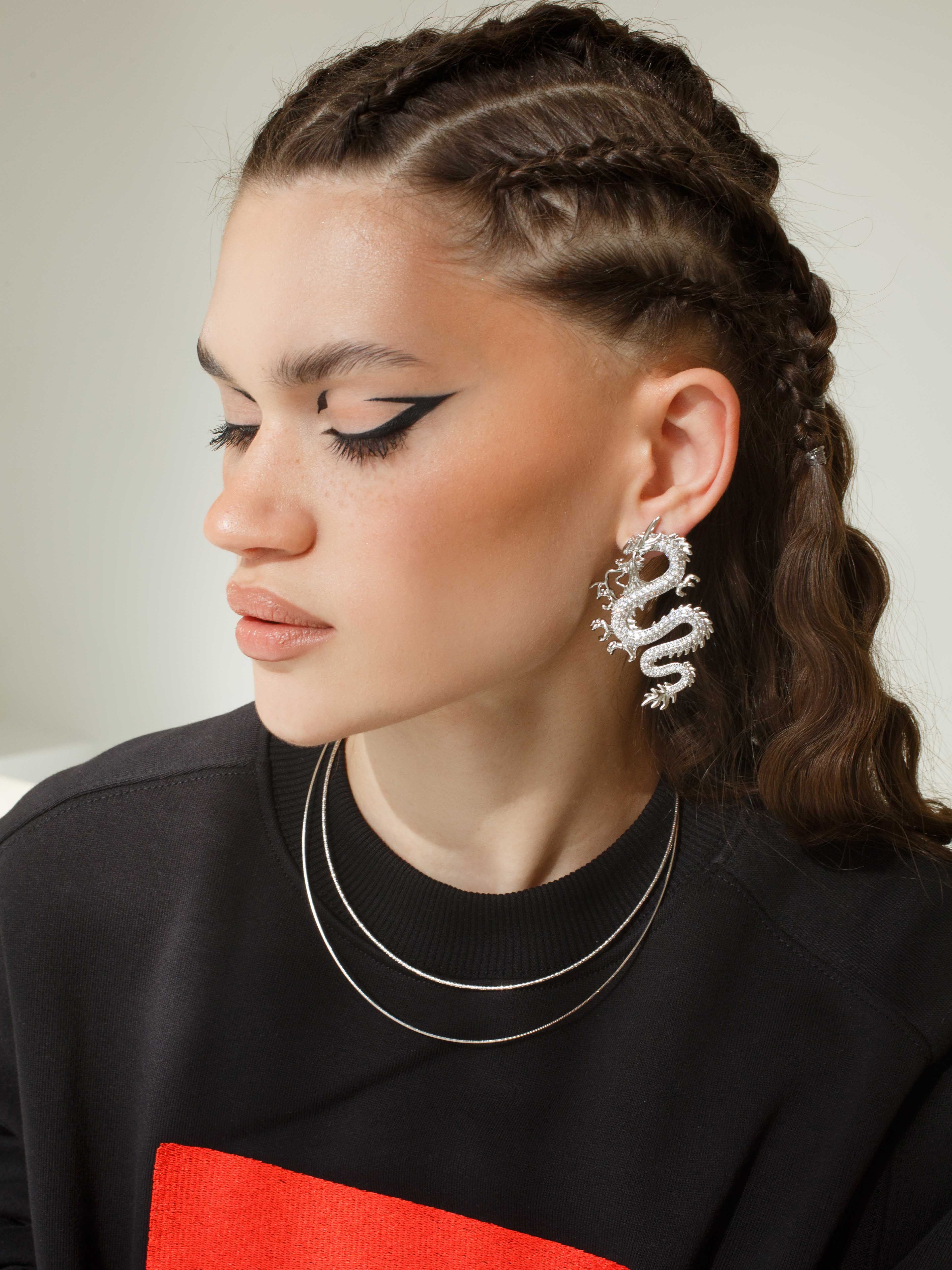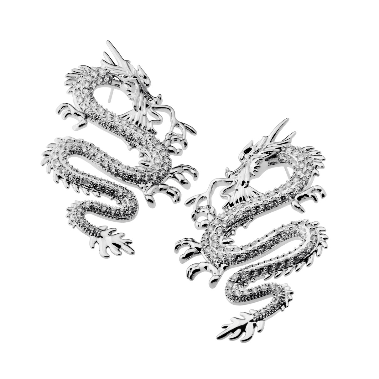 Акцентные серьги с драконами Серебристый Ювелирный сплав, кристаллы купить в интернет магазине Kalinka
