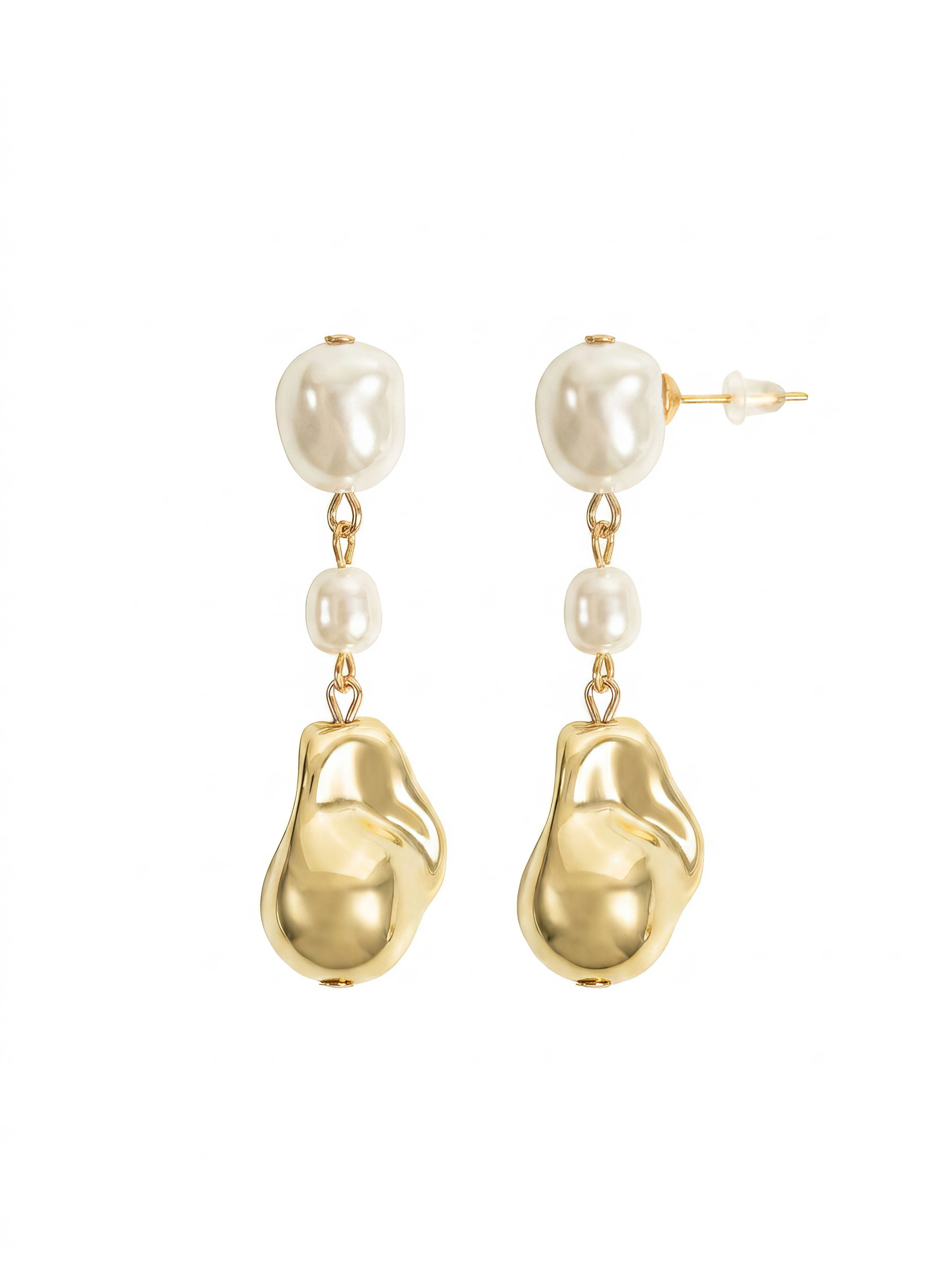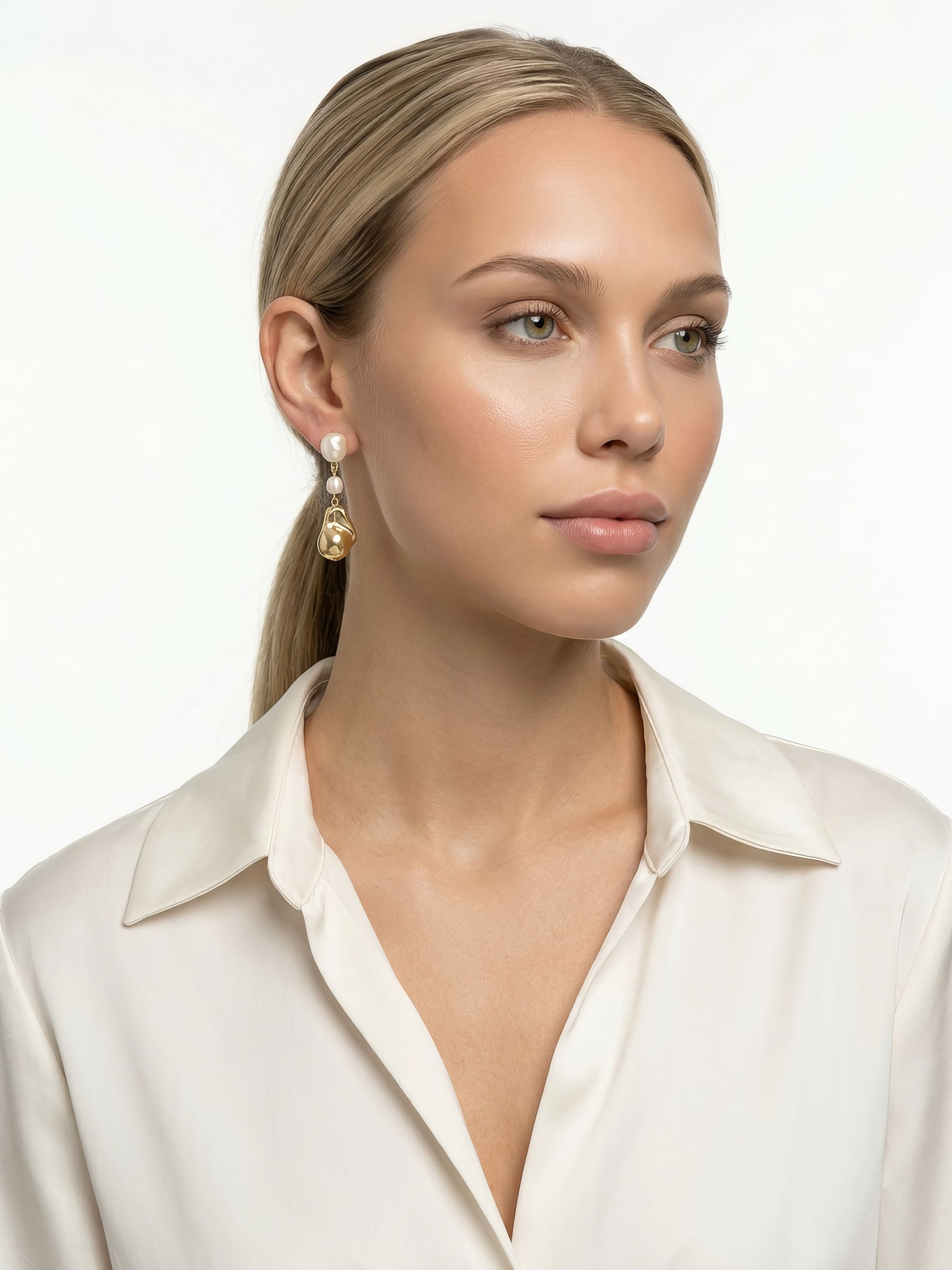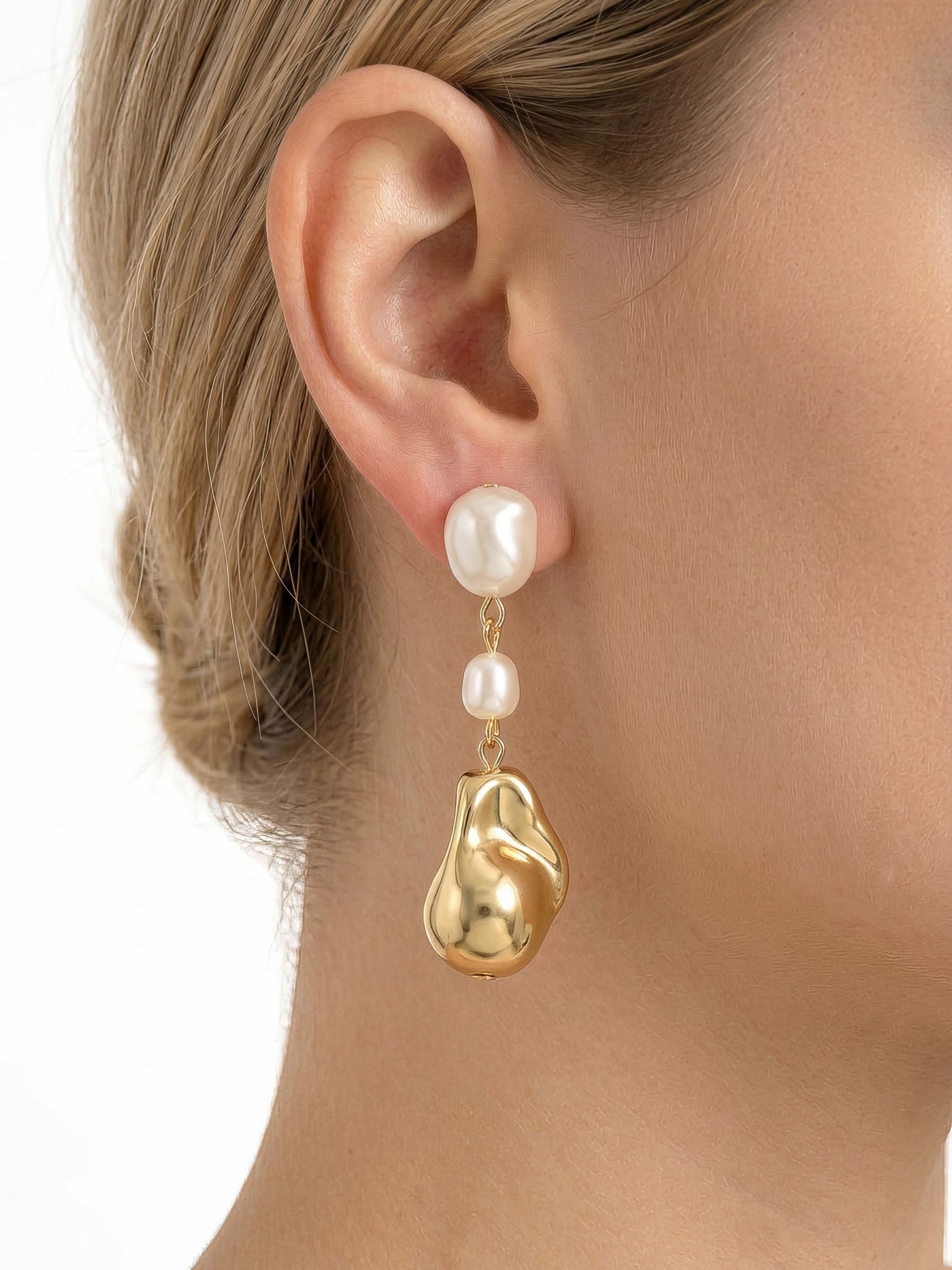 Элегантные серьги с перламутровым подвесом и золотистым элементом