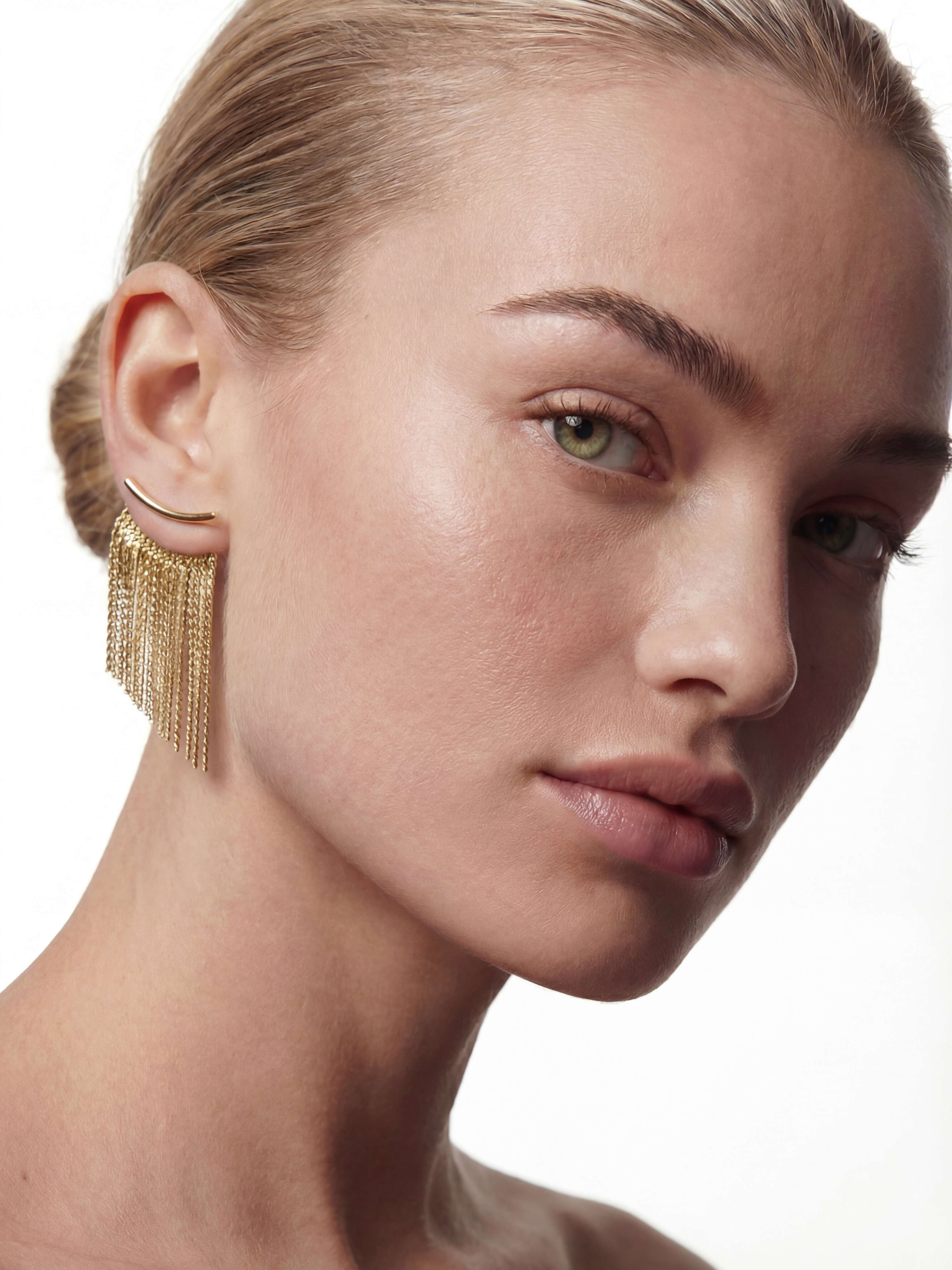 Висячие серьги с бахромой из цепочек в золотистом оттенке