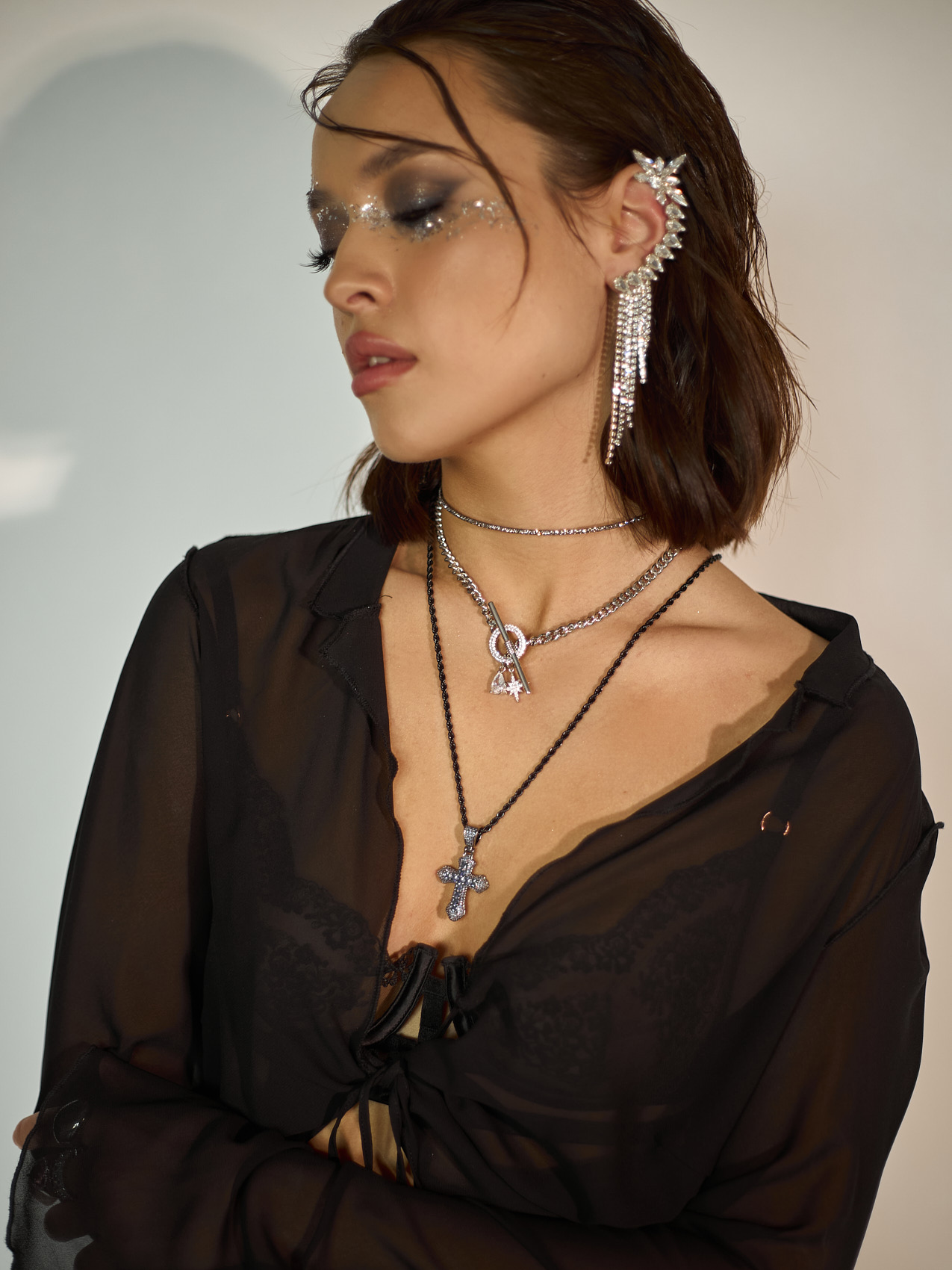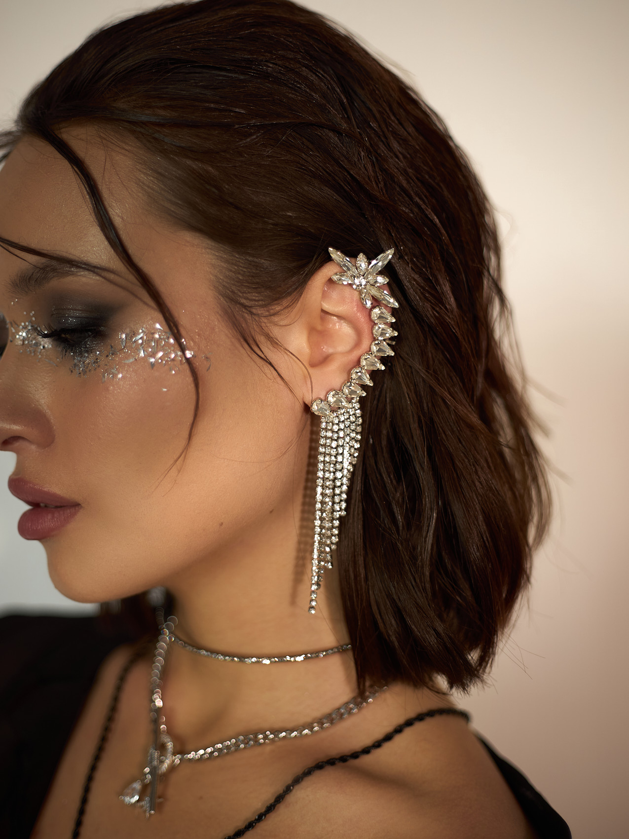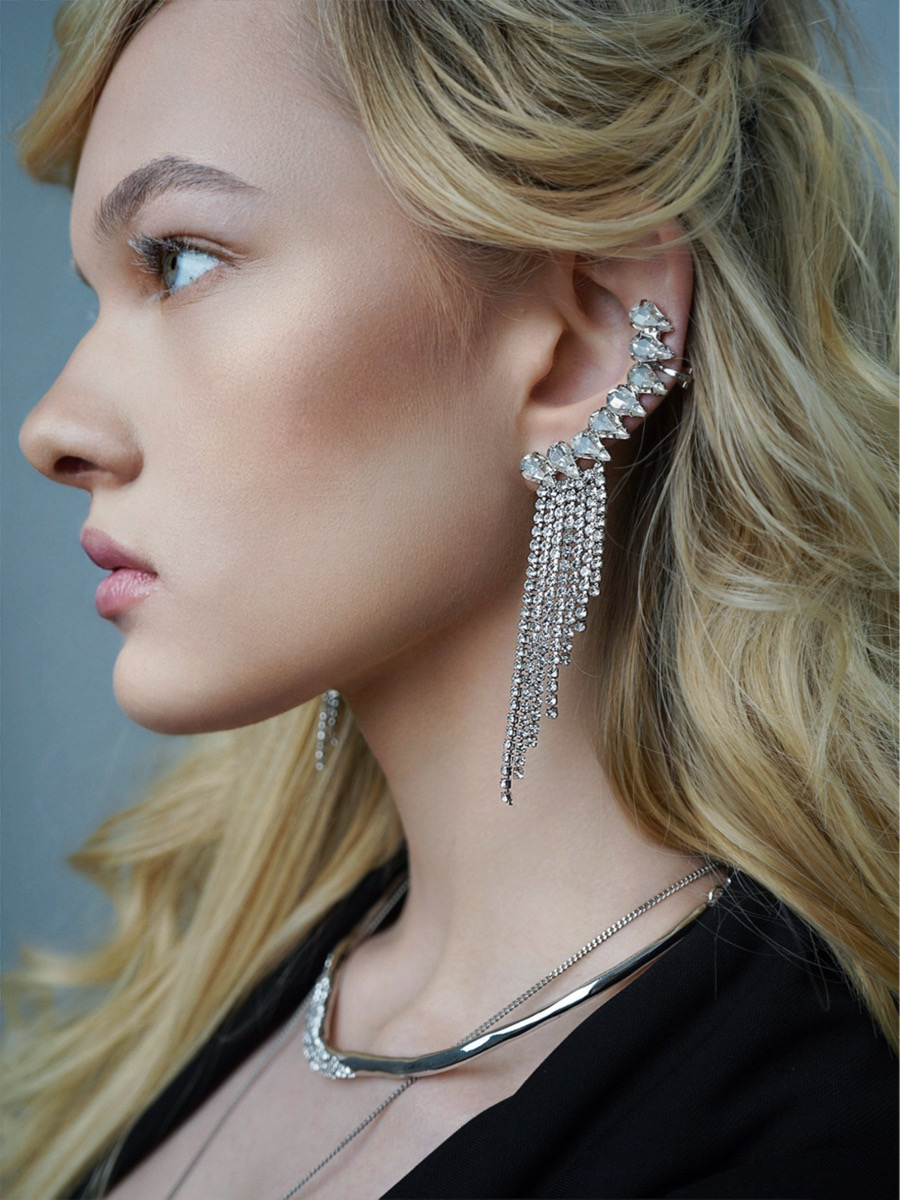 Клаймберы с каскадом кристаллов Серебристый Ювелирный сплав, кристаллы купить в интернет магазине Kalinka