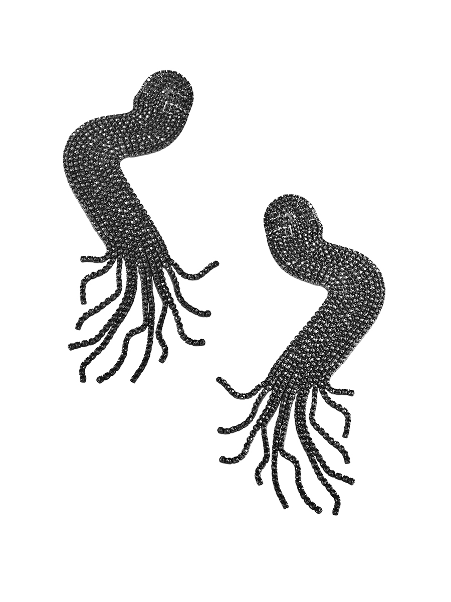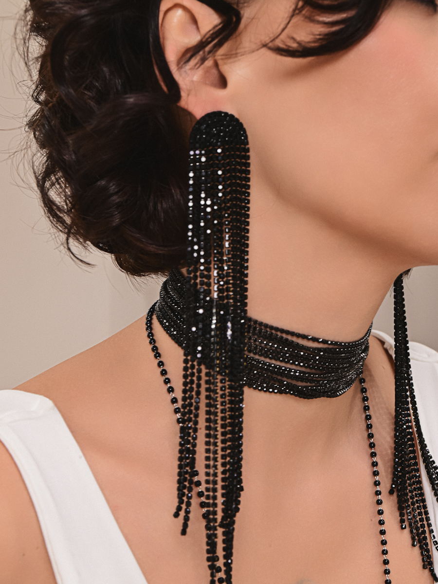 Мерцающие удлиненные серьги Черный Ювелирный сплав, кристаллы купить в интернет магазине Kalinka