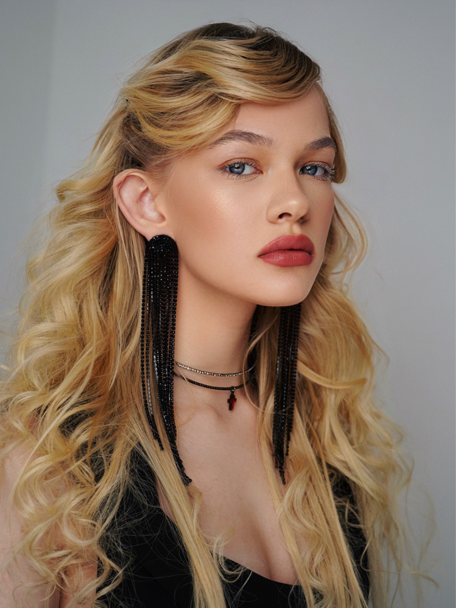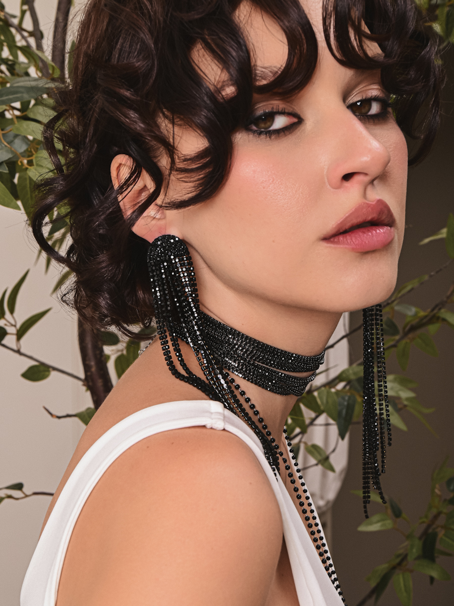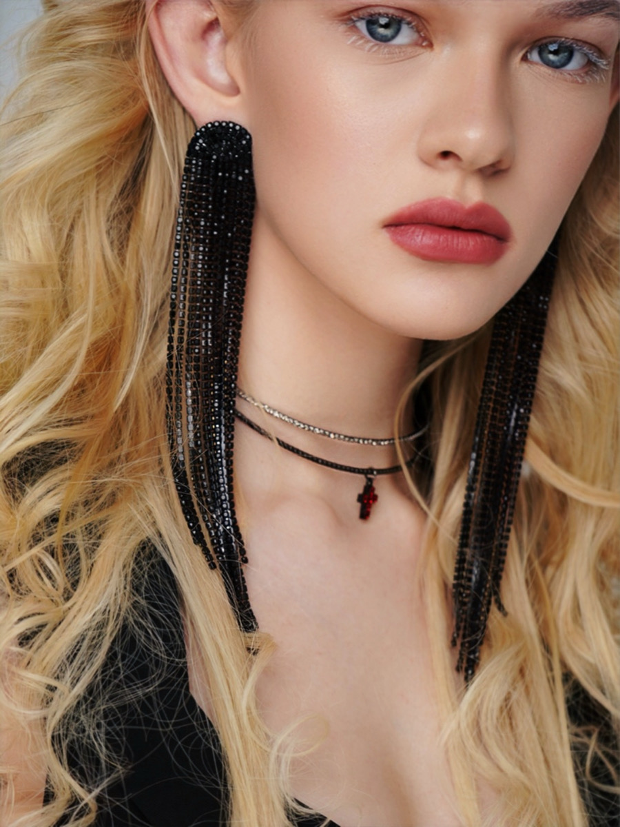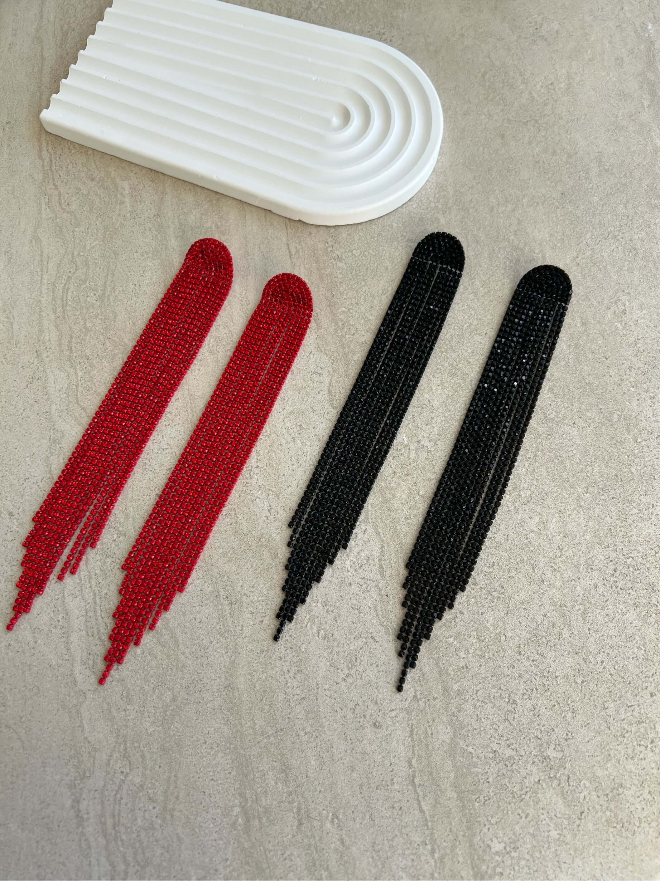 Контрастные удлиненные серьги со сверкающими кристаллами